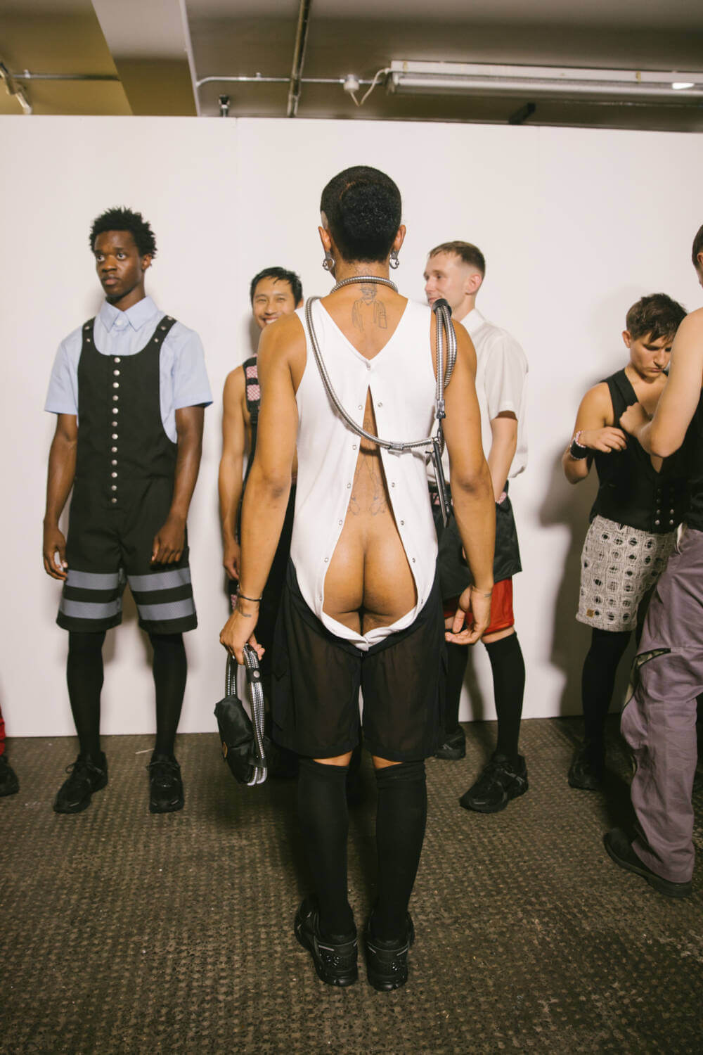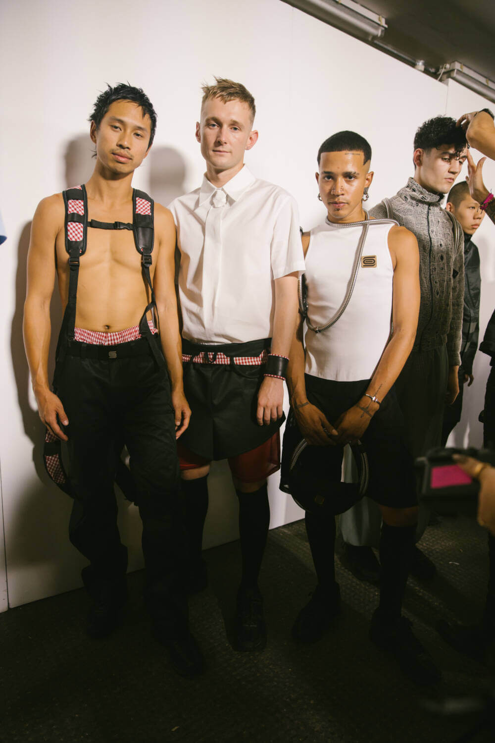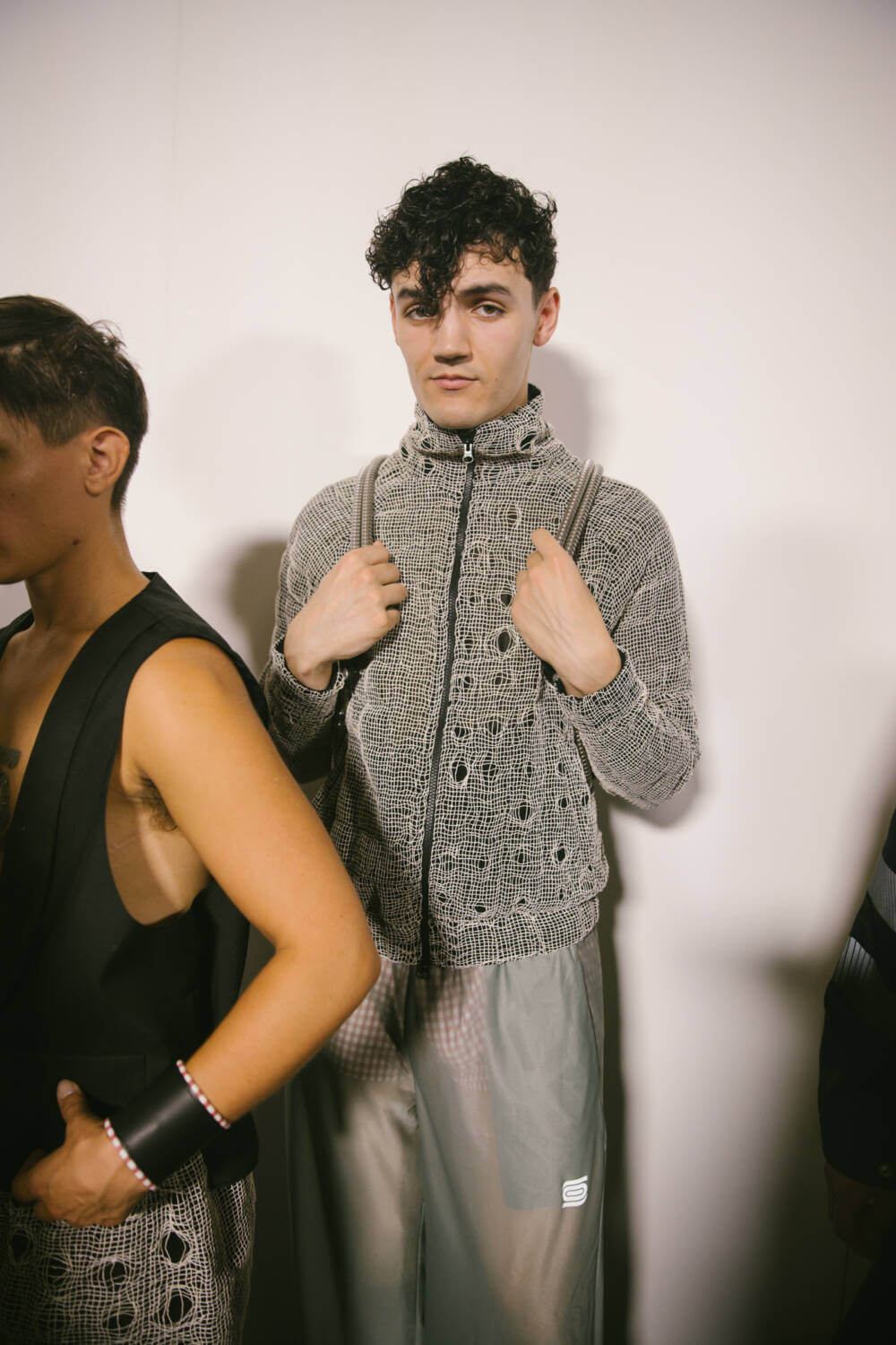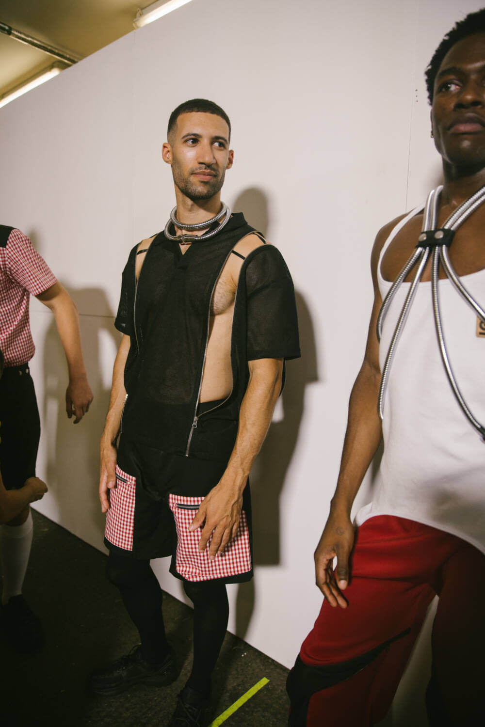 Fashion East? Maybe they should change the name to Fashion Feast. That’s how it felt watching the show, as one great look paraded after another. This London Fashion Week slot serves an abundance of talent so nourishing that British fashion would seem empty without it. The showcase caters to different tastes. Sexually charged streetwear for men? Olly Shinder has it. Already on the radar of the Dover Street Market crew, his cast of queer artists and handsome friends thrilled in highly detailed pieces, inlaid with body-revealing slits and windows which brought a new meaning to ‘watch this space’.
