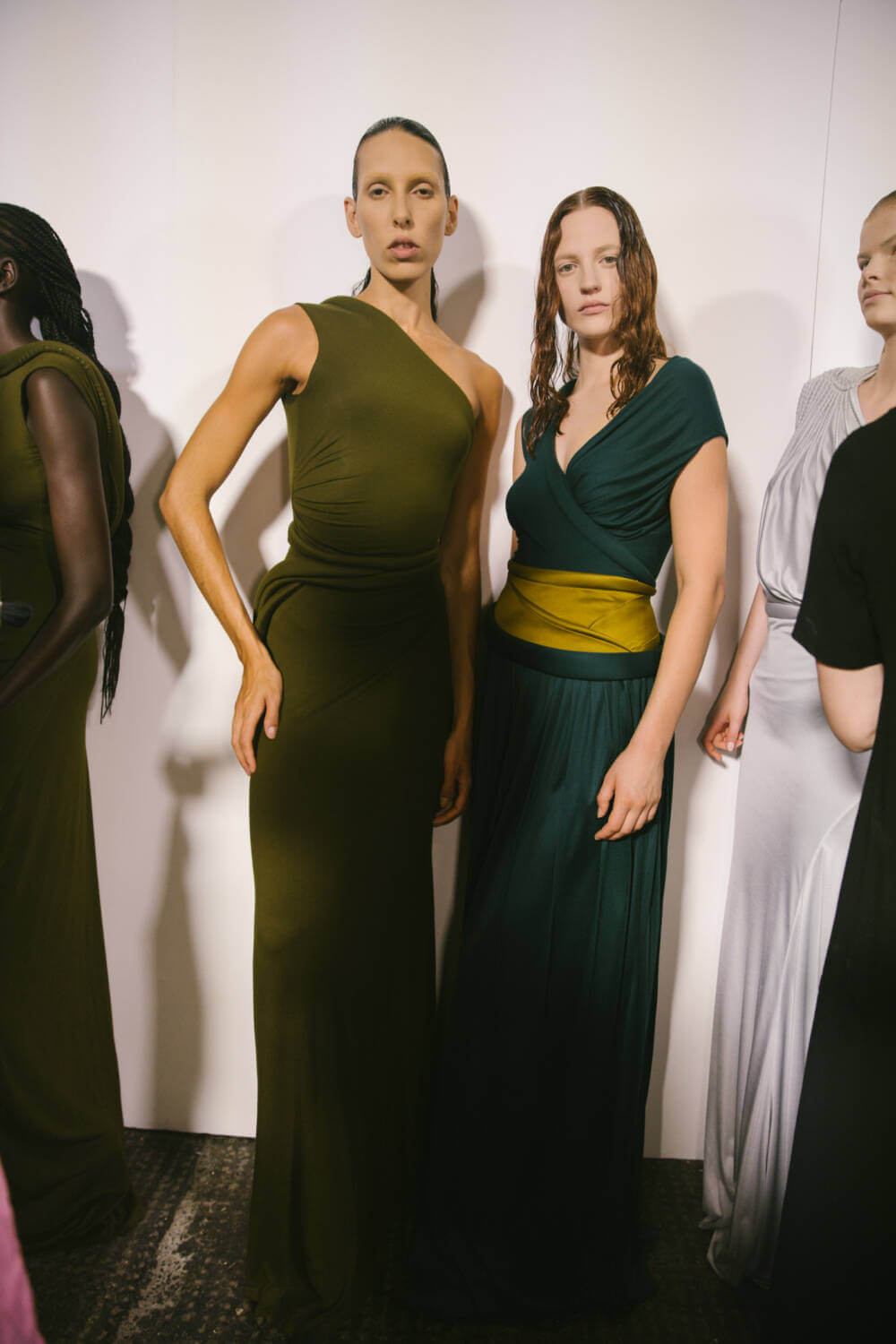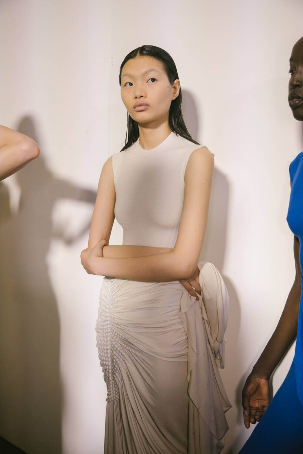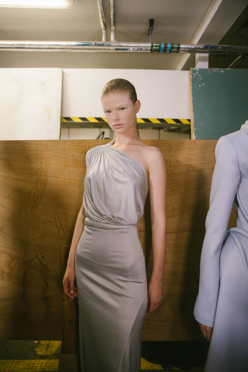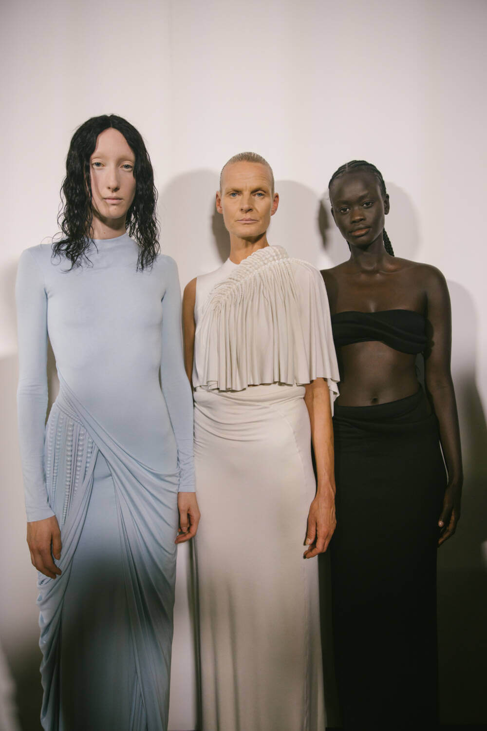 Their was a different kind of thrill at Standing Ground – it came from the masterful way designer Michael Stewart drapes and manipulates fabric. His lean jersey dresses ooze sophistication – of technique and taste. Stewart’s supple drapes fanned out in patterns inspired by fossils. He created rhythmic 3D patterns which traced the curves of the body with beads encased in jersey. The level of craft was impressive. The energy never dropped. Each dress looked like a collector’s item.