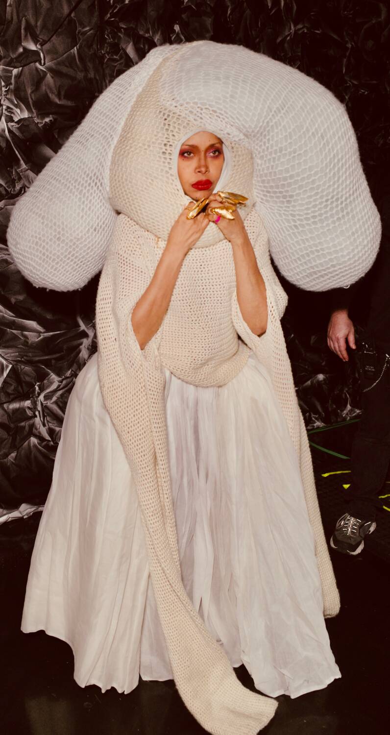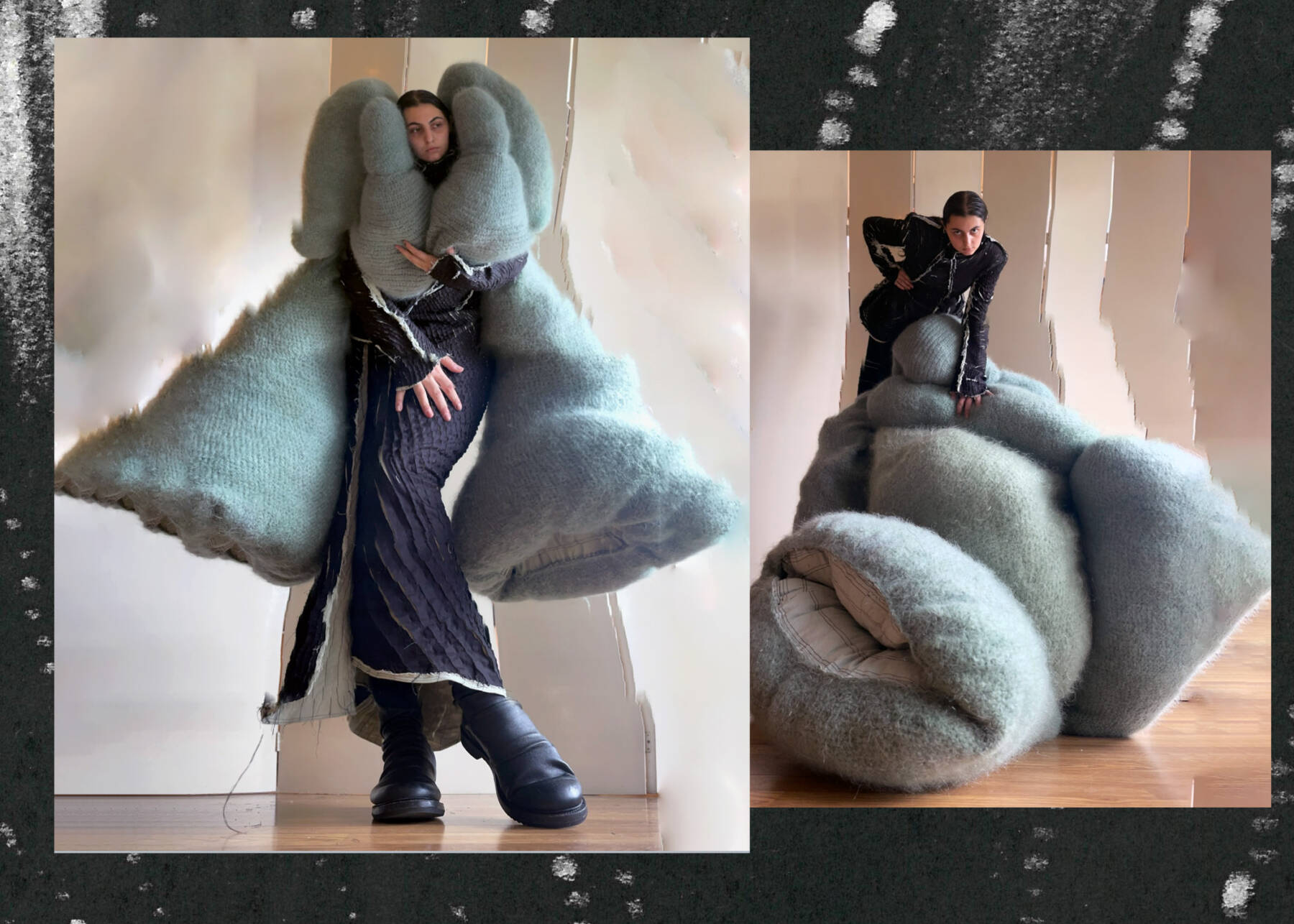 Growing up in a conservative state, Hasbany felt isolated from a young age, but this didn’t stop them from pursuing their practice. “Every time I’d make something people would ask ‘Why are you doing that?’ or ‘Why are you making that?’”, they explain. A tough environment to stay true to oneself, Hasbany nevertheless established their design language enough to earn a coveted spot at Central Saint Martins. “When I moved to London, no one ever questioned anything I was doing. They were like, ‘Yeah, you’re making like a giant, crochet [garment], that’s great’,” they note. “That was really freeing to me because I didn’t have to second guess myself, or question, ‘is this right’? People just kind of accepted it off the bat.”