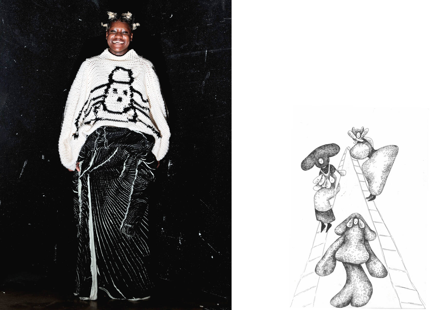 “I think people had really interesting reactions to it like, ‘That’s crazy’, or ‘That’s really weird’”, they continue. “But I think it’s important sometimes to just kind of remove yourself [and] be able to get away. That comes back to making things for myself, making things on my body and making things for myself really helps me work through that. There just wasn’t that many clothes that really made me feel good about myself. So I think both of those really helped me to see myself, and to work through some of those feelings.”