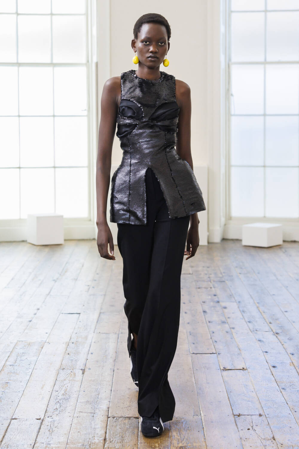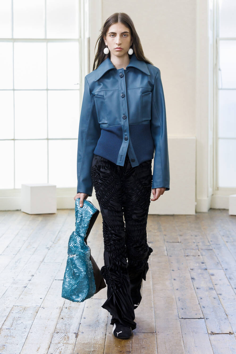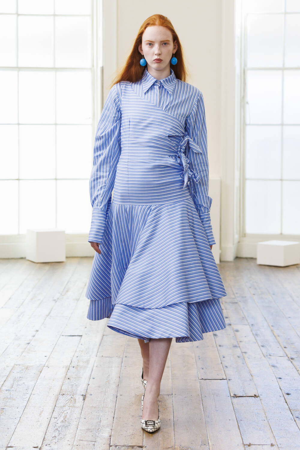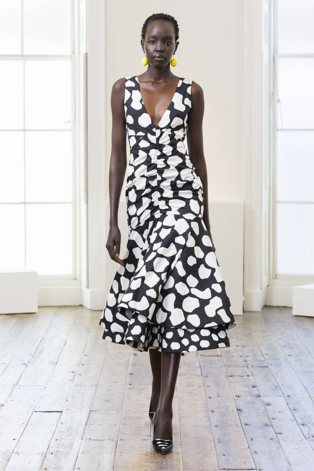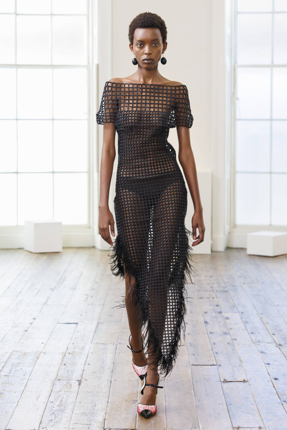 It’s hard not to get bummed out about a drizzly London summer. Thankfully Feben didn’t let July grey skies get the best of her. Instead of thinking about all the rain we’ve been burdened with recently, she decided to go about a play on words and call her collection Reign; built around the art of using “vulnerability to create strength”. Her muse for the season was Spanish flamenco dancer Antonia Singla, a master of the art form, who was also deaf her entire life. The designer proposed dresses with scooped necklines that flared out from the hips, while also using her signature ruching technique to create off-the-shoulder, body-hugging frocks that demand the attention of the dancefloor.