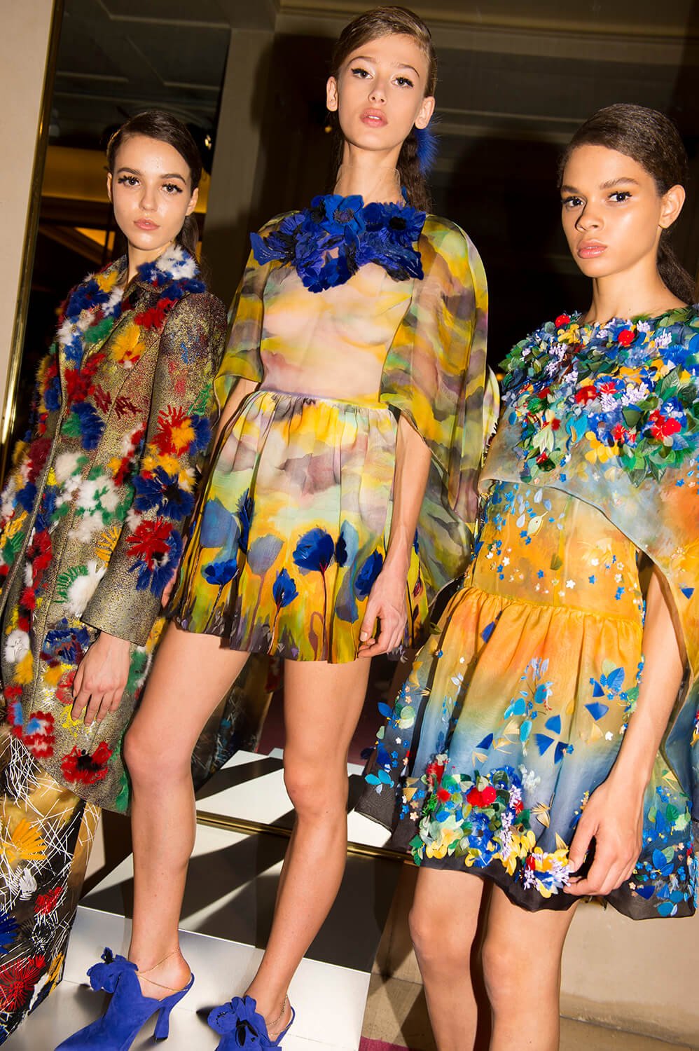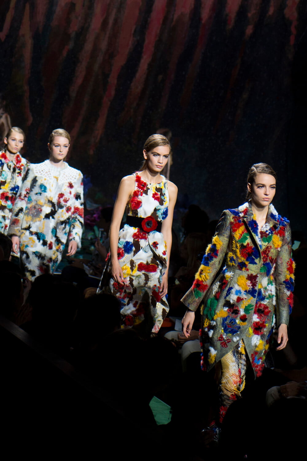 But being Monsieur Lagerfeld (who, and rightly so, took three bows, not just the usual one) there was incredible design that sat alongside innovation – flowers were the recurring motif, appearing across the clothing in a rainbow of colours, playing off the richness of fur with the lightness of sheer fabric. It all makes for the stuff of fantasy. Eye-watering prices (we’ve been sworn to secrecy, soz) for the most fabulous of buyers who took up the boxes of the Théâtre des Champs-Élysées this evening. As Garth put it “beats watching Arsenal and Chelsea of a Wednesday,” which I’m not entirely sure what he means, as I don’t think he’s ever watched a football match in his life, but I will translate as: it was fabulous.