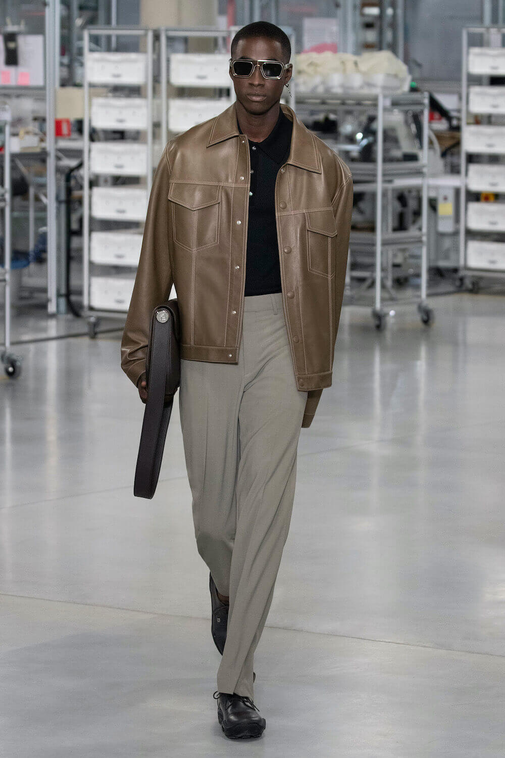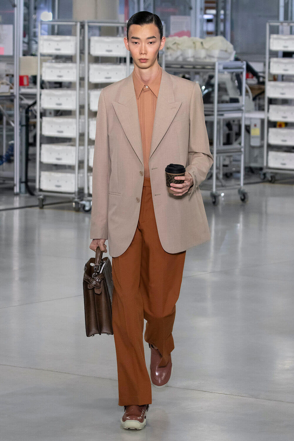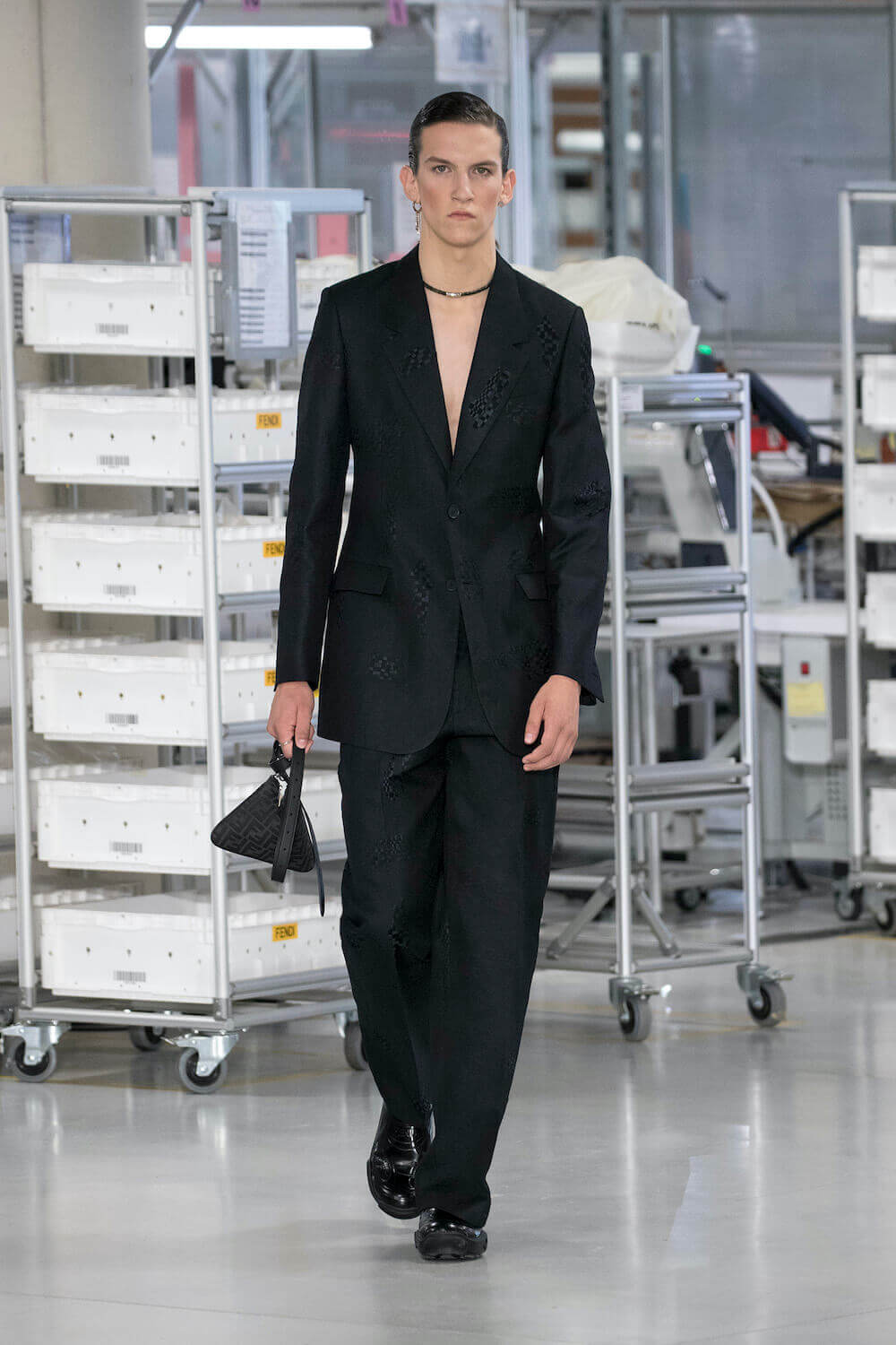 It was a not-so normal working day for Fendi’s artisans, whose factory-floor, buried in the Tuscan hills 30 minutes outside of Florence, became the catwalk for Silvia Venturini Fendi’s SS24 collection. Decamping from Milan for a special, one-off show as part of Pitti Uomo, the Italian house welcomed the fash pack inside its newly-opened accessories plant in Capannuccia, a place the designer dubs “the pulsing heart of Fendi, a place symbolic of creation, where development, innovation, craftsmanship training and production are reunited under the same roof.” Formally used to make bricks, the 14,000 sq m space – designed to blend into its surroundings with its terracotta exterior and a leafy roof-top garden – has been transformed into a luxe working hub where Fendi’s hi-end bags are all produced by hand.
