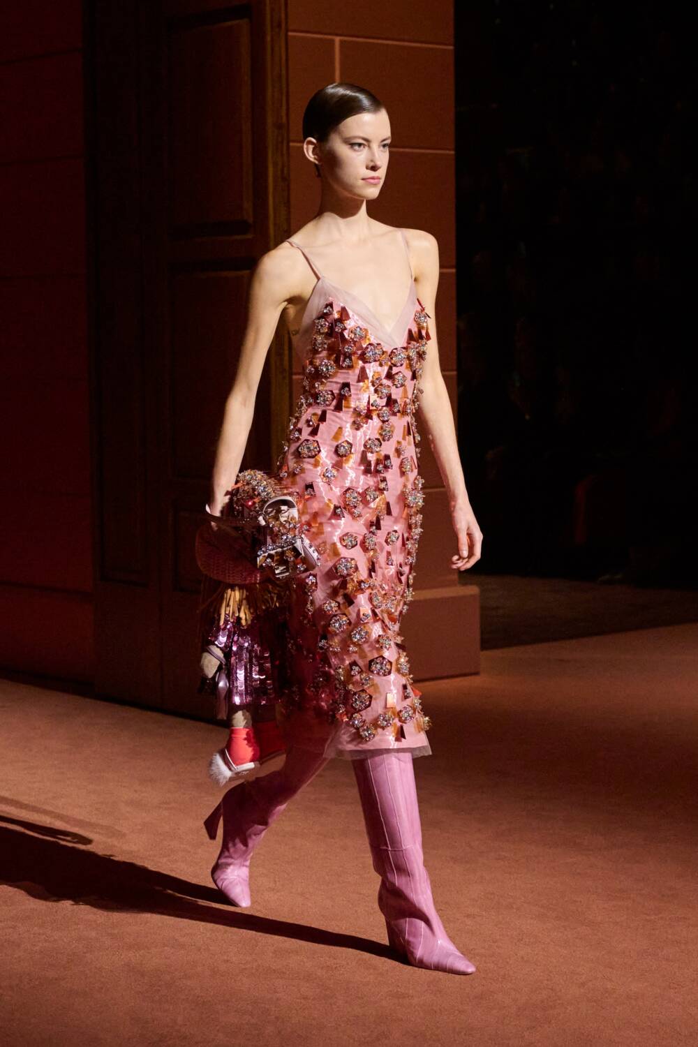 The show opened with Venturini Fendi’s two six year old grandsons wearing replicas of a look Karl Lagerfeld (who joined the house in 1966 and designed its fur and womenswear until his death in 2019) had created for the designer to wear at a Fendi show when she was also just six. It was a full circle moment. Here’s to the next 100 years.