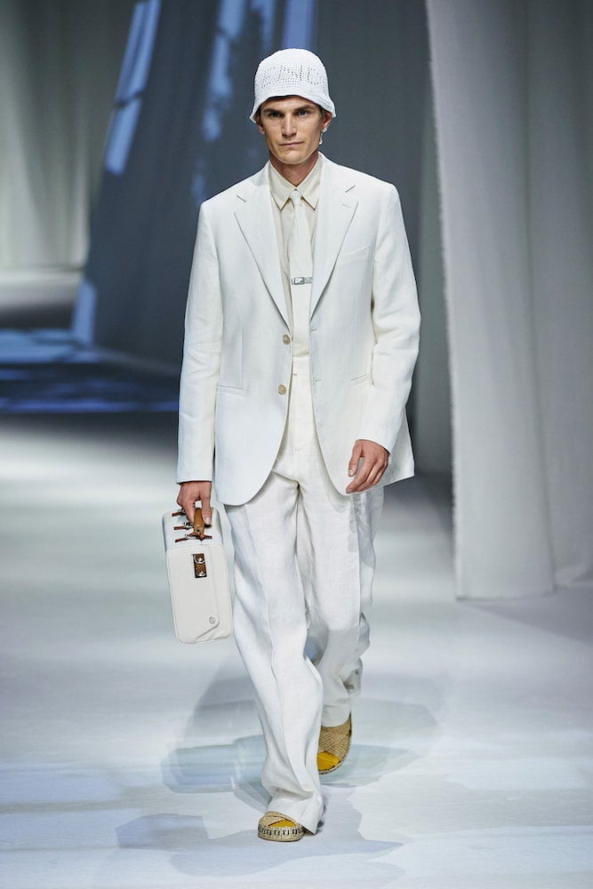 Perhaps the most surprising (and wantable) things in the collection were the market baskets made from recycled PVC. The socially distanced audience sat on curving banquettes as curtains of muslin gently wafted and projections of open windows suggested a domestic scene. This collection, full of forever pieces, was a tender love letter to Italian tradition and craft. It also marked the end of something. Venturini Fendi will continue with Fendi menswear – as she always has – but next season, Kim Jones (the most talented designer of his generation), will take charge of the womenswear. An exciting new era beckons for Fendi’s incredible artisans, and us.