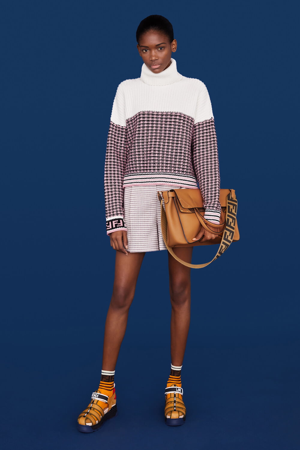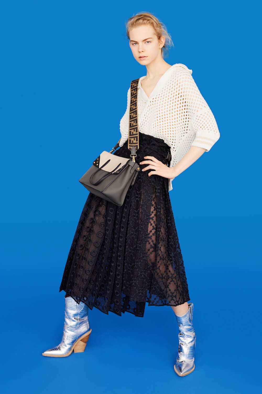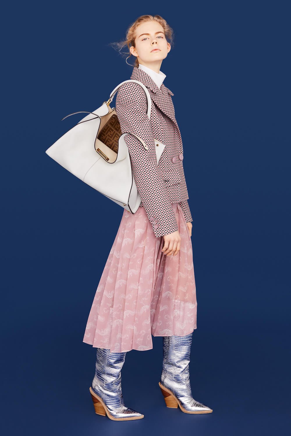 For big fashion houses like Fendi, Pre-Collections are the opportunity to take their big fashion ideas presented during fashion weeks and package them into a selection of more street-friendly, easy-to-wear pieces. And the Resort 2019 collection is no exception. An undeniably youthful Fendi DNA consisting of all-over FF prints (which in this case stands for both Fashion and Fendi), eye-catching knitwear and multicoloured furs is elevated yet again with a collection of accessories that make us drool- metallic silver cowboy boots, we’re looking at you. The bags are another instant hit – in addition to the classic Baguette and the whole Peekaboo family, for Resort 2019 Fendi is bringing you the Flip bag, a hybrid combining a clutch, a tote, and a messenger into a piece of luggage that is, much like this Fendi collection, both practical and fashionable. Obviously – our favourite version is the classic brown FF logo one. And when it comes to choosing favourites in the clothing department, everyone here at Ten Towers has got their eyes on something else. While Joel is on board with the blood orange & turquoise all-over logo twinset, Garth is loving the breeziness of the silky white bias-cut ruffle dress. Phoebe is already planning her post-pregnancy style with the studded black velvet gown in mind, and Richard has fallen in love with the double-stitched denim & chunky “nurse” sandal look. This is exactly what Fendi is about – there’s always something for everyone.
