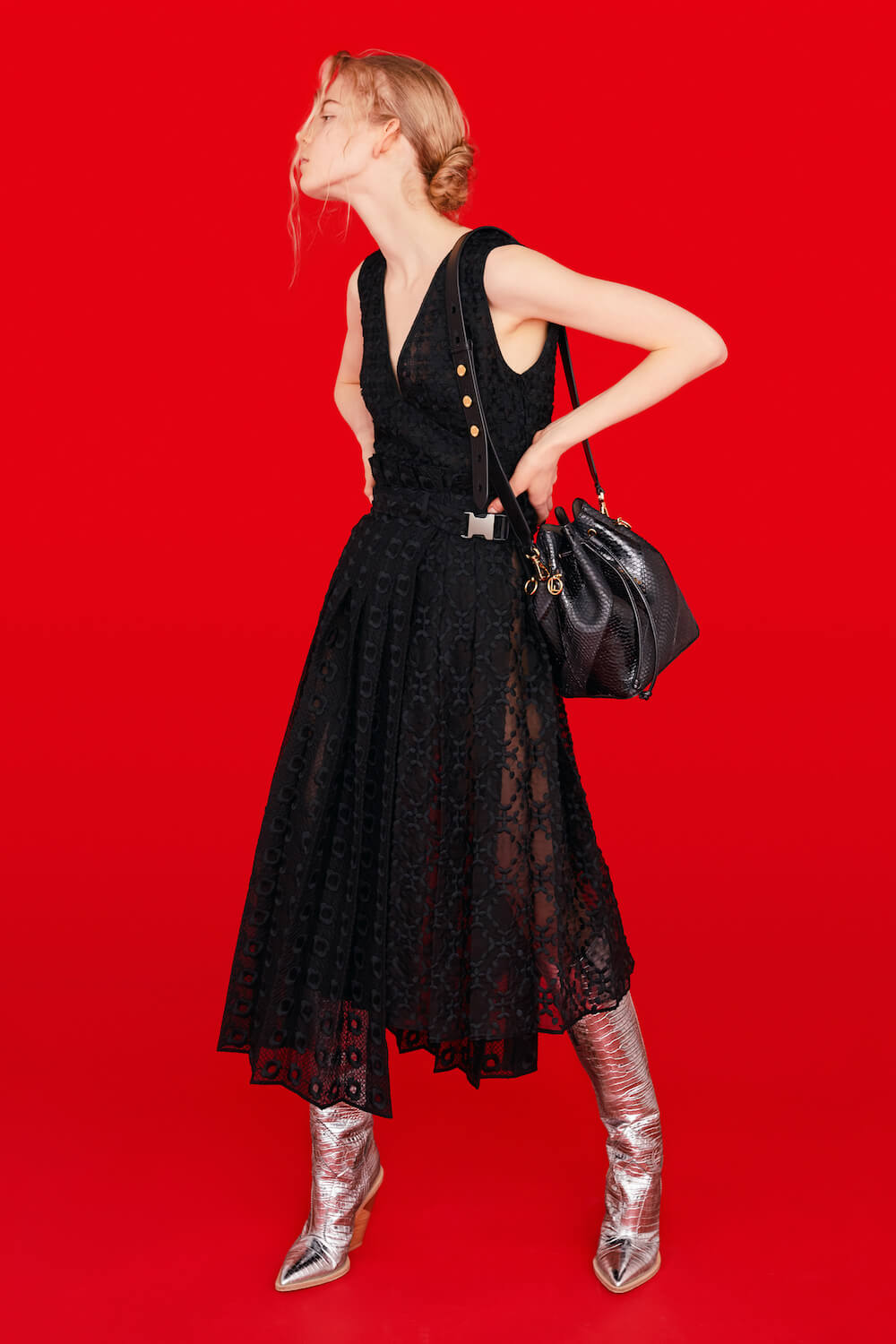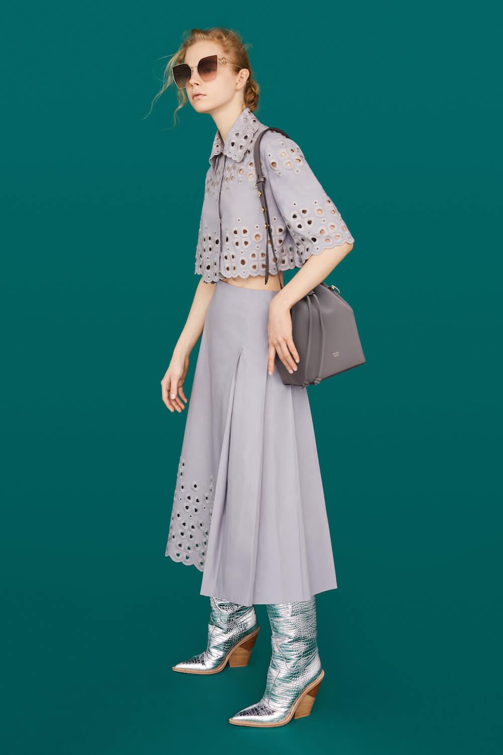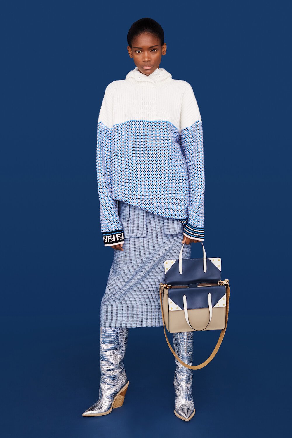 For big fashion houses like Fendi, Pre-Collections are the opportunity to take their big fashion ideas presented during fashion weeks and package them into a selection of more street-friendly, easy-to-wear pieces. And the Resort 2019 collection is no exception. An undeniably youthful Fendi DNA consisting of all-over FF prints (which in this case stands for both Fashion and Fendi), eye-catching knitwear and multicoloured furs is elevated yet again with a collection of accessories that make us drool- metallic silver cowboy boots, we’re looking at you. The bags are another instant hit – in addition to the classic Baguette and the whole Peekaboo family, for Resort 2019 Fendi is bringing you the Flip bag, a hybrid combining a clutch, a tote, and a messenger into a piece of luggage that is, much like this Fendi collection, both practical and fashionable. Obviously – our favourite version is the classic brown FF logo one. And when it comes to choosing favourites in the clothing department, everyone here at Ten Towers has got their eyes on something else. While Joel is on board with the blood orange & turquoise all-over logo twinset, Garth is loving the breeziness of the silky white bias-cut ruffle dress. Phoebe is already planning her post-pregnancy style with the studded black velvet gown in mind, and Richard has fallen in love with the double-stitched denim & chunky “nurse” sandal look. This is exactly what Fendi is about – there’s always something for everyone.