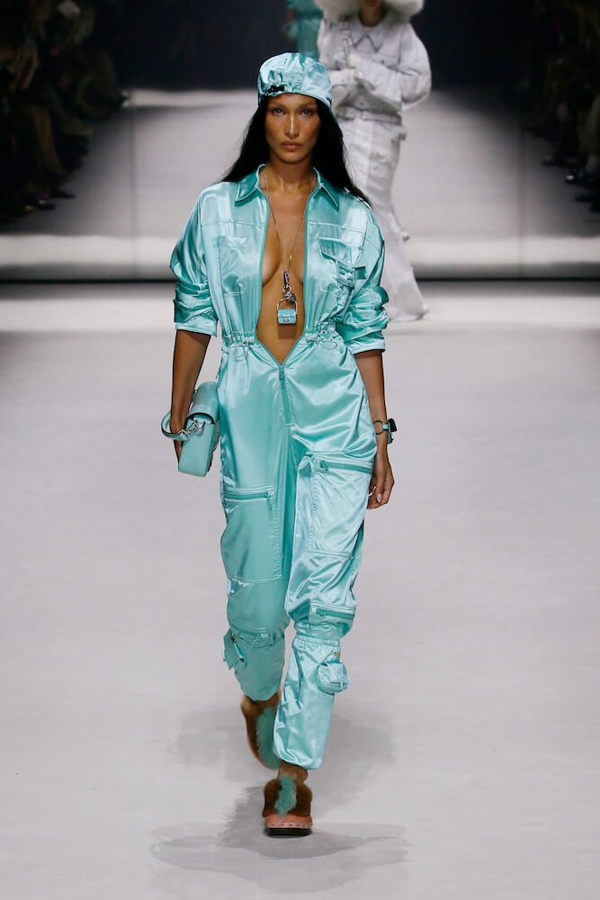 Jones has continually proven himself a maestro of stadium-sized collaboration, and this was no different. A capsule collection by Marc Jacobs followed Jones’ own outing, which within it included a co-sign from Tiffany & Co. The jewellery titan lent its robin egg blue to a series of Jones’ designs, alongside glittering special edition Baguettes with plenty of bling.