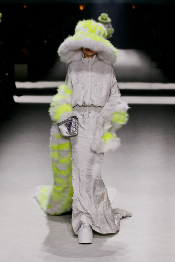 The whole thing was tail-ended with a phenomenal procession from Jacobs, who borrowed the XXL, streamlined silhouettes of his most recent collections to step foot into the Fendi universe – crafting giant furry hats and even reinterpreting his own logo to read ‘Fendi’.