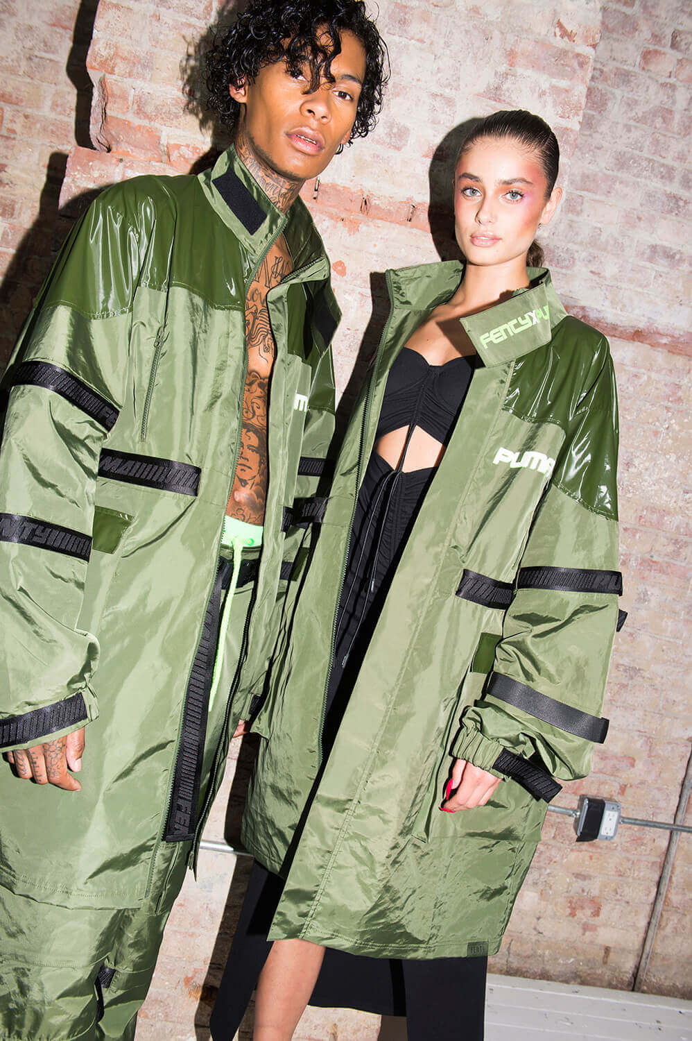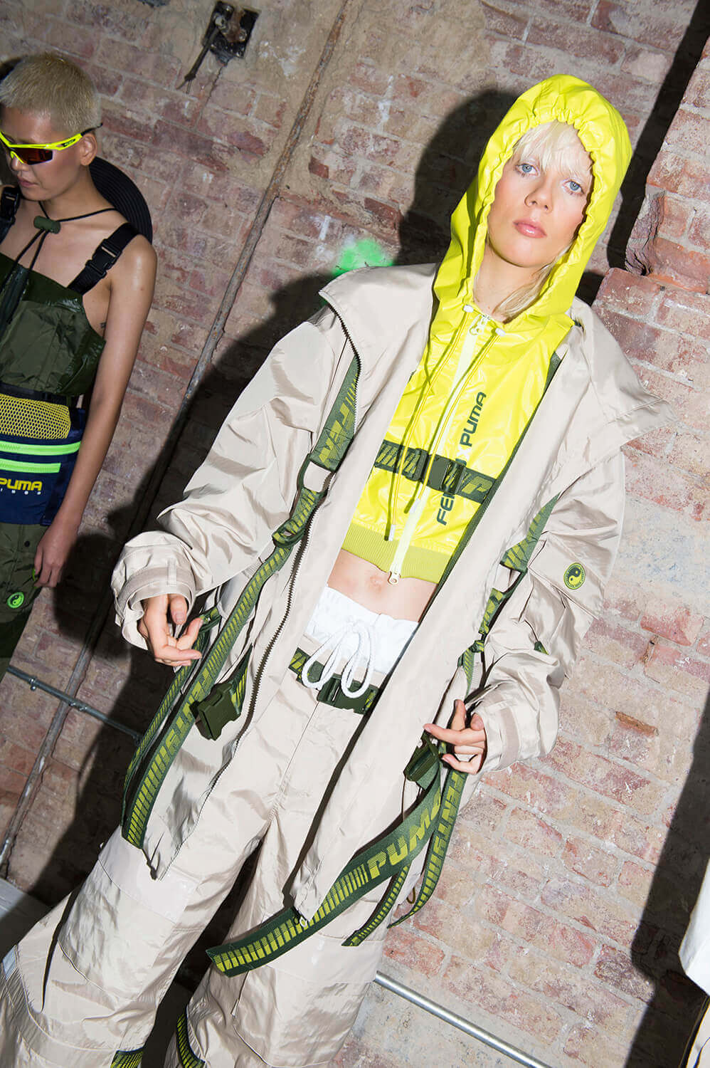 That said, there was activewear to fulfil many a woman’s need – racer-style body suits, jumpsuits cinched with climbing-style straps, combat trousers. Now, disclaimer: we should mention that we watched the show on a screen backstage because we were very late (not our fault). Which was a surprisingly enjoyable way to view a show, actually. Especially since it meant we got to get up close and personal with Rih herself when she came backstage post show. By which we mean we stood and took pictures of her. Close enough.