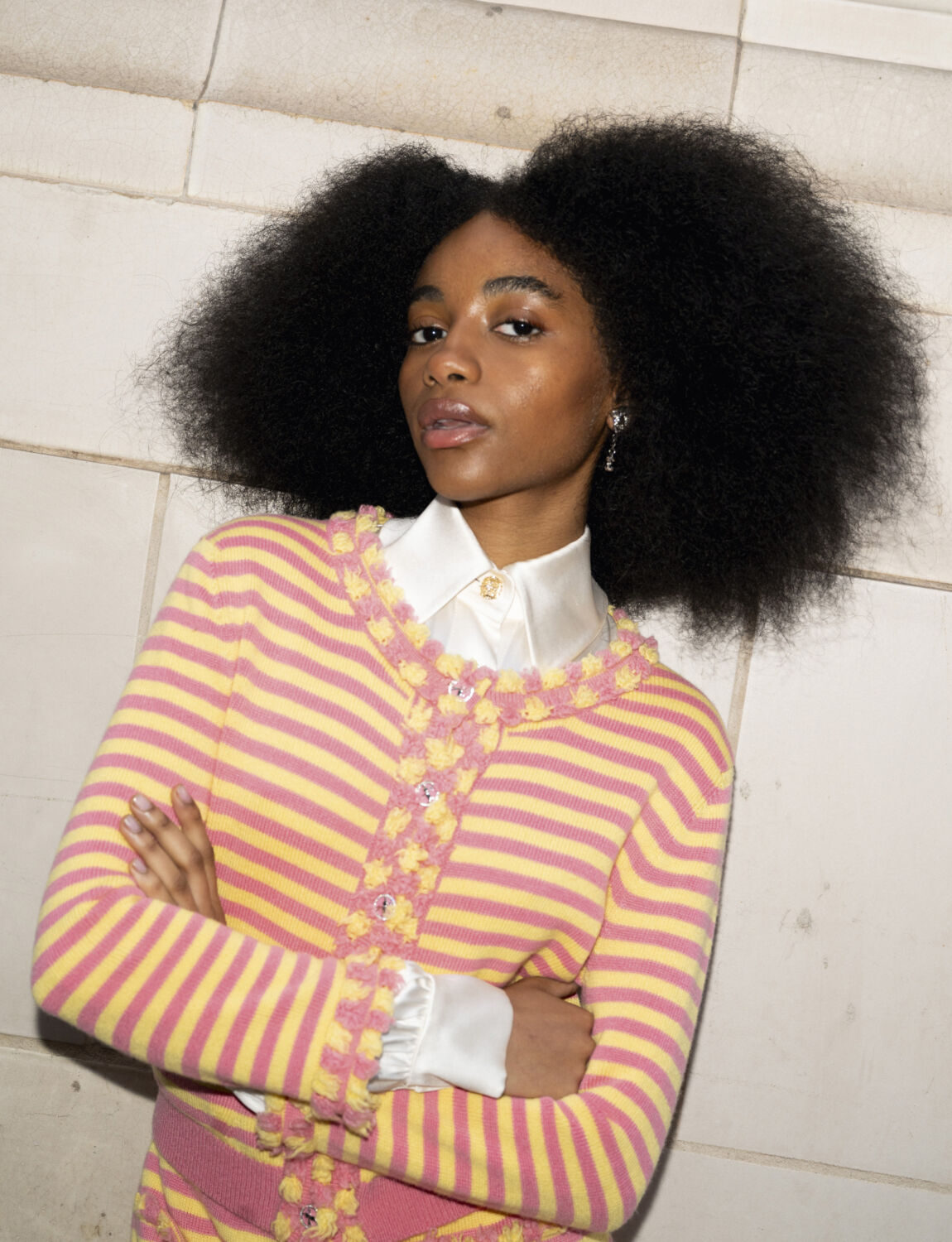 She tells me her dream collaborator is Harry Styles and. like him, Cissé is a fashion girly. “I’m obsessed with my own style,” she says, describing it as preppy, inspired by ’90s nostalgia like Clueless and Sister, Sister. If you don’t vet recognise Flowerovlove from her music, you might from her Gucci campaigns, or from the front row. Her favourite brands? Prada and Chanel, of course.