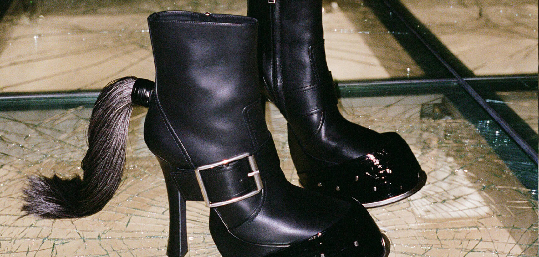 Plucked straight off the runway from McGirr’s highly anticipated debut at McQueen, the Hoof Boots were a stomping success at his autumn/winter 2024 show in Paris. Perfectly paired with a full faux fur coat or lace mini dress veiled in a sheer overlay, this new McQueen is naughtier than ever. A provocateur by nature, the McQueen maison almost requires its creatives to explore darker depths and thankfully, McGirr delivered. Meticulously crafted to mimic the form of hooves, the equine-inspired boots are complete with studded horseshoe detailed on its sole and thin heels. The boots are available in black or brown leather or furry calf hair, with another buckled option featuring a sleek horsehair ponytail at the back.