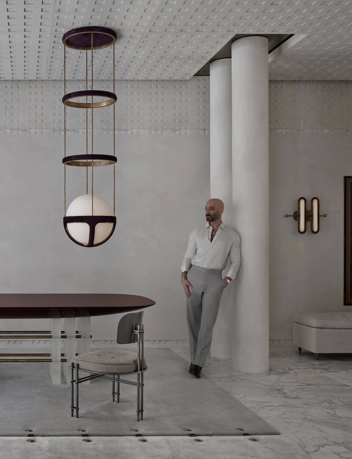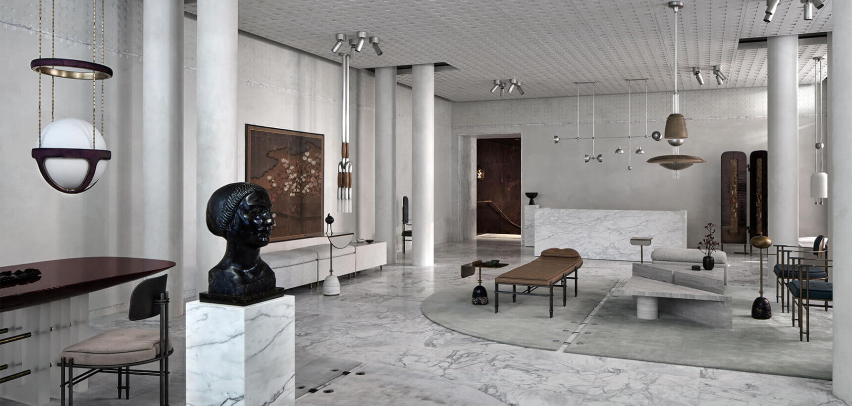 Renowned for its all-encompassing approach to seductive design and curated spaces that celebrate tiny, nuanced, emotive details – as well as Hendifar’s own talent for storytelling – Apparatus synthesises bold, pared-back lighting, furniture and object collections. Warm and eclectic, it uses a mixture of brass, marble, suede, horsehair, lacquer and porcelain to craft its erections which draw on the visual language of design’s past. Melding simple, polished forms with soulful, textural materials, heavy porcelain chain hangings or matte python-skin detailing, each piece is designed at its headquarters in New York City and brought to life at its dedicated Brooklyn factory (which is “specifically calibrated [for Apparatus] and will remain the heart of its operation”), and goes on to become part of a permanent, ever-expanding, catalogue of designs – a wholly imagined world. “Our strategy is always to make objects that celebrate craftsmanship and the human hand, and to tell compelling and seductive stories,” Hendifar explains.