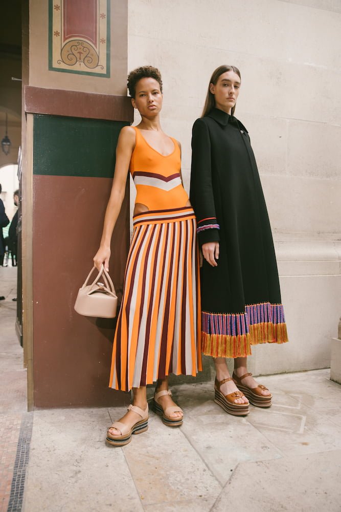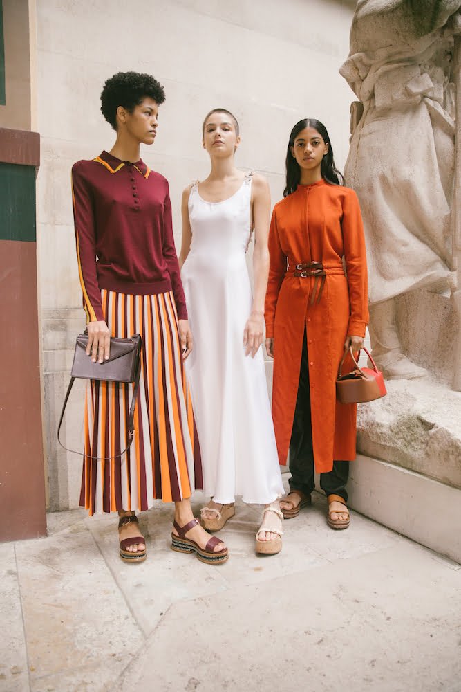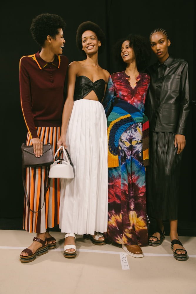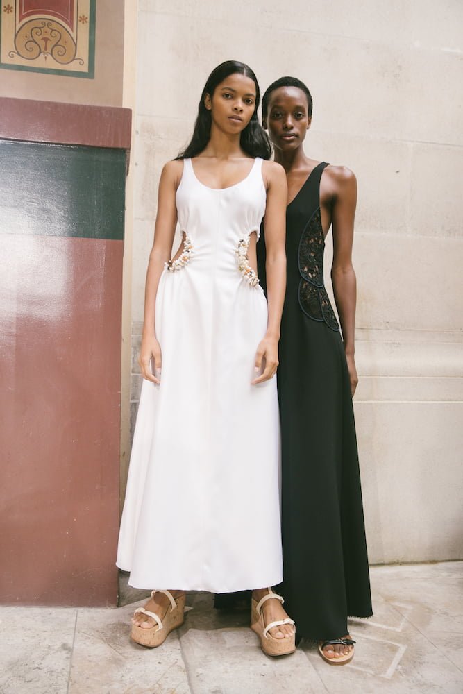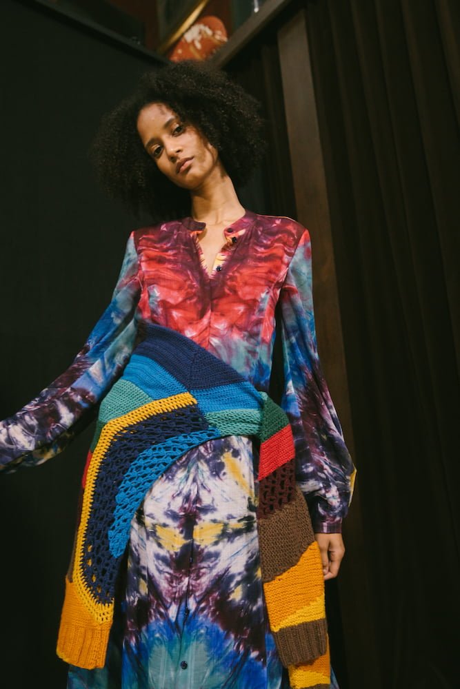 A celebration of handcraft, silk dresses with circular cut-outs at the waist came adorned with shells, inspired by a bracelet her mother gifted the designer from Rapa Nahui earlier this year. These walked alongside sublime crochet dresses in ivory and rainbow hues, as well as tye-dye tunics and easy-going linen outerwear. Each piece is stamped with a QR code on the label, which will take customers to Garment Journey. Here, they will be able to receive information about not only the materials used to create the garments, but the ways in which they were produced. Gabriella Hearst is not only a designer of great, wearable clothes, but a modern-day change maker. Care to join her?
