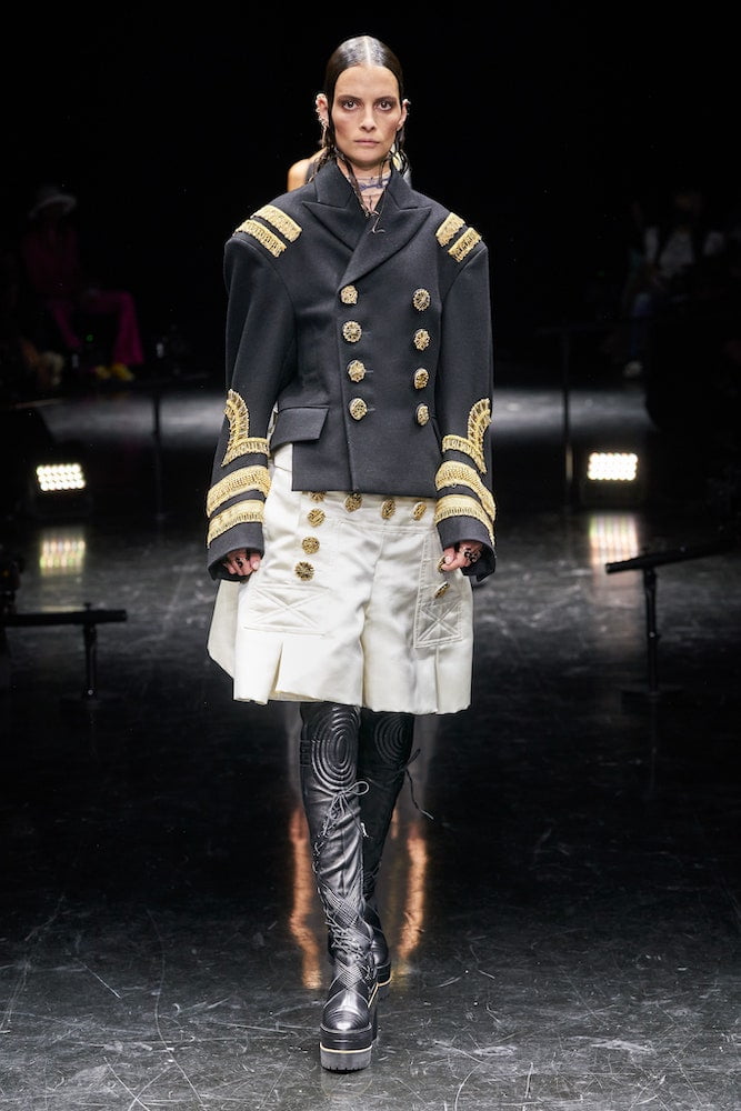 Gaultier’s spectacular farewell couture show, held just as the pandemic struck, was more of an au revoir than a final goodbye. He took a step back from the catwalk but created a new business model, giving guest designers the keys to his house. Chitose Abe of Sacai was the first. “I gave her complete freedom. I didn’t want to see any of the finished looks,” said Gaultier, who watched from the audience as Abe reinterpreted his icons in spectacular style.