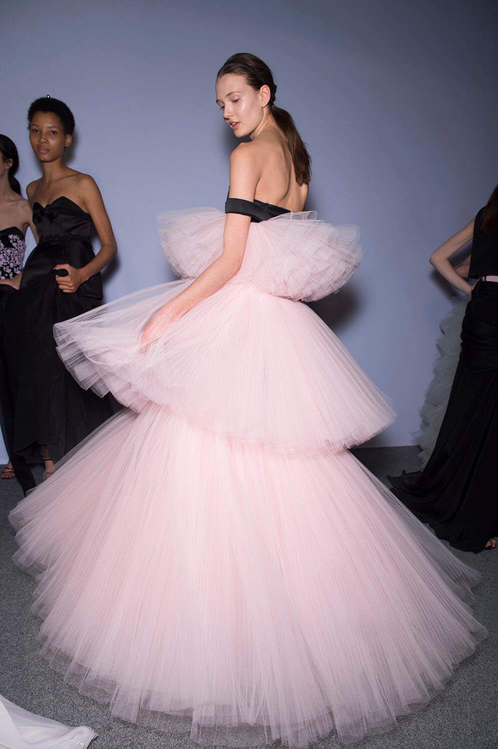 Fluff enough? We love fluff here at Ten Towers, and Giambattista Valli is a maestro of couture fluff. I wonder how that’s spelled? Fluffé? Like a soufflé, which is as light as a Giamba ball gown, even the gargantuan ones the size of most people’s lounge-diners are weightless, like fabulous coloured smoke rolling in across the catwalk. You get a bit hyperbolic around the couture. But this was a great Giamba show, full of his signature styles – expansive skirts, exquisite embroideries, beautiful laces, a sorbet palette with zings of neon yellow and red – but new enough to delight the couture acolytes who flock and clap every look. Fabu!