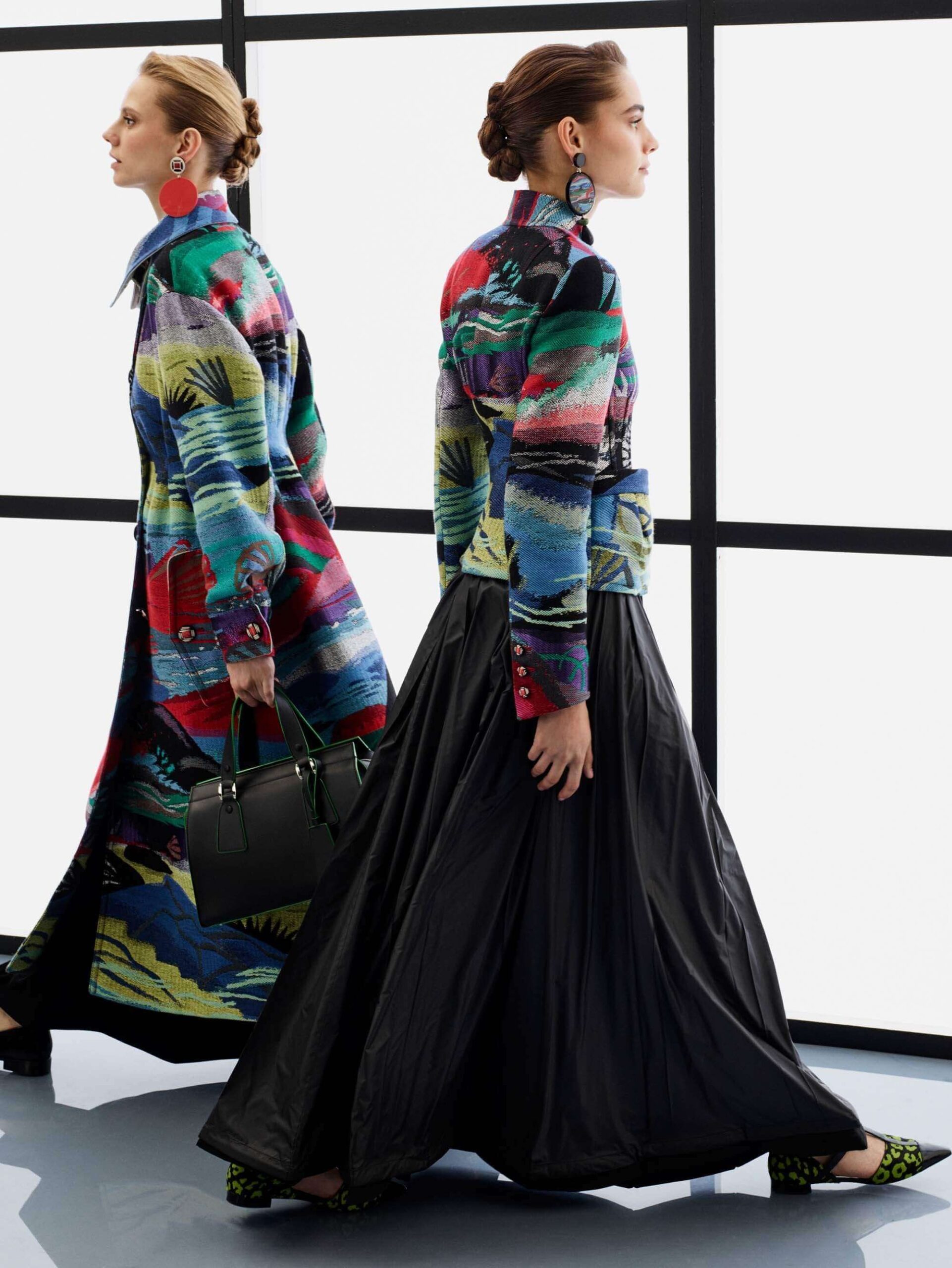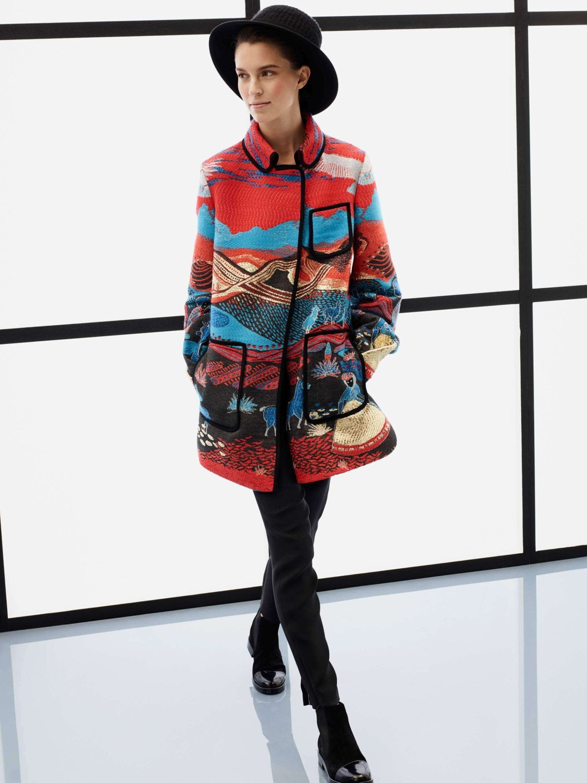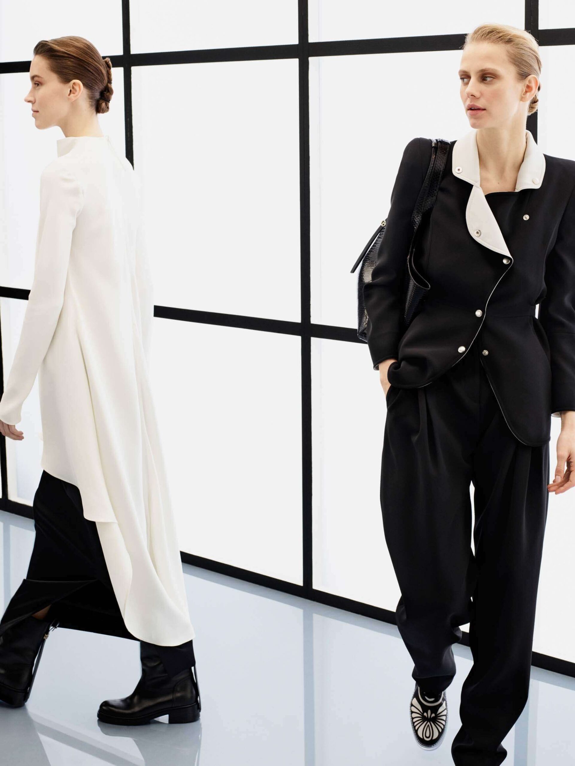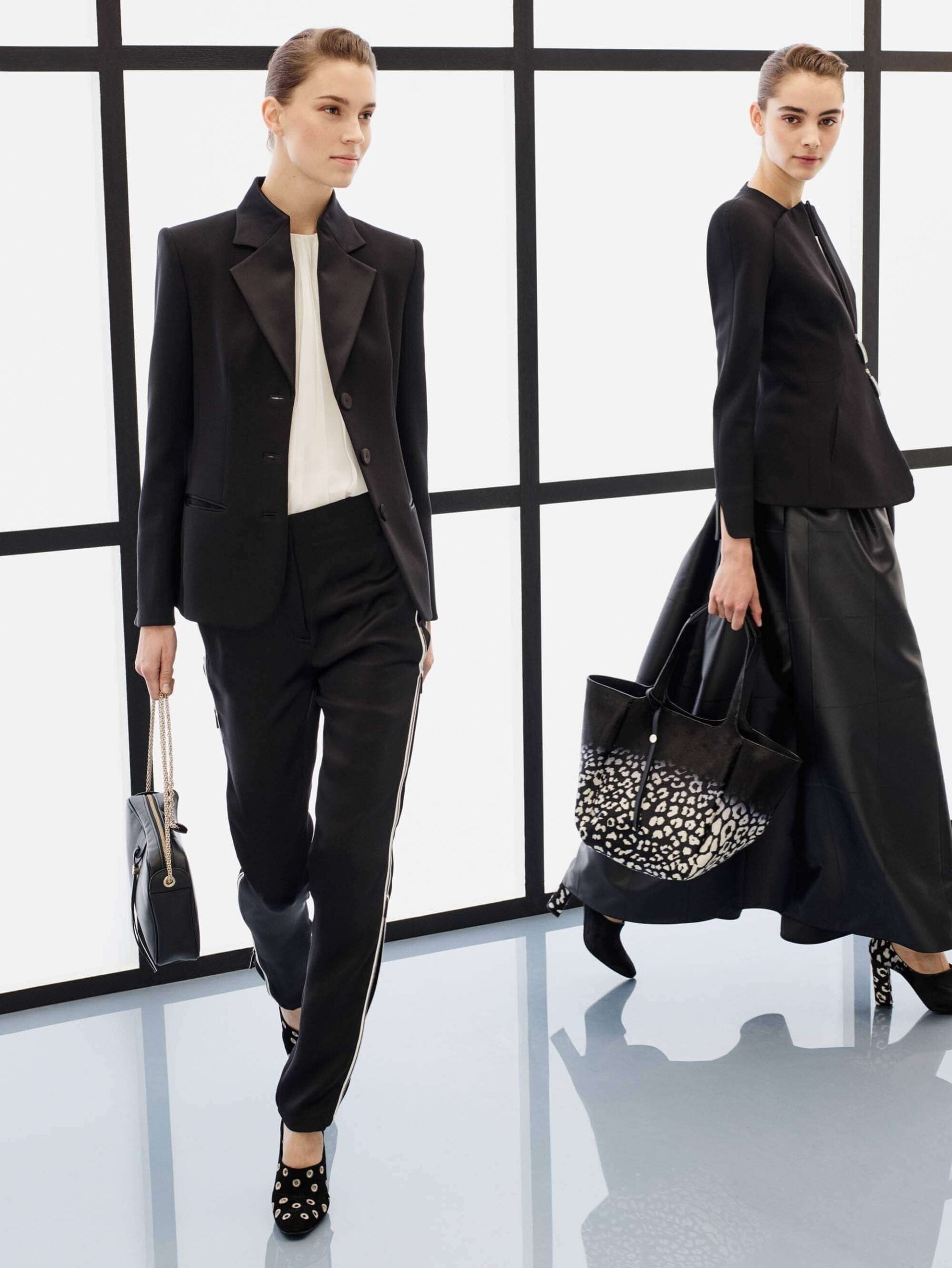 Mr Armani has spoken and he’s said colour. For Pre-Fall 2017 anyway. Because here there is but the merest hint of that signature Giorgio greige, the reigning monarch of Italian fashion instead stumping for bright hues of red, green and blue, or a combination of all three. Which is, quite handily, helping us to prize open our tired eyes this morning. Like a shot of adrenaline straight to the eyeball. The collection itself is saying to us elegant daytime attire. And with risk of souqnding a bit like Grazia, we’re going to further say that this is clothing not just for daytime, but for day-to-night dressing – think smart tailoring (so far, so Armani) meets more casual mohair jumpers and tracksuit bottoms in satin, whilst outerwear is long in length and double breasted. And very popular amongst wholesalers, Mr Armani apparently said. To finish there’s a smattering here too of more glitzy party dresses – not quite Oscars, but enough to ensure that you will, in London anyway, be the most glamourous woman in the room.