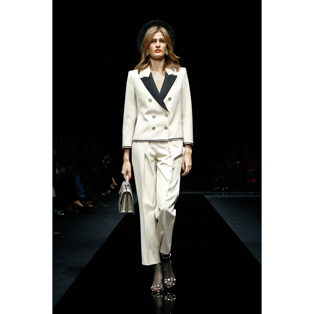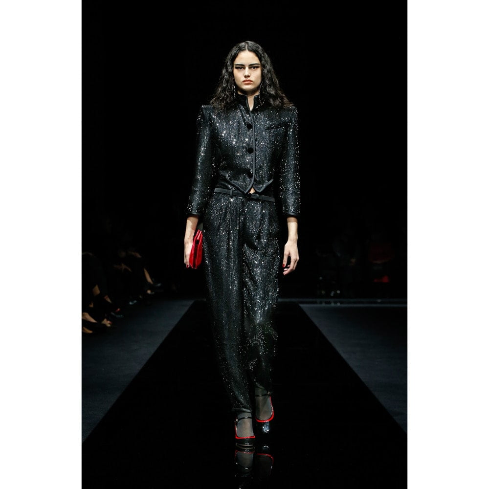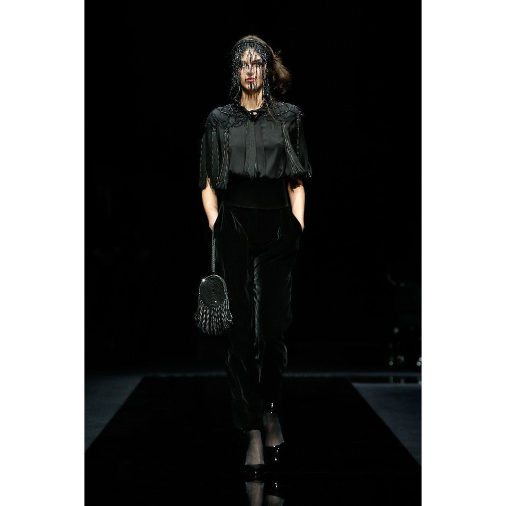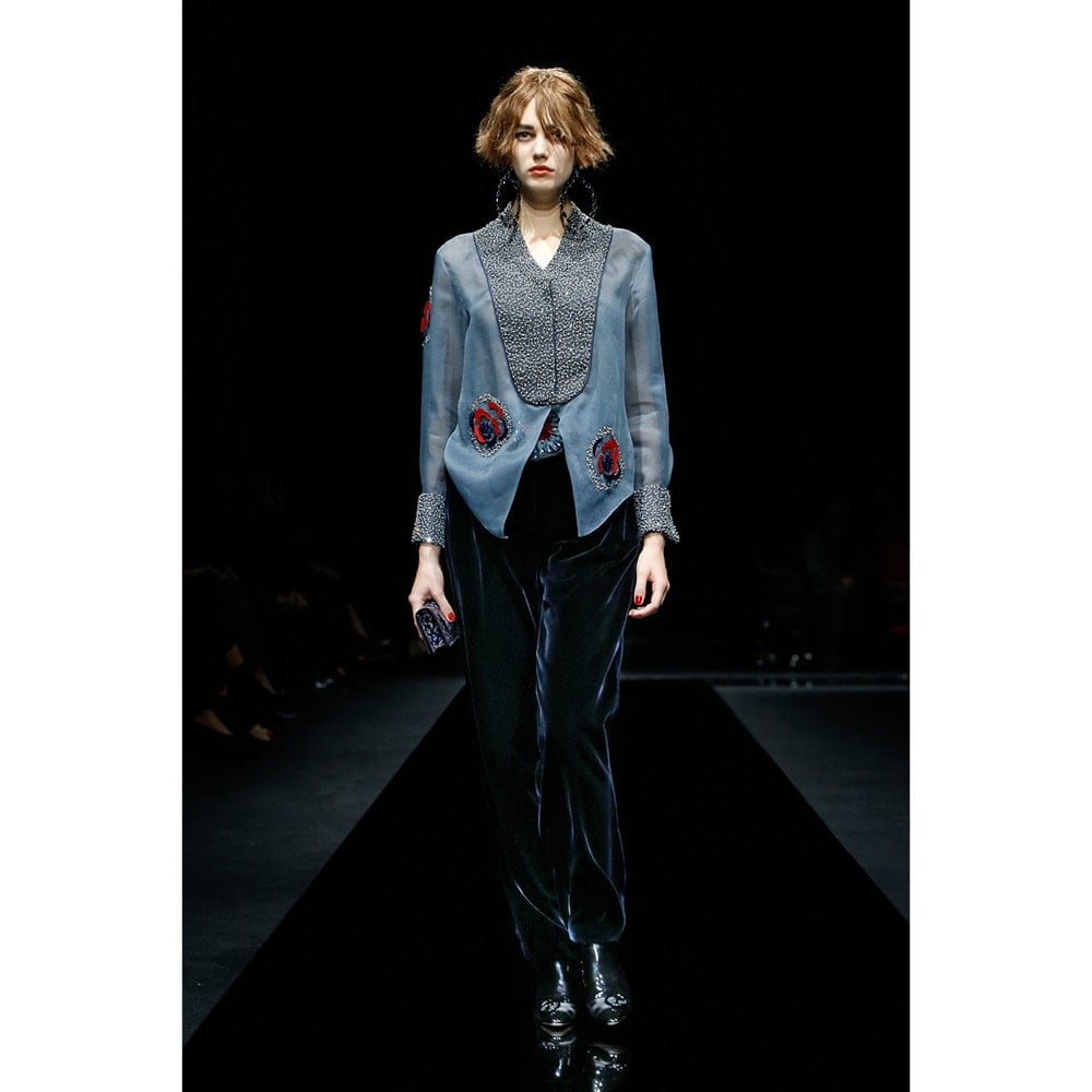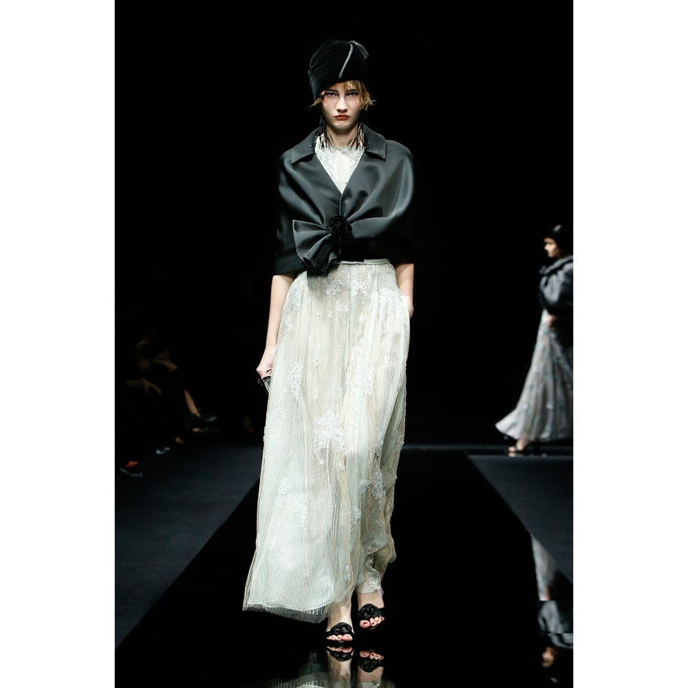 The accessories game was particularly strong on this occasion, with hats, jewellery and bags furthering a sense of fantasy. This was no mistake though – ahead of the show, Mister Armani opened Accents of Style, the latest in-house exhibition at Armani/ Silos gallery, dedicated to four decades of his accessory design. The first ever Giorgio Armani high jewellery collection was also revealed earlier in the day at the brand’s own hotel, completing a creative hat trick that can only be described as legendary.