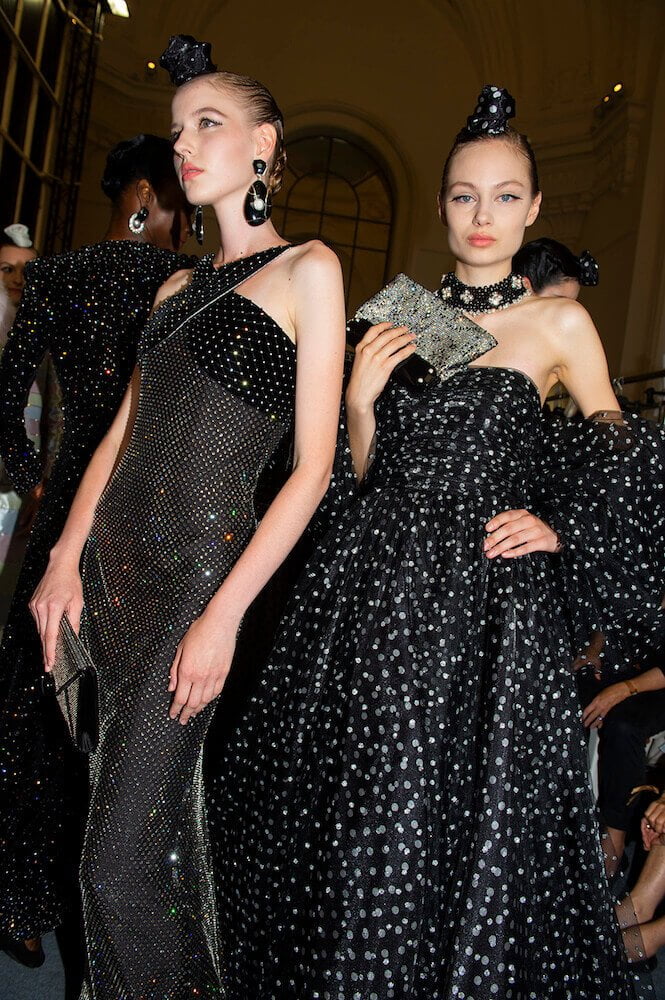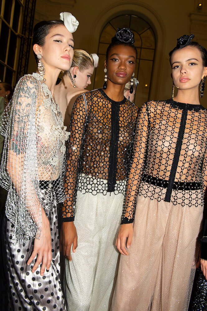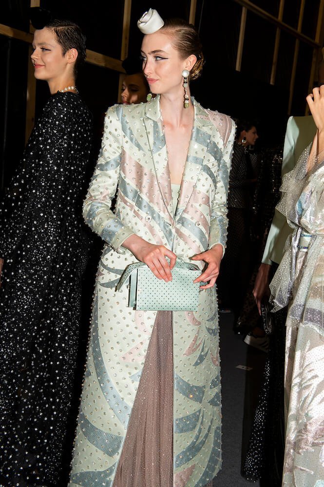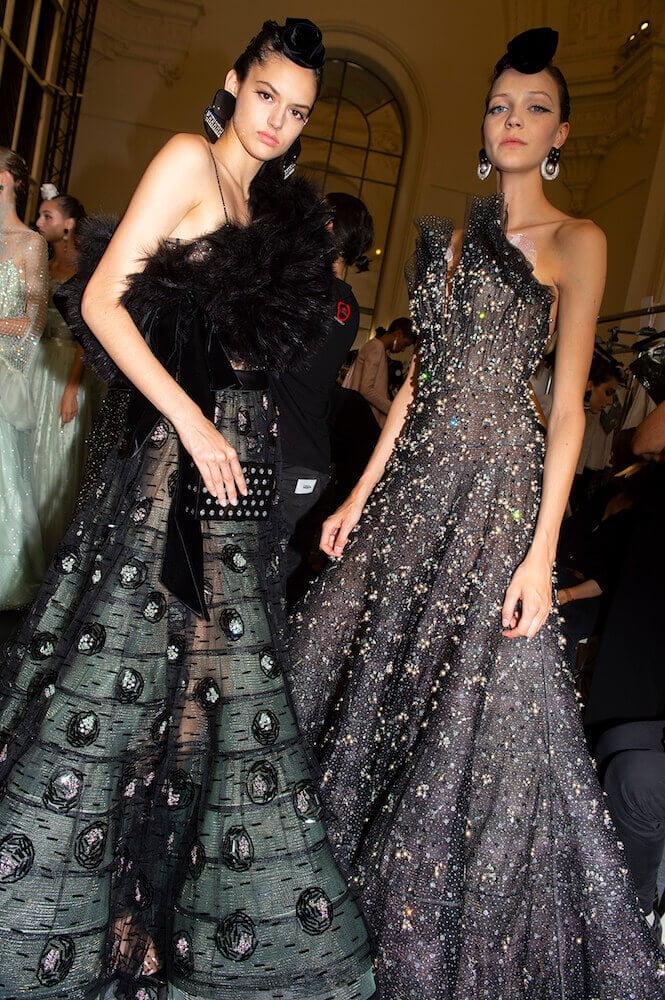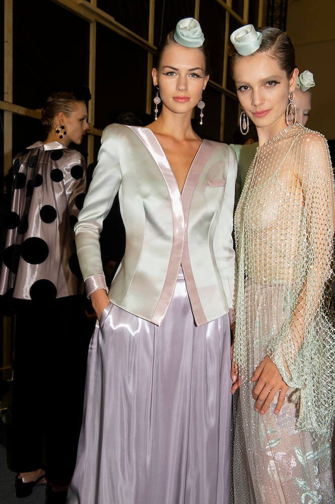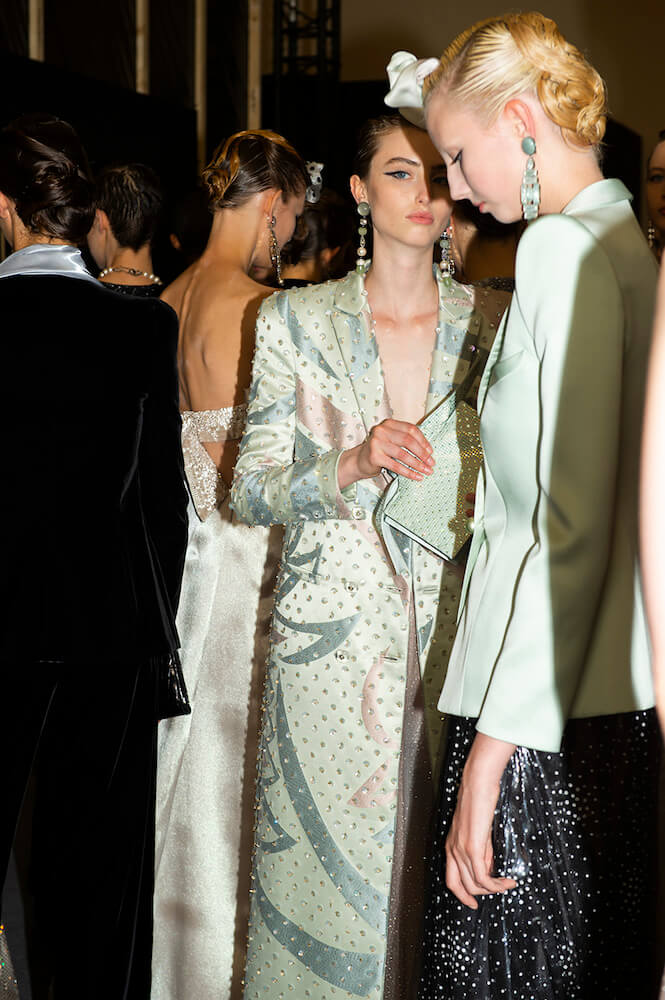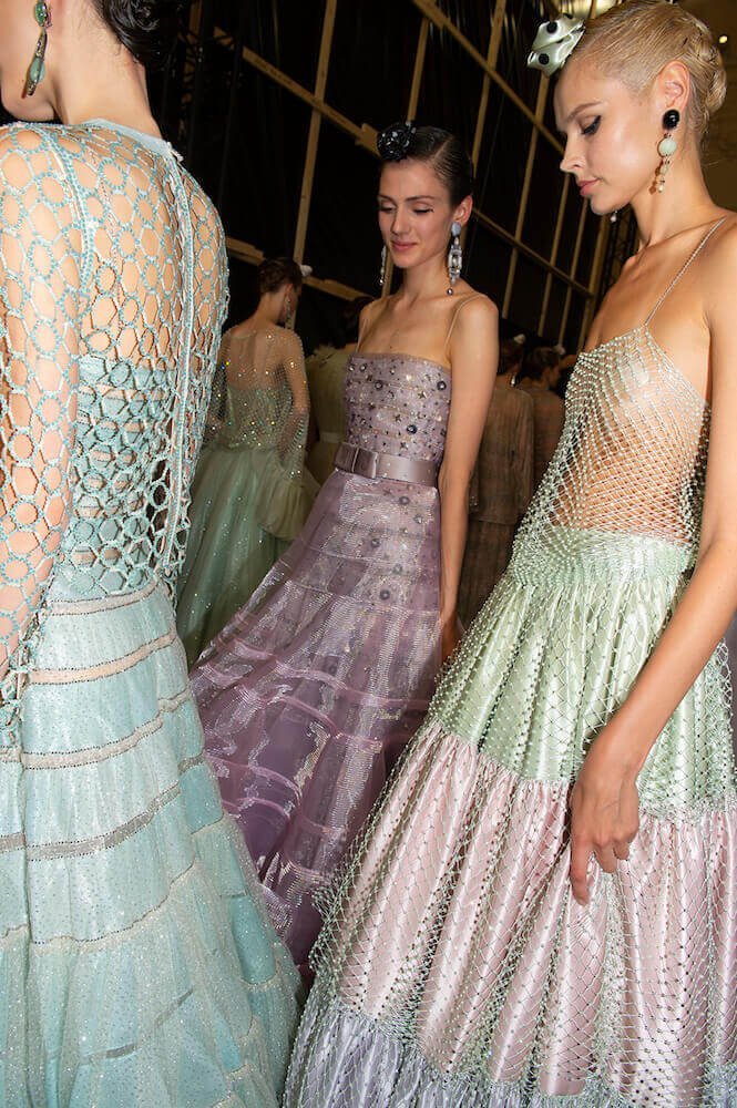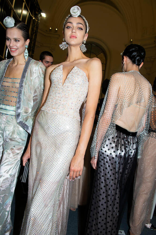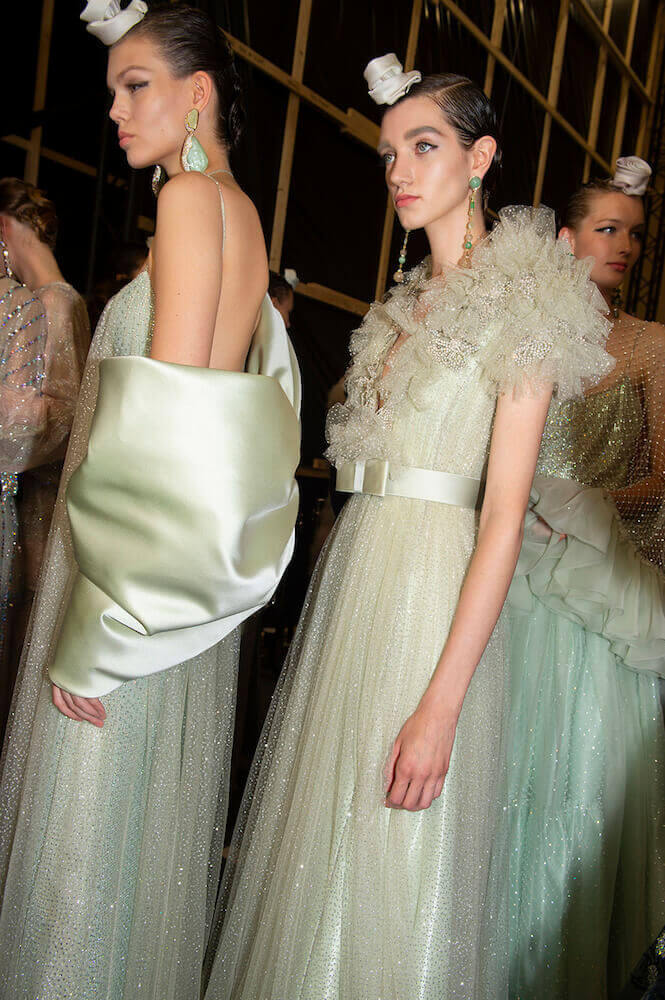 Gypsy skirts, fondant tulle rainbows and playful transparencies – Giorgio Armani surprised his audience with a folksy themed Armani Prive show. The designer channeled pure prettiness into the most sophisticated clothes. He used ice cream coloured tulle in abundance to create flounced gypsy skirts worn with crystal mesh vests. Armani is the master of elegance – his signature jackets (that shoulder line is instantly recognisable and second to none!) were cut close to the body and worn with wide trousers draped with a veil of sheer tulle. The tailoring acted as a serious counterpoint to the delicate gowns and that was the lasting impression. As the models twirled in their dancing skirts it all looked so light, delicate and dreamy.