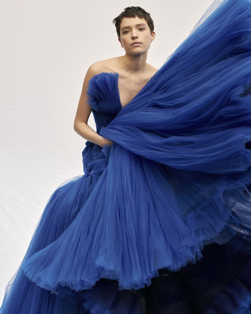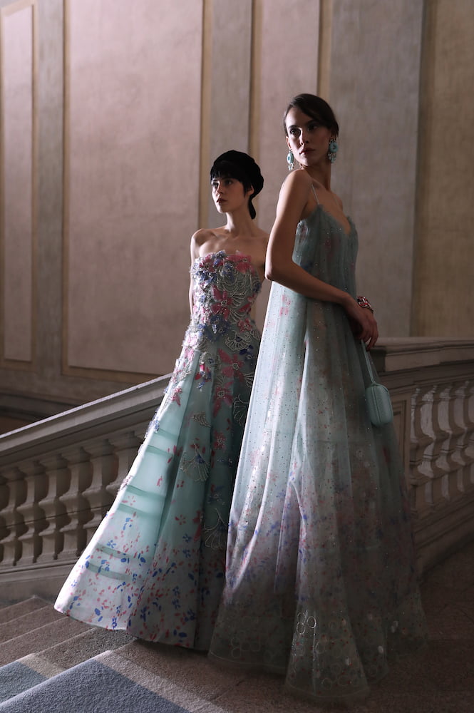 Paris lays claim to Couture but for Mr Armani, everything starts in Milan. His studio, in the immaculate Palazzo Orsini, is “where the clothes are born,” he explained. Covid may have ruled out his usual Paris showcase, but the Palazzo is as grand as any French salon and it carries the emotion of home.