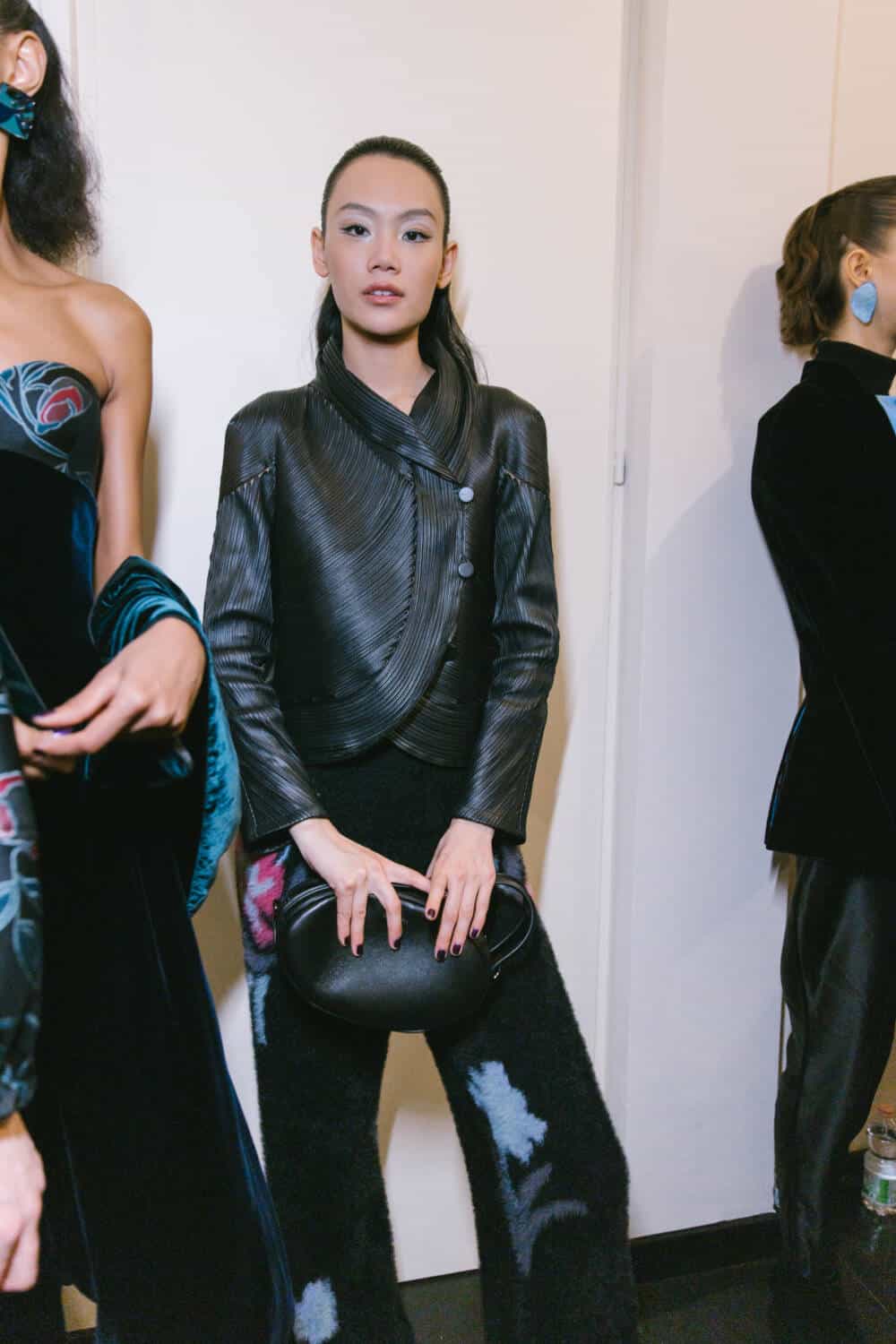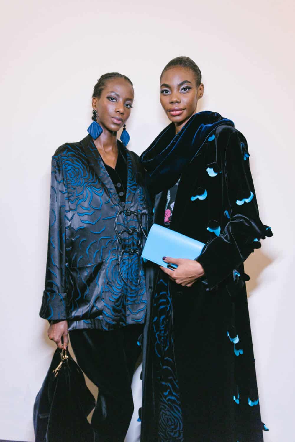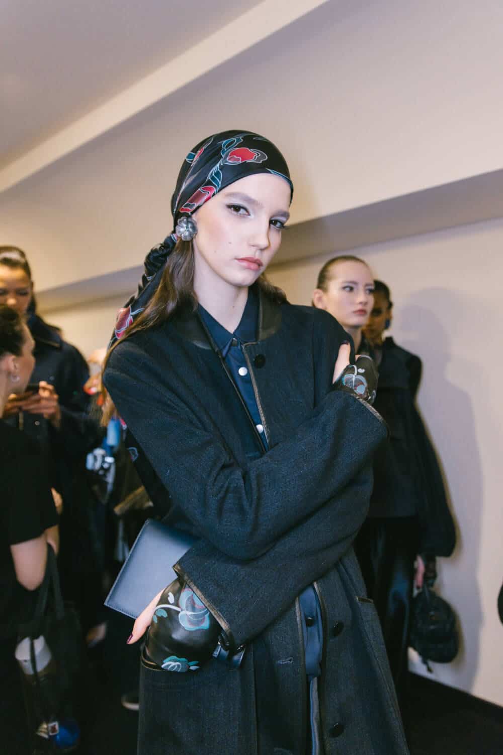 The show opened with, Gina di Bernardo, a favourite face of the house in the 1980s, wearing a soft, graceful coat worn with silk pyjamas underneath and a floral appliqué felt hat. The look telegraphed Armani’s trademark easy elegance.