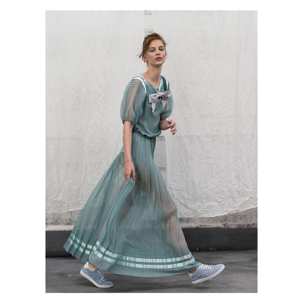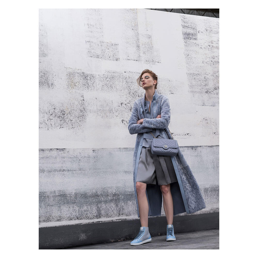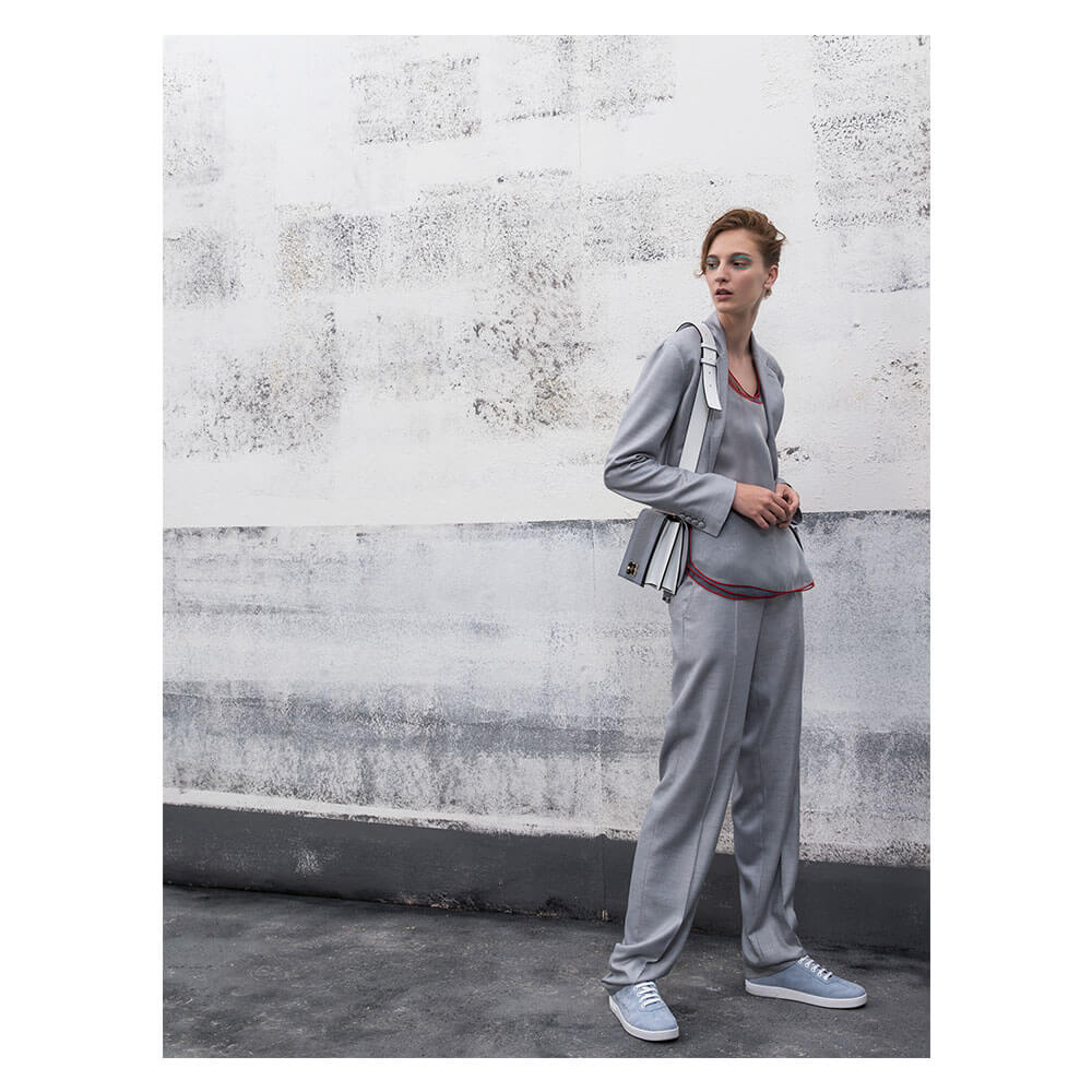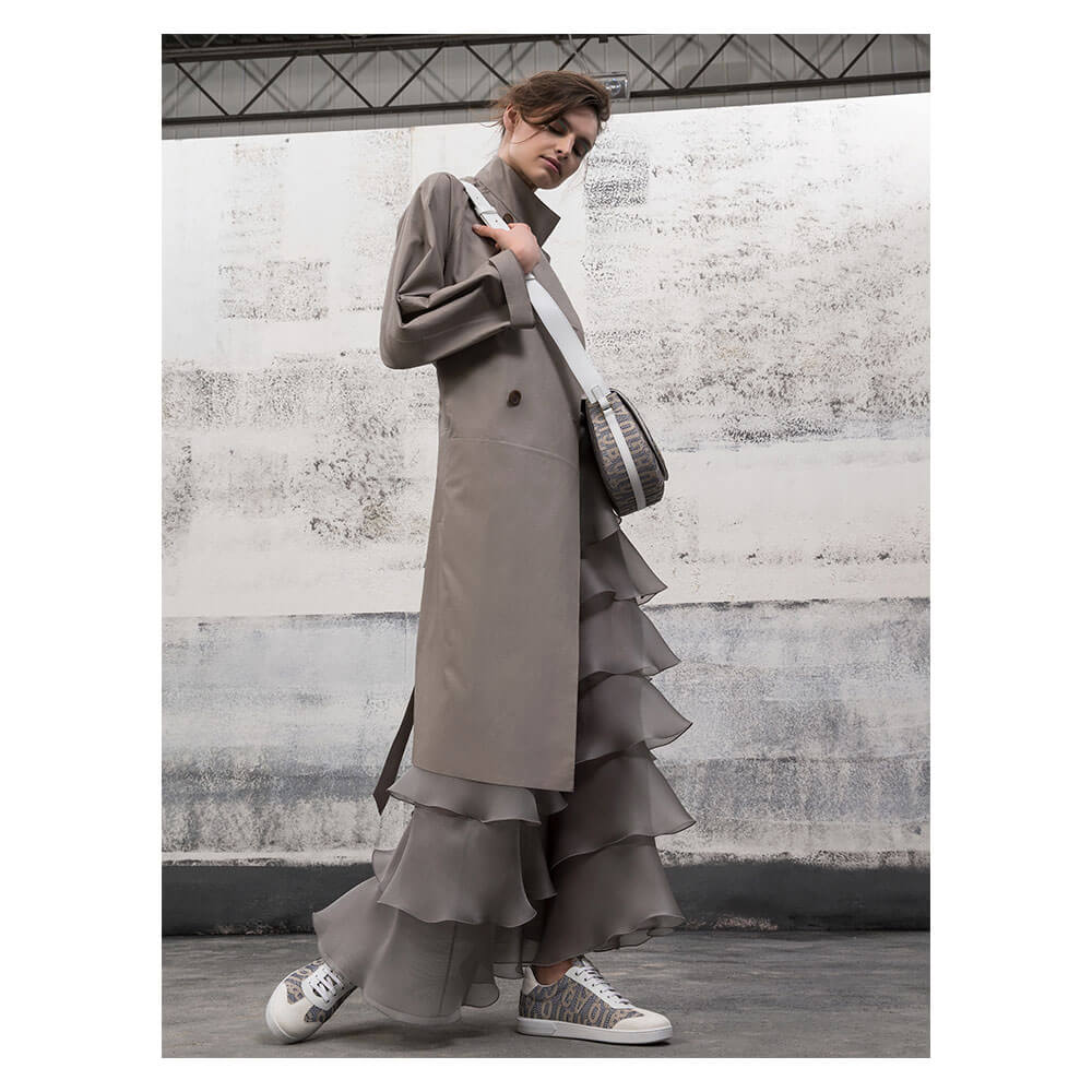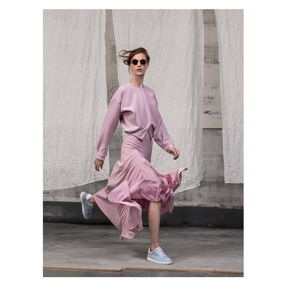 There’s always something quite ethereal about a Giorgio Armani collection. We imagine that it’s what they wear at the gates of heaven, aerodynamically ruffling in the breeze. Is there a breeze in heaven? We’re not entirely sure, can’t say we’ve been, but we are certain that Armani would look good up there on all those fluffy clouds, golden gates and a choir of angelic voices singing in perfect harmony. The collection for Resort 2019 is titled ‘Weightless’ a word that embodies the Armani flow that Mr Armani has completely captured, secured and continues to produce. It’s down to all that soft gracefulness in loosely tailored suits and the Armani version of a tracksuit which is probably the chicest sweatpants we’ll ever see. Not to actually sweat in, but the Armani woman isn’t working out, she’s working IT. The motto. Pretty sheer pleated ankle-length dresses and skirts are resort-ified in pastel coloured low and high top trainers, never a statement sneaker, just back to classic basics. The Armani uniform continues to be a liberating pant paired with thin tee and round collarless jacket. And oh how we love those petal-like tiered sheer dresses that swish so surreally. As they said, weightless all elected in the make-up, graphic greatness in those turquoise lined eyes. Mr Armani is staying in his righteous lane, full speed ahead.