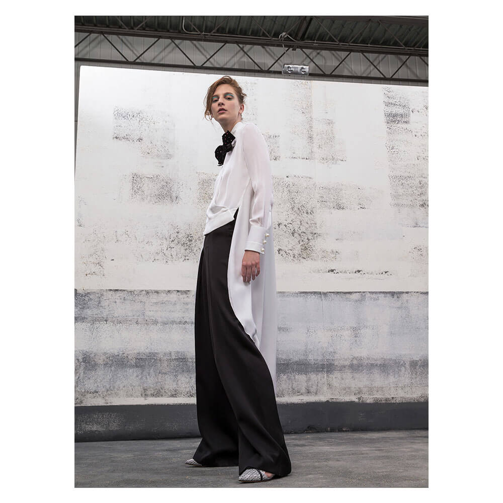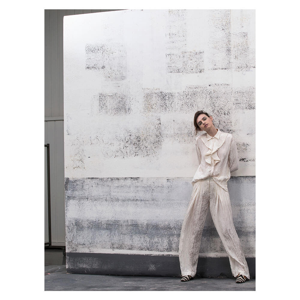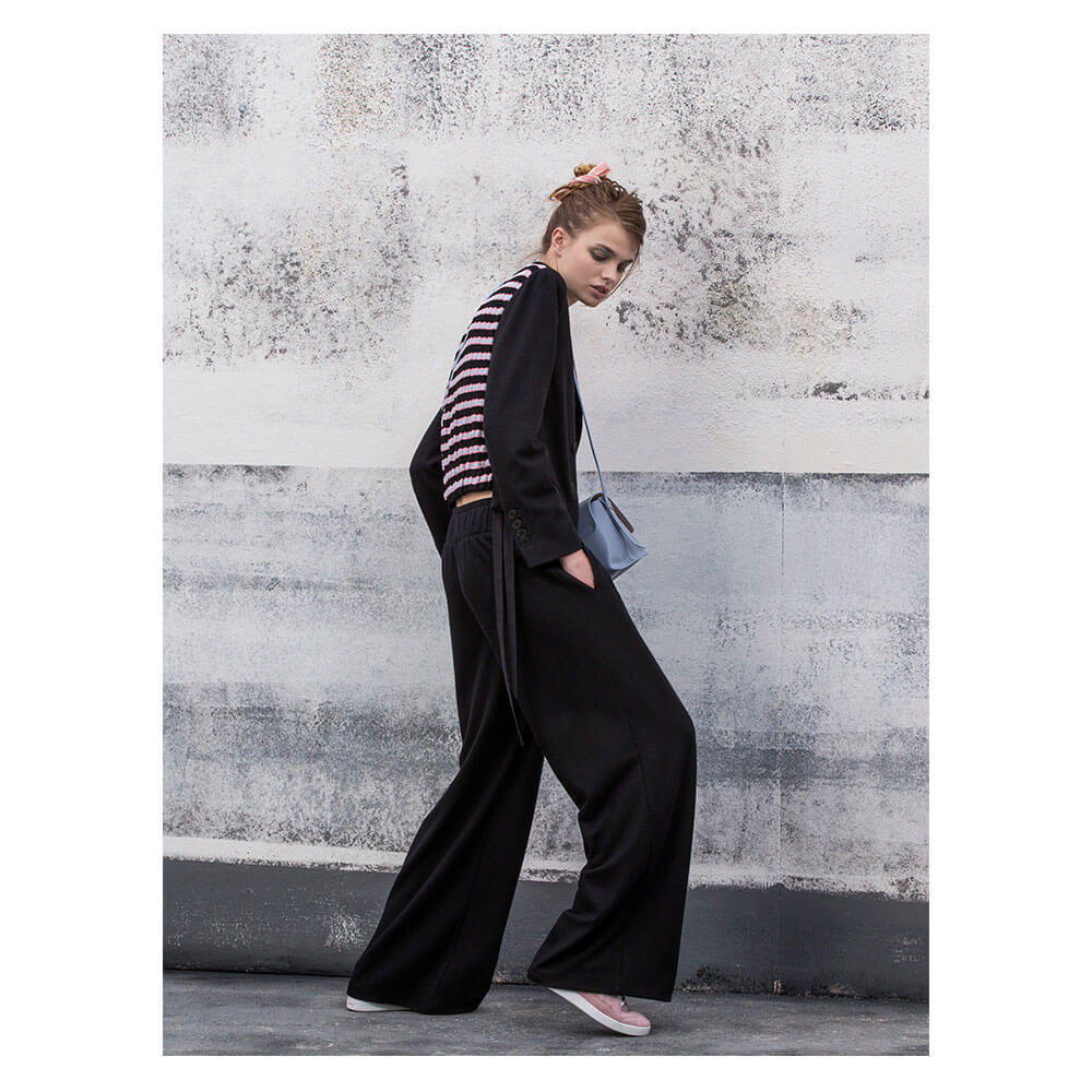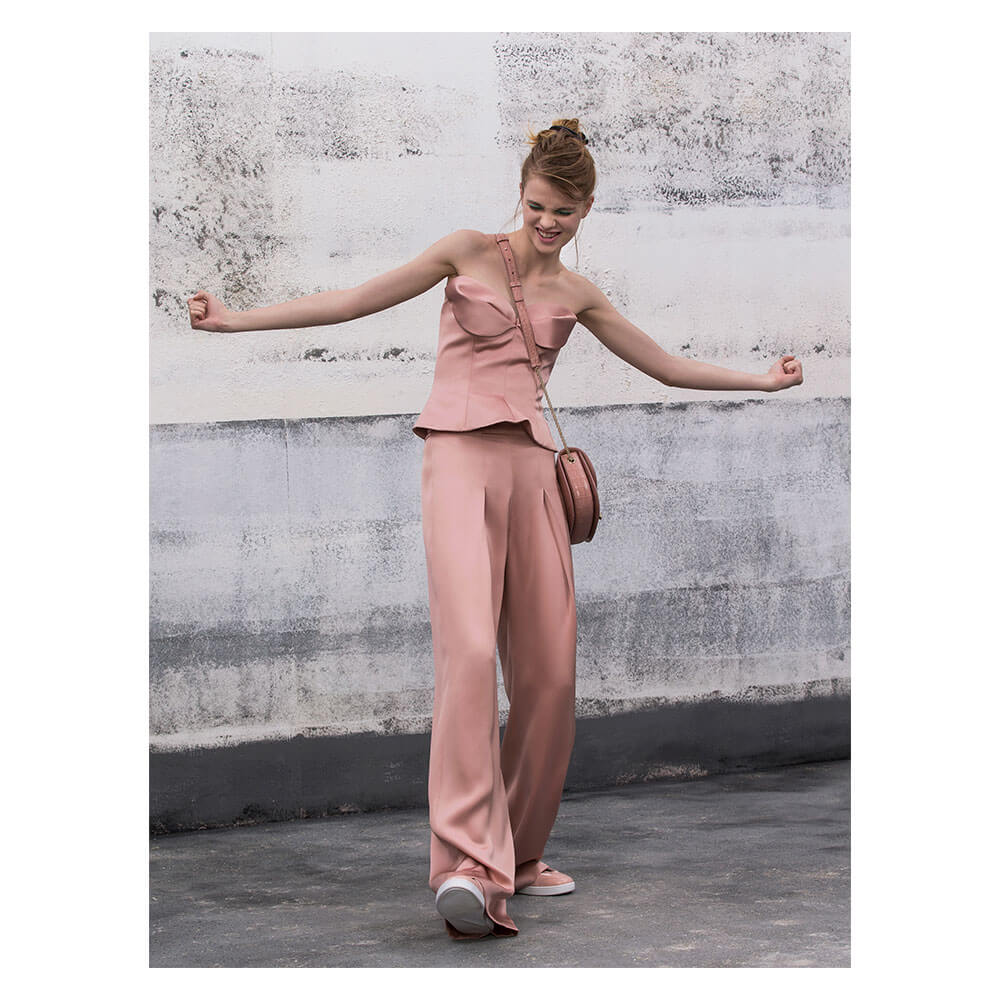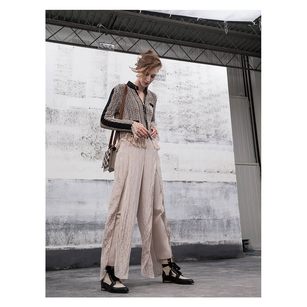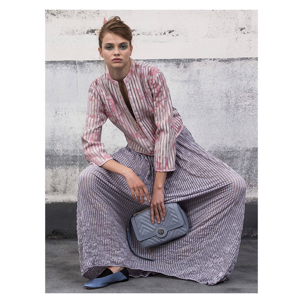 There’s always something quite ethereal about a Giorgio Armani collection. We imagine that it’s what they wear at the gates of heaven, aerodynamically ruffling in the breeze. Is there a breeze in heaven? We’re not entirely sure, can’t say we’ve been, but we are certain that Armani would look good up there on all those fluffy clouds, golden gates and a choir of angelic voices singing in perfect harmony. The collection for Resort 2019 is titled ‘Weightless’ a word that embodies the Armani flow that Mr Armani has completely captured, secured and continues to produce. It’s down to all that soft gracefulness in loosely tailored suits and the Armani version of a tracksuit which is probably the chicest sweatpants we’ll ever see. Not to actually sweat in, but the Armani woman isn’t working out, she’s working IT. The motto. Pretty sheer pleated ankle-length dresses and skirts are resort-ified in pastel coloured low and high top trainers, never a statement sneaker, just back to classic basics. The Armani uniform continues to be a liberating pant paired with thin tee and round collarless jacket. And oh how we love those petal-like tiered sheer dresses that swish so surreally. As they said, weightless all elected in the make-up, graphic greatness in those turquoise lined eyes. Mr Armani is staying in his righteous lane, full speed ahead.