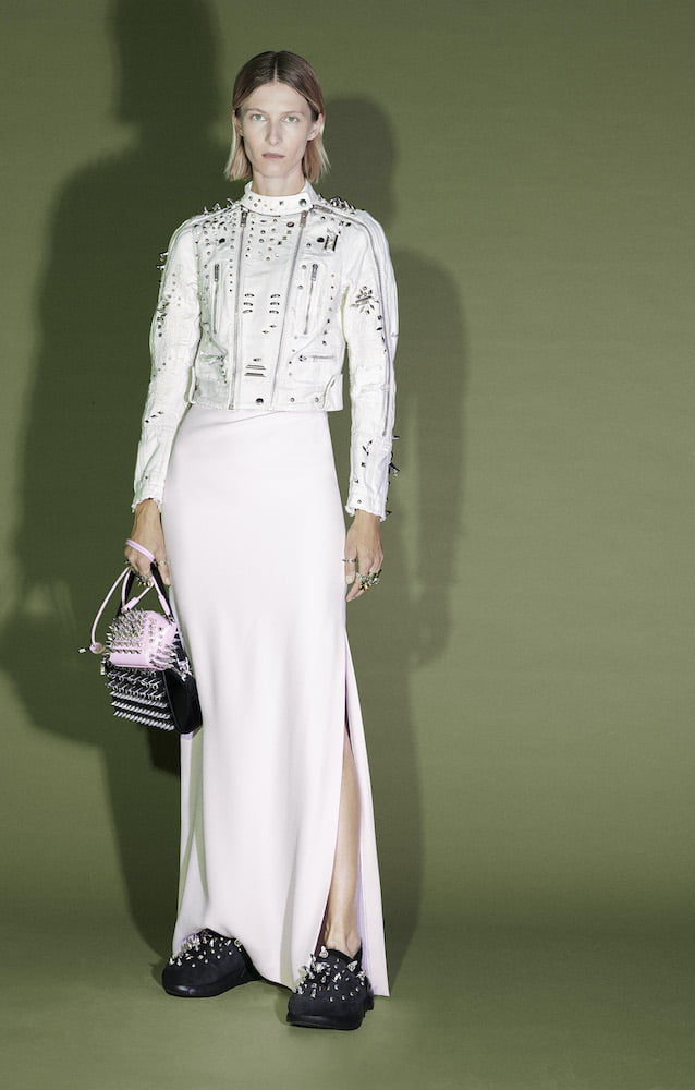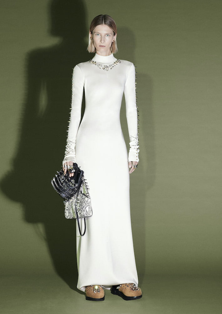Tailoring, knitwear and leather are each cleverly toyed with to offer a sense of realism to such luxury Givenchy pieces. Whether it be spiked biker jackets and silk, floor-length gowns – each worn with thigh-high leather boots – or genderless tuxedos, Williams designs with the every day in mind. “Ultimately, what I am trying to do in the Givenchy collections is reflect today’s world,” says the designer. And is there’s any shoe equipped to tackle 2020, it’s definitely those spikey Marshmallow Slides.