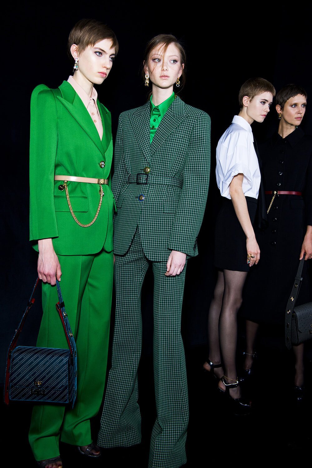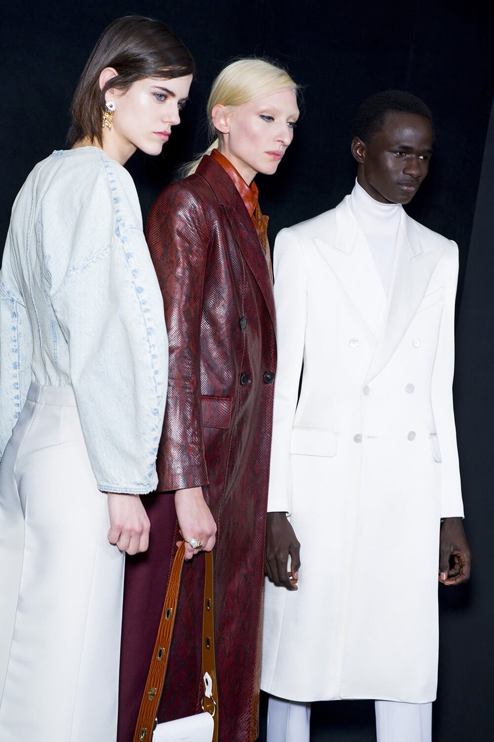 What does elegance mean in 2019? Clare Waight Keller has an answer at Givenchy, where a sleek, sartorial approach rules. Waight Keller understands the importance of line and works with the renowned Givenchy couture atelier to perfect her jacket shapes. That extra care is paying off for the ready-to-wear. Along a thin black strip of catwalk her Givenchy woman strode wearing tailored coats and trousers suits with pronounced curving shoulders. This is not bog standard but a cut above. Waight Keller is of the persuasion that everything’s better belted. No wonder Givenchy is fast becoming the go to label for women who want to look pulled together.