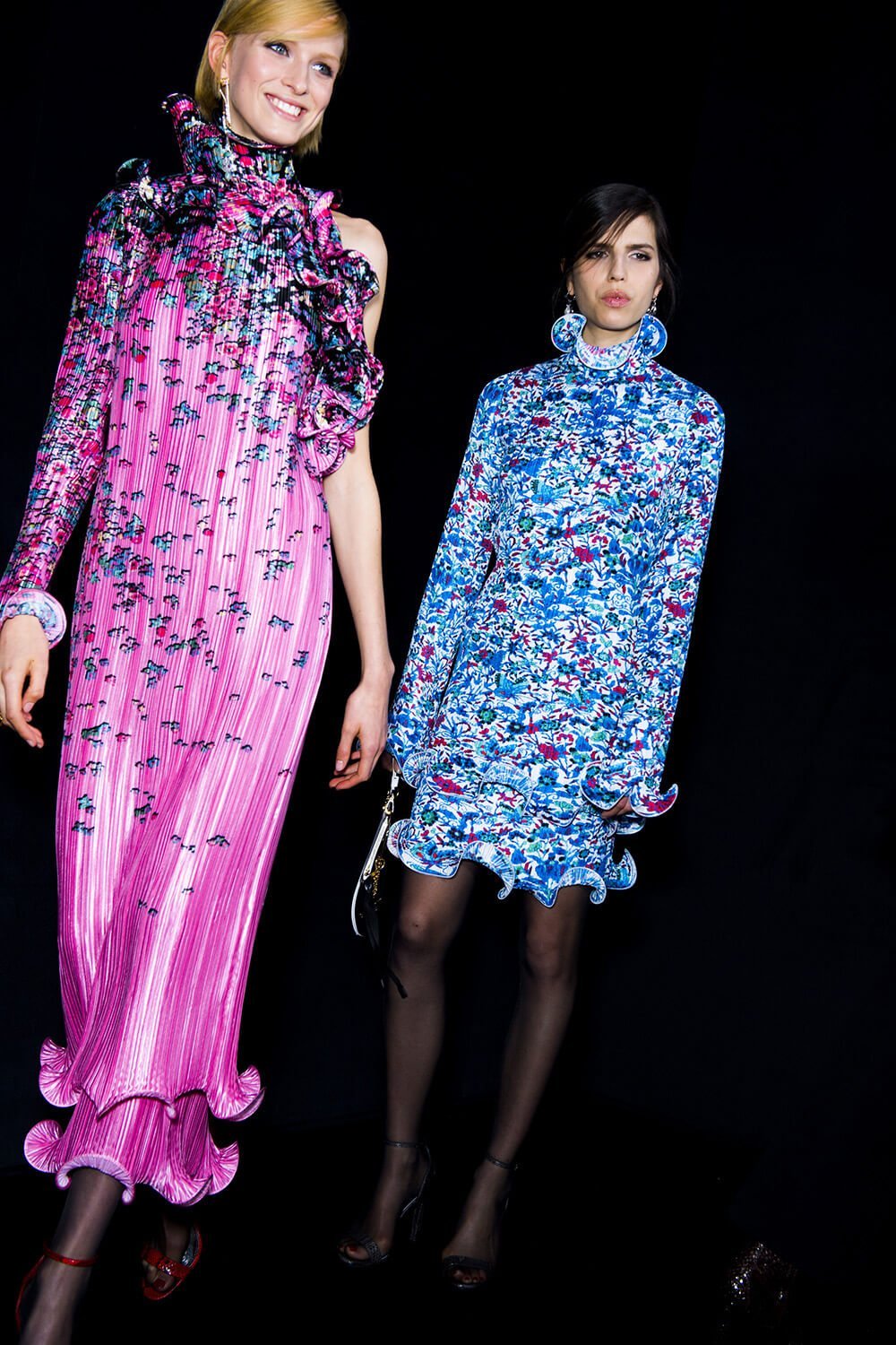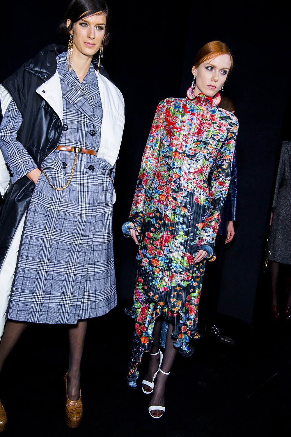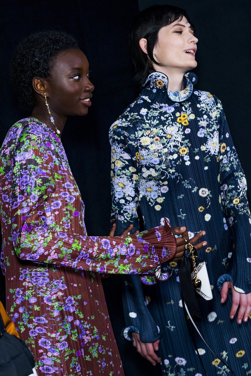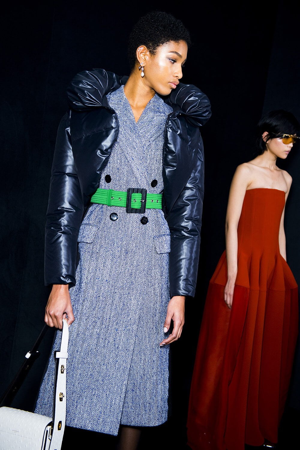 She’s also a considerate designer. Plissé printed high neck dresses had an appealing femininity, but you could imagine a woman pulling one out of a suitcase, stepping into it and heading straight out to a party – no fuss. There were sportswear moments too – a puffa coat over a tailored suit – which will play out well IRL. That balance of the fabulous and the for real is fast becoming Waight Keller’s signature. There’s strength in those shoulders.