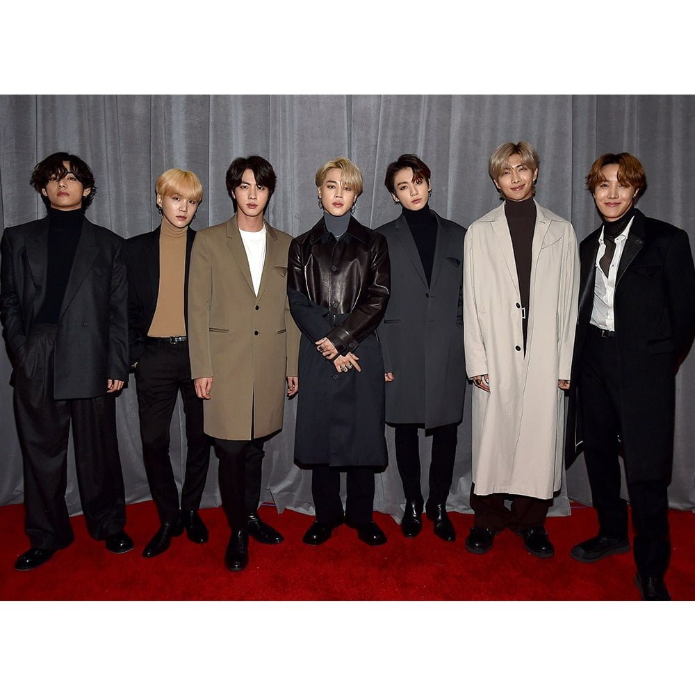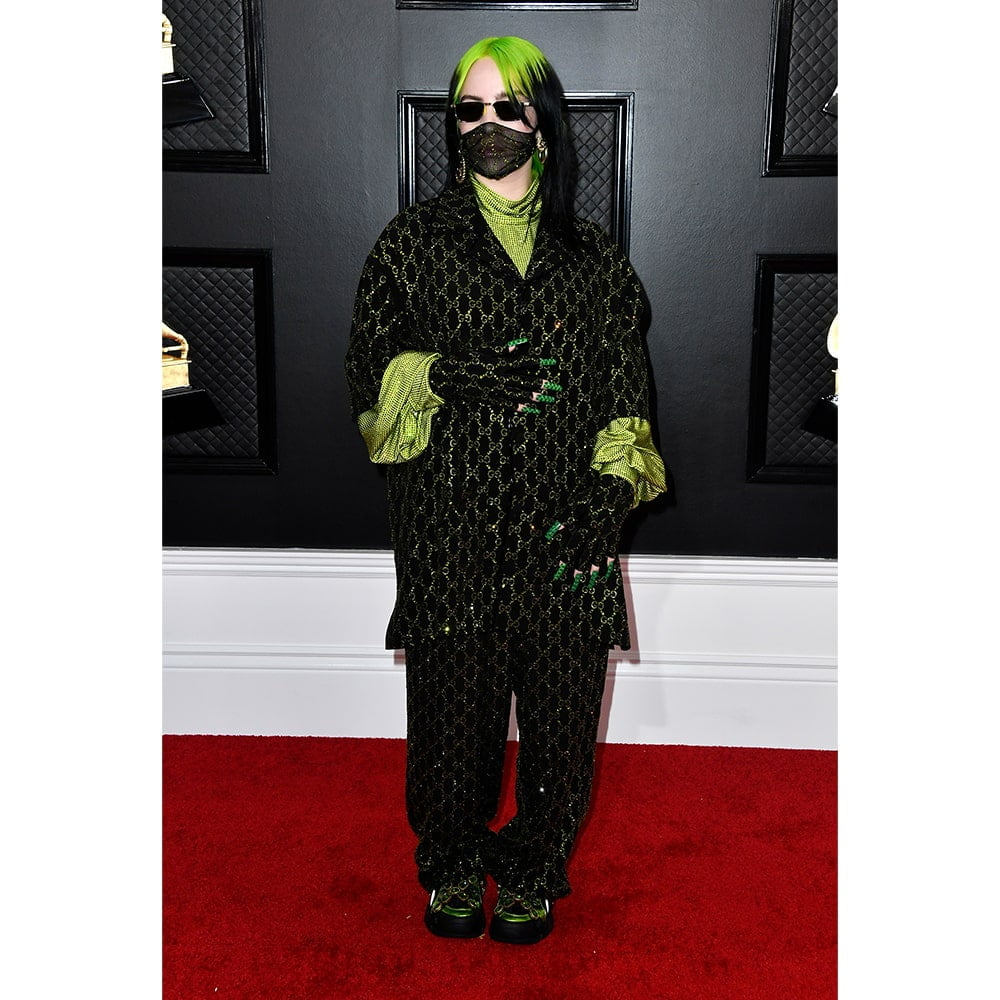 The biggest winners of the night were Billie Eilish and her brother-slash-producer Finneas, each going away with five golden statues. And making sure her look stood as high up as her talent, Eilish trusted Gucci’s team with her custom-made, now signature oversized twinset look. The red carpet version came in black velvet emblazoned with green crystals in the GG monogram, layered under a blouson-sleeved turtleneck and accessorised with matching nails and a facemask. Also bringing the sparkle was actor, musician and all-round style icon Billy Porter who brought the Elton John levels of drag with his custom Baja East lurex onesie and plenty of bugle-bead fringing. A hat that shimmies and mechanically opens up to reveal a Cleopatra-esque make-up story underneath added that extra Porter touch we love. On the other side of the style spectrum were the K-pop sensation BTS who went for a tale of modern minimalism courtesy of Daniel Lee’s Bottega Veneta. Our favourite from the bunch of neutral hues was Jimin’s leather-topped trench-coat in a perfect shade of chocolate brown. Yummy…