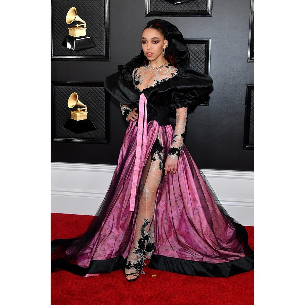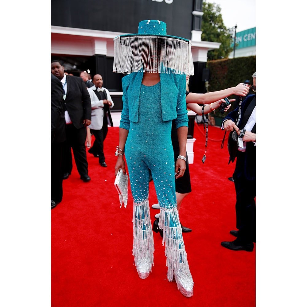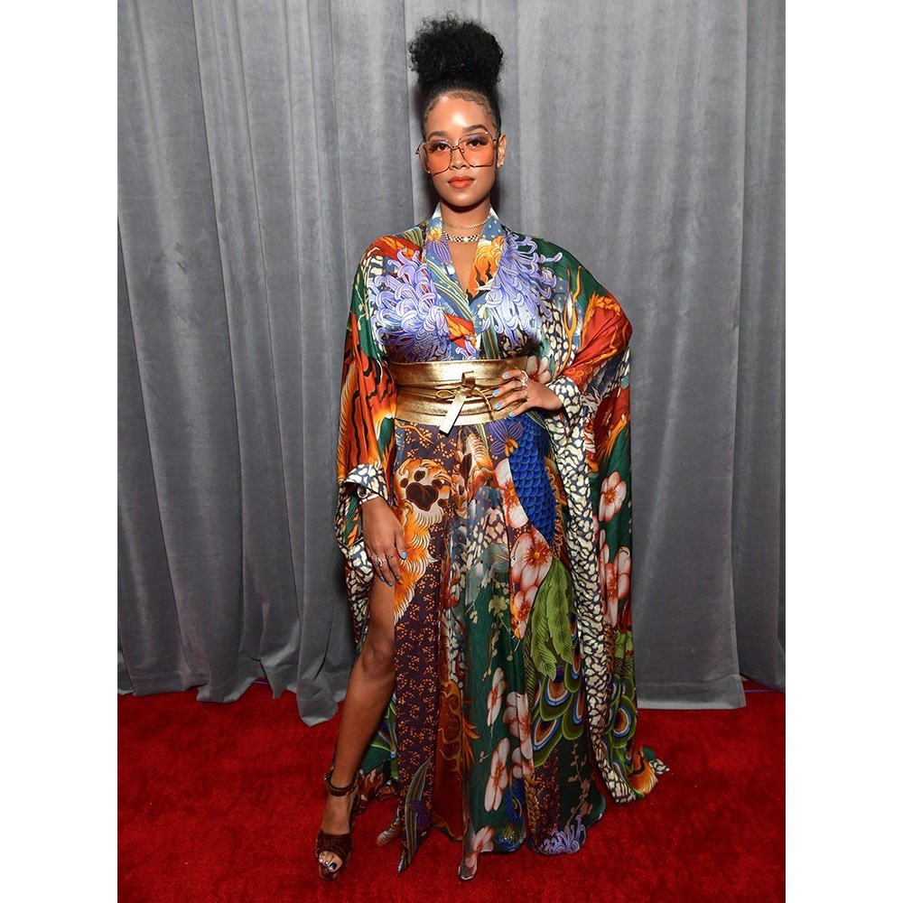 Repping the Brits on the carpet was FKA Twigs who worked with her long-term collaborator and ex-Fashion East designer Ed Marler to create a one-off piece which subtly paid homage to Prince and announced Twigs’ performance alongside Usher in tribute to the legendary singer. The trouser-gown hybrid was a bit Victorian, a bit Edwardian, and a lot of fabulous. Even though she went home without a Grammy despite her five nominations, Gabriella Wilson aka H.E.R. was definitely one of our winners. In a maxi floral kimono tied with a gold-leather obi-style belt courtesy of the Dsquared2 boys and their SS20 collection, she was easy, breezy, beautiful and every part the Cali girl she is – sunnies included.