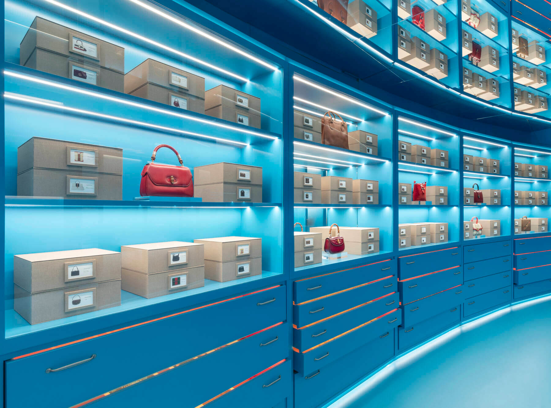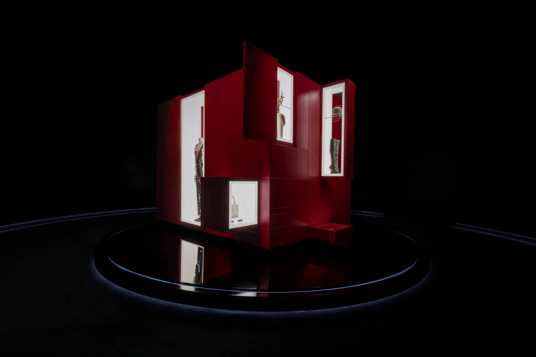 Speaking on the showcase, Es Devlin noted: “For the exhibition’s iteration in London, I wanted draw on the city’s pivotal role in the House’s origin myth in which a young Guccio Gucci rode up and down the red lacquered ‘Ascending Room’ at The Savoy where his interactions with guests and their exquisite luggage would go on to forge his future.”