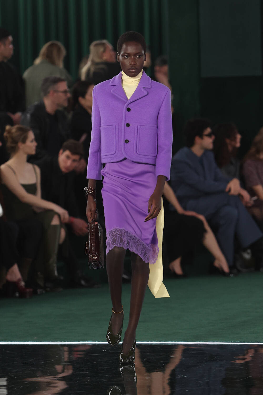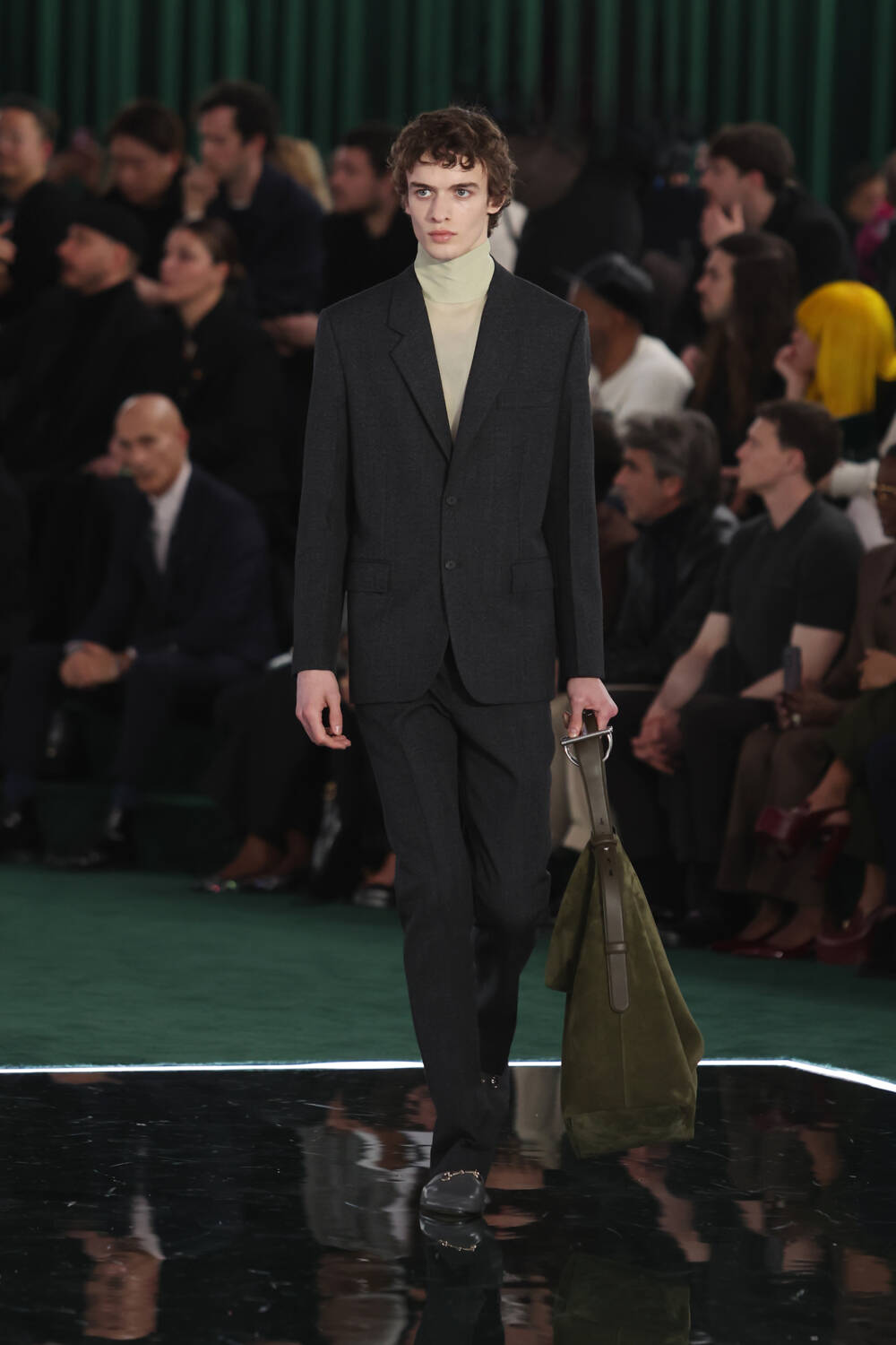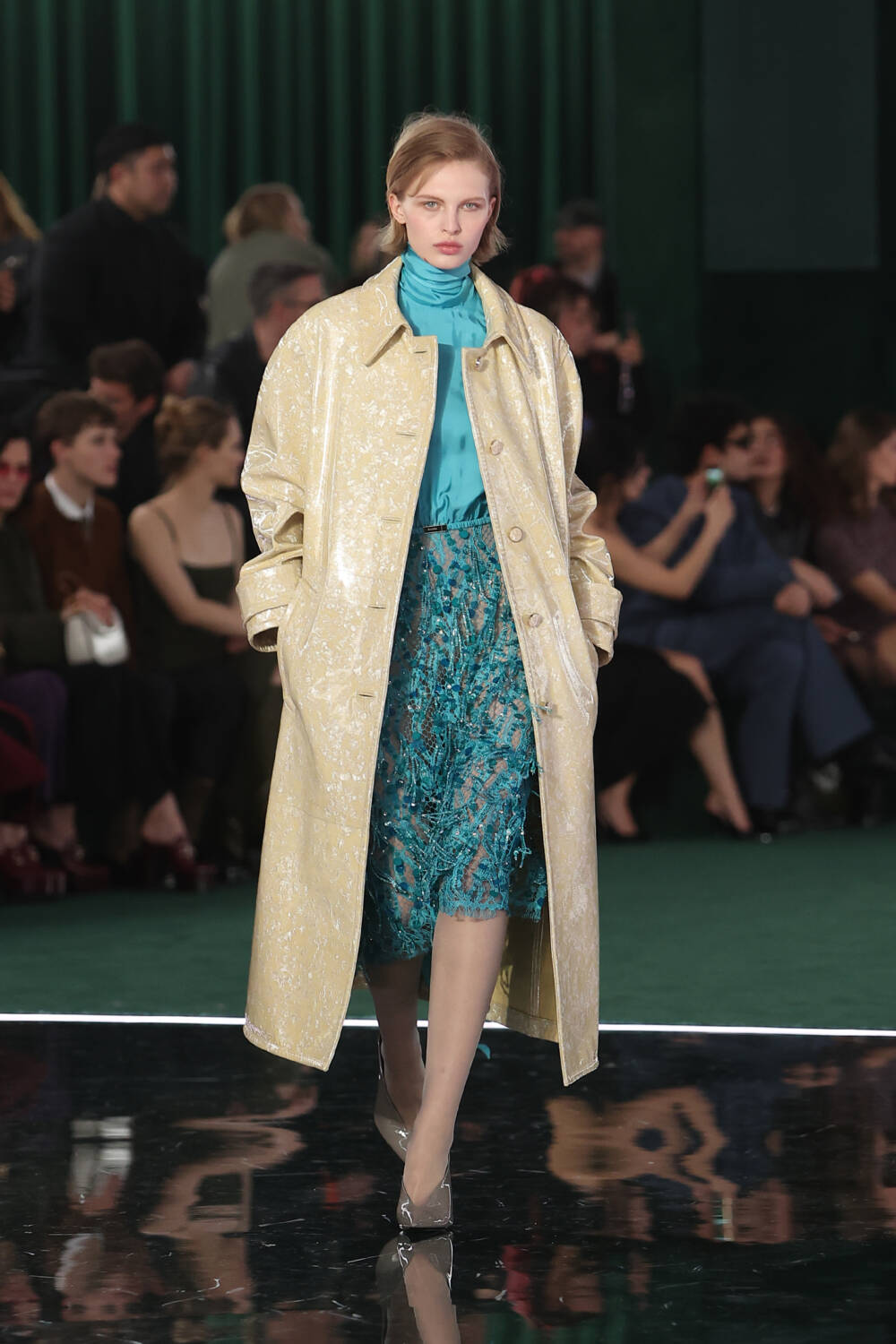 In a time of flux what can a brand do? Gucci offered the idea of continuum – a culture passed down from one generation to the next. It was an elegant way to focus on the consistency of craft, and steer the conversation away from designer speculation at the house which is currently between creative directors. The Ancora red of recent seasons has been replaced by Gucci green, taken from the brands distinctive ribbon – it appeared on invites, covered the show space and billboards around Milan. It marked a transition, as the design team stepped up for AW25.