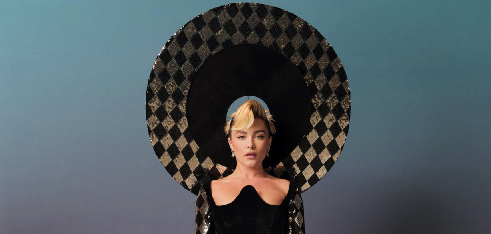Harris Reed is courting cool Hollywood. Fresh from dressing Harry Styles in Nina Ricci at the Brits, (ahead of his debut Paris show for the house next month), his London Fashion Week front row boasted Jodie Turner Smith wearing one of his signature cartwheel hats, whilst Florence Pugh opened his show with a speech about the transformative power of clothing. “Embrace the lamé and sequins of life because all the world is a stage,” she said whilst wearing a bedazzled harlequin maxi skirt and bustier.