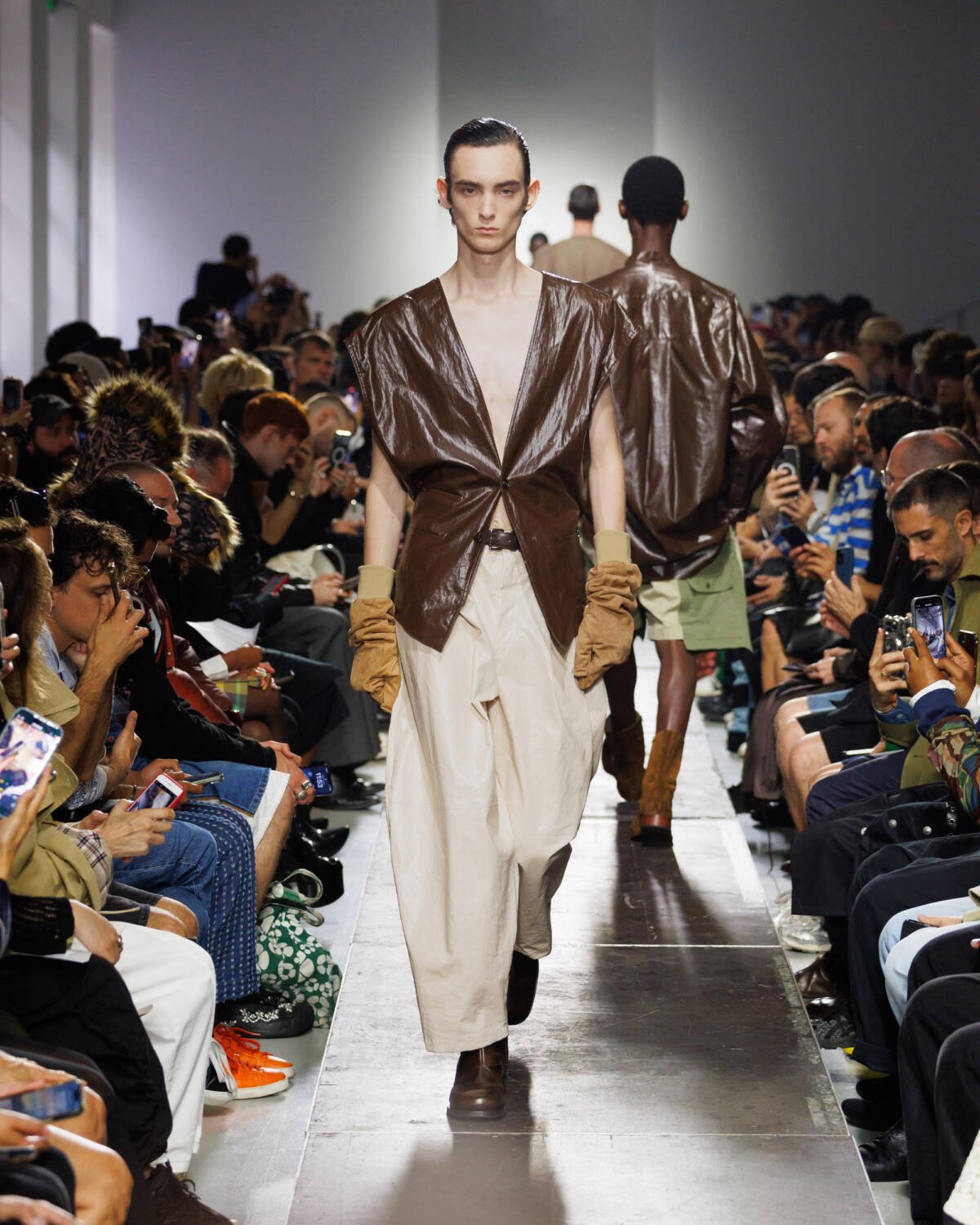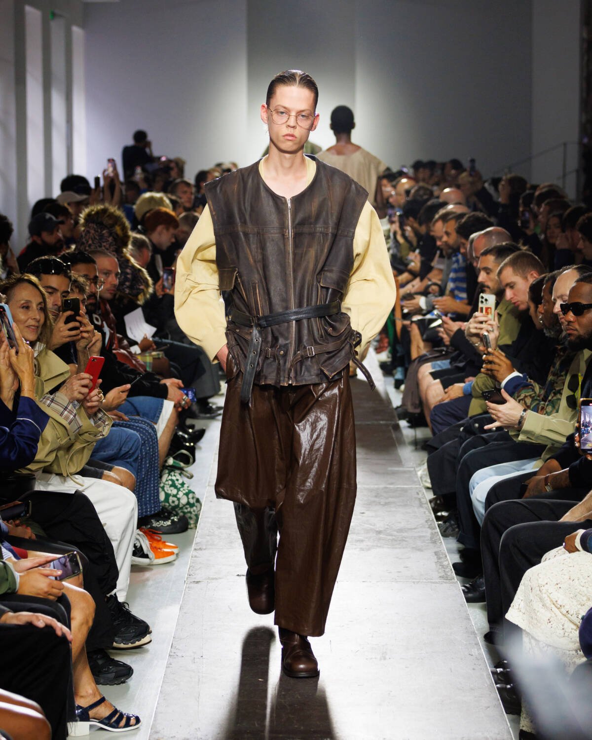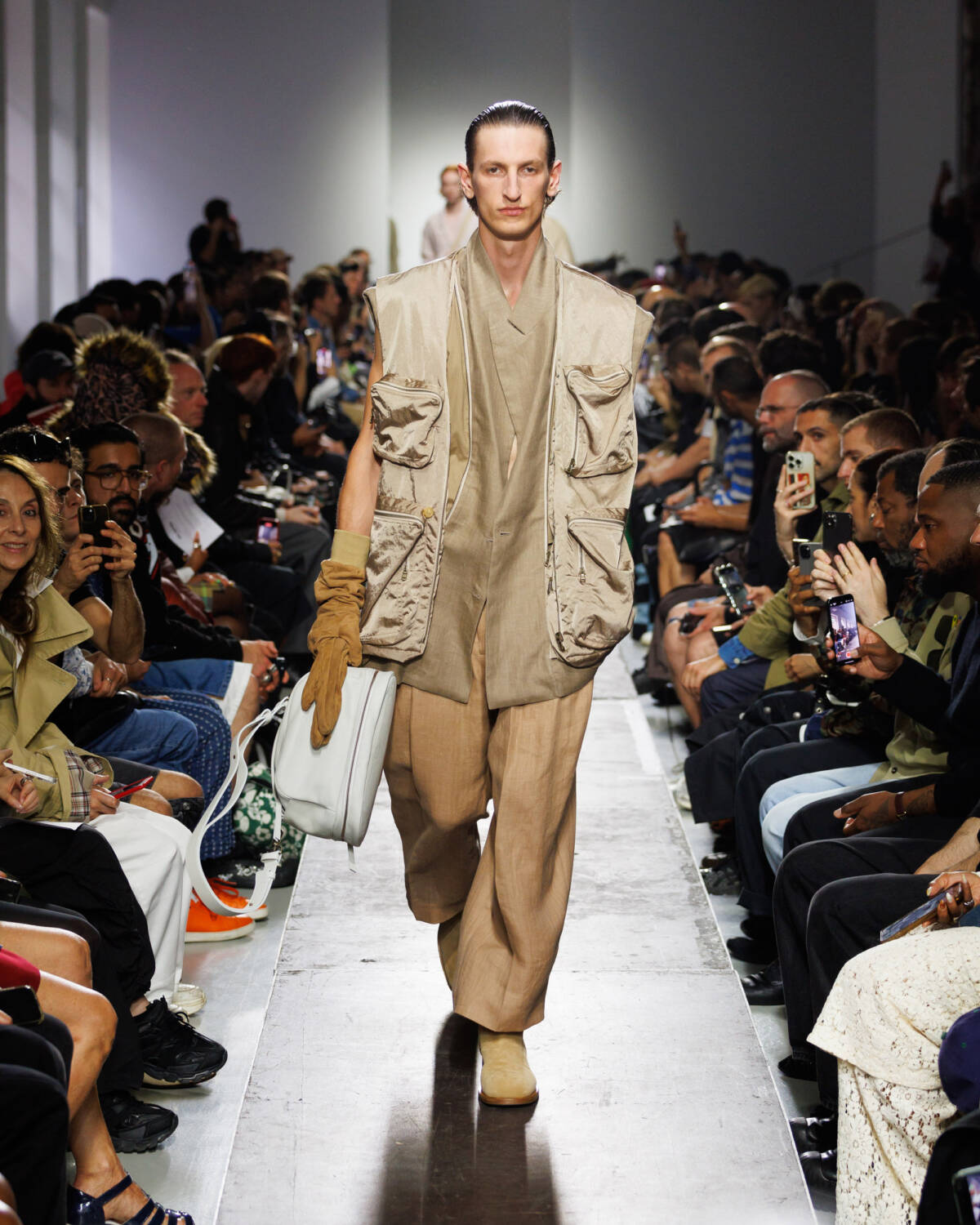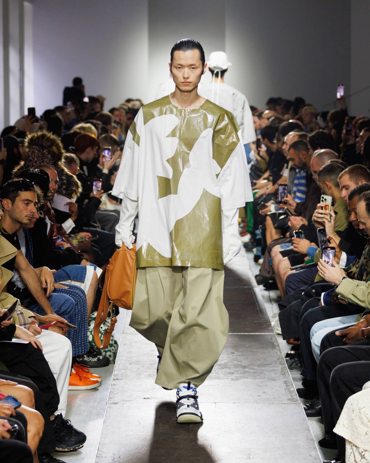Israeli fashion designer Hed Mayner knows how to please a crowd. Using this SS25 season to reimagine his go-to techniques, he focused on expanding proportions and working with new patterns. Imagining garments as a means of cocooning the body, Mayner sent a series of wide-shouldered jackets and overly baggy trousers down his Parisian runway.