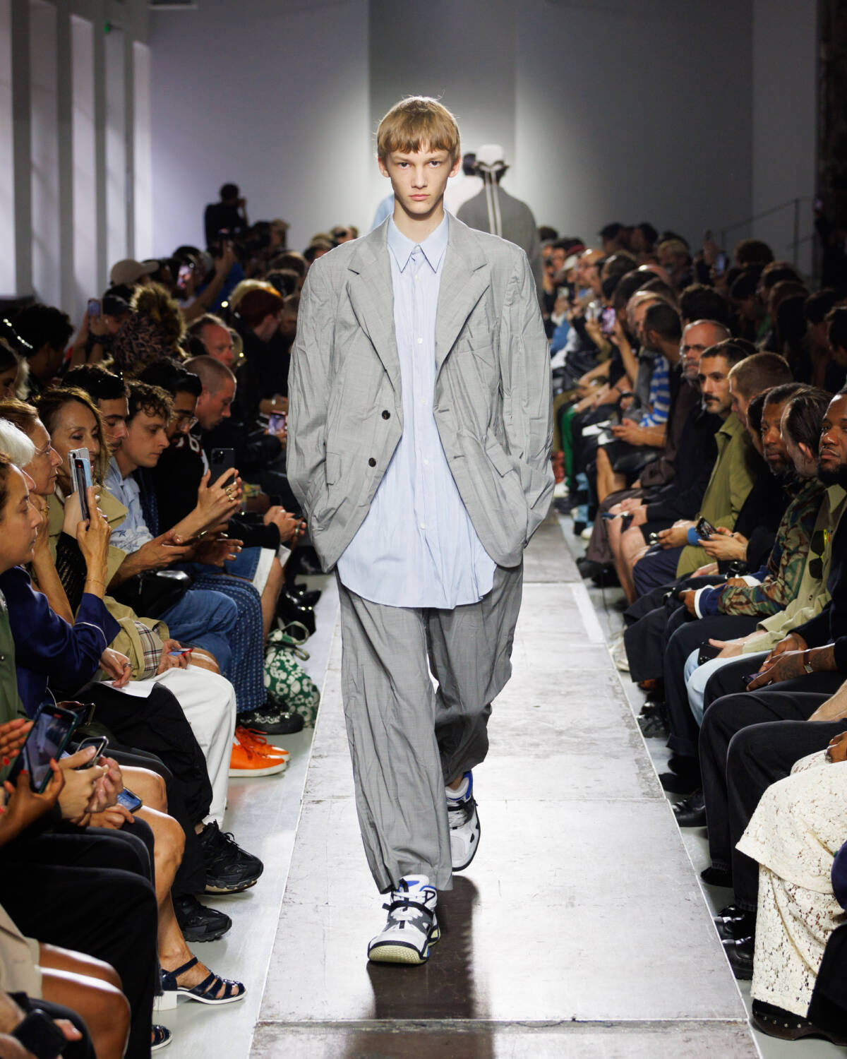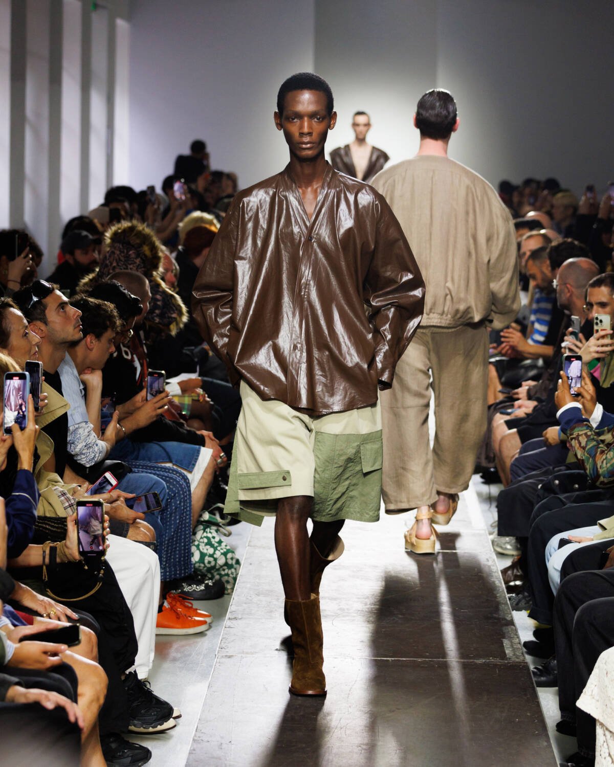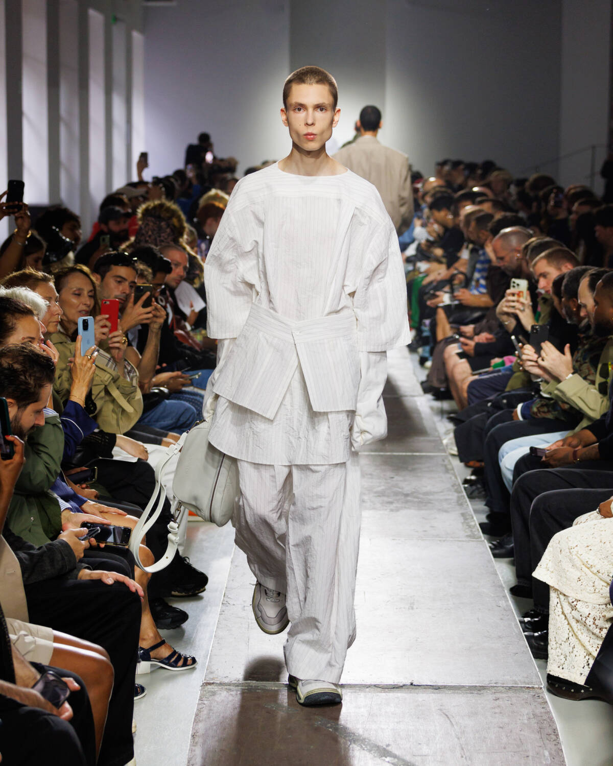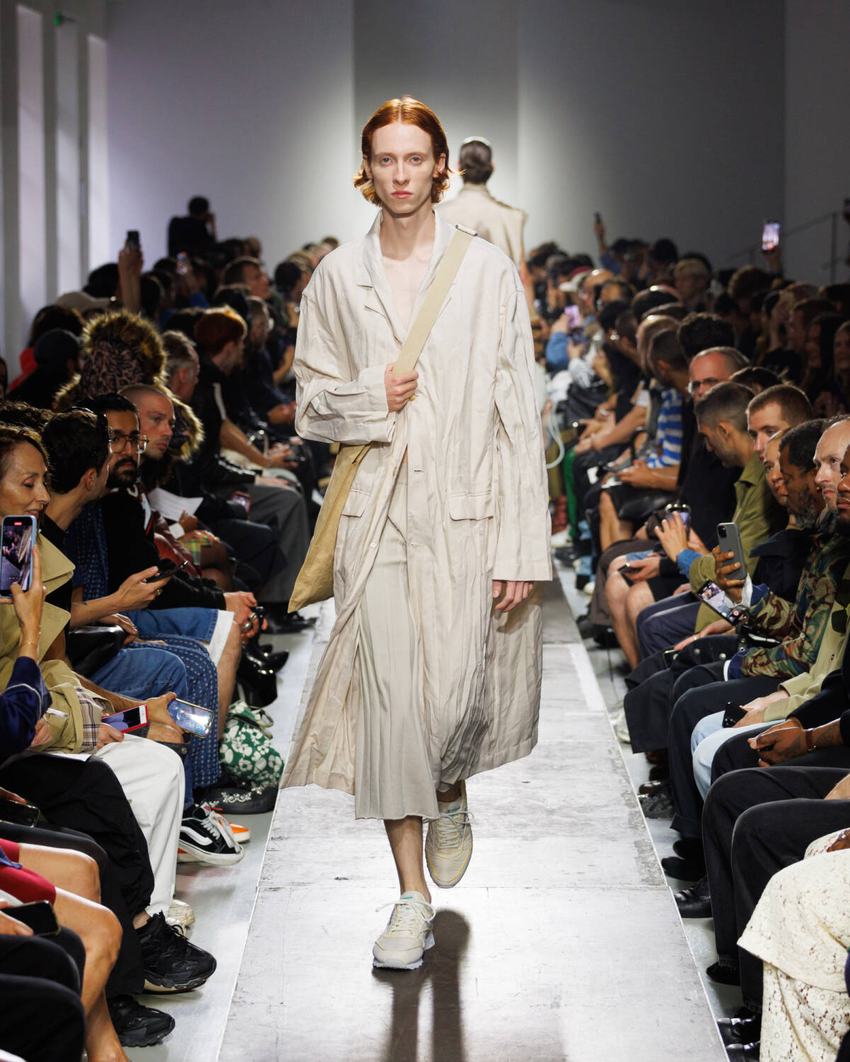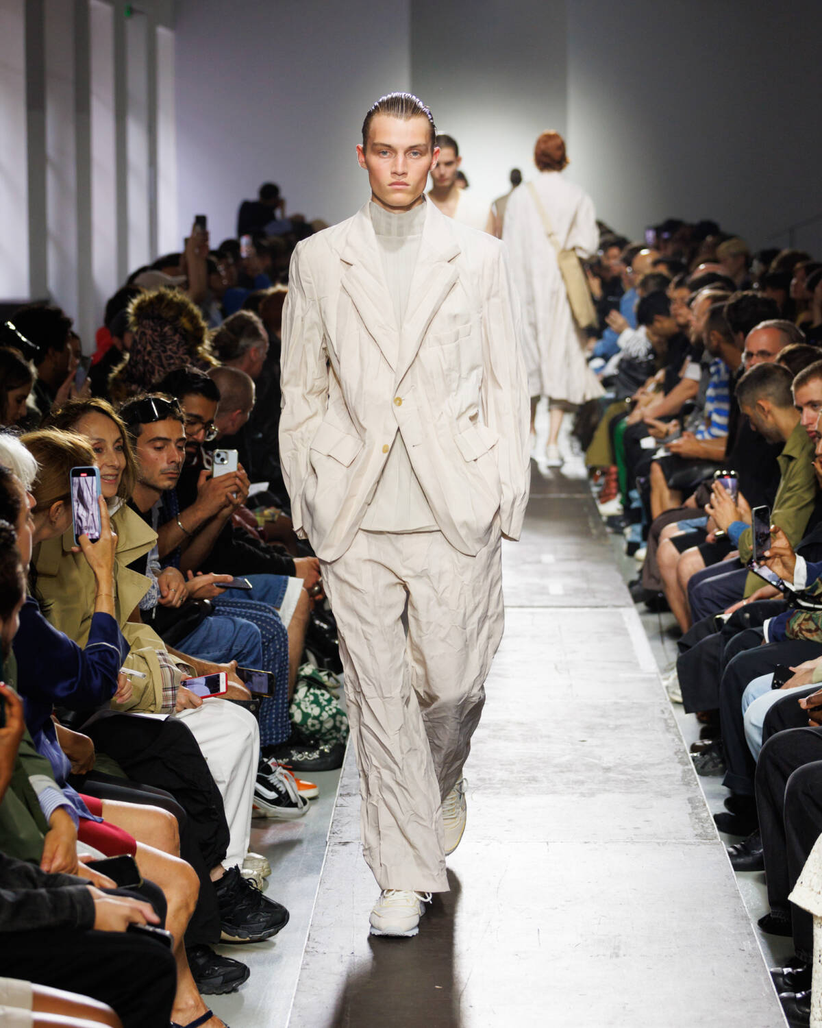 Israeli fashion designer Hed Mayner knows how to please a crowd. Using this SS25 season to reimagine his go-to techniques, he focused on expanding proportions and working with new patterns. Imagining garments as a means of cocooning the body, Mayner sent a series of wide-shouldered jackets and overly baggy trousers down his Parisian runway.