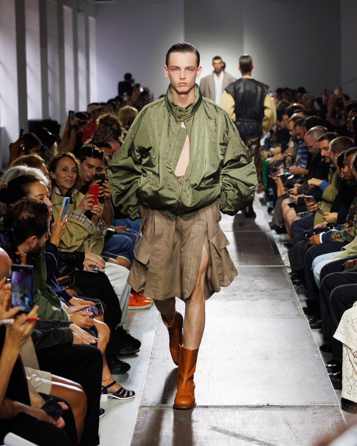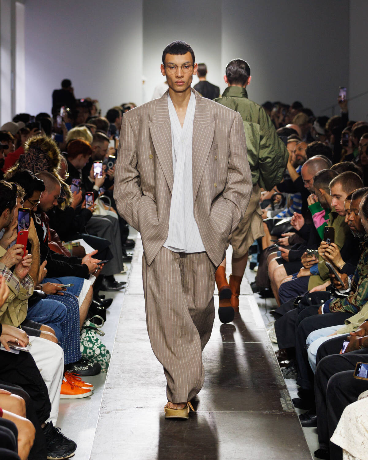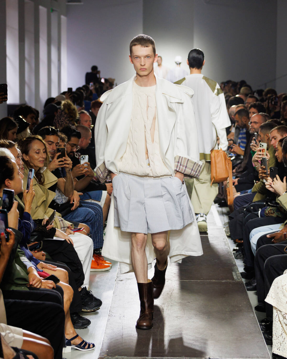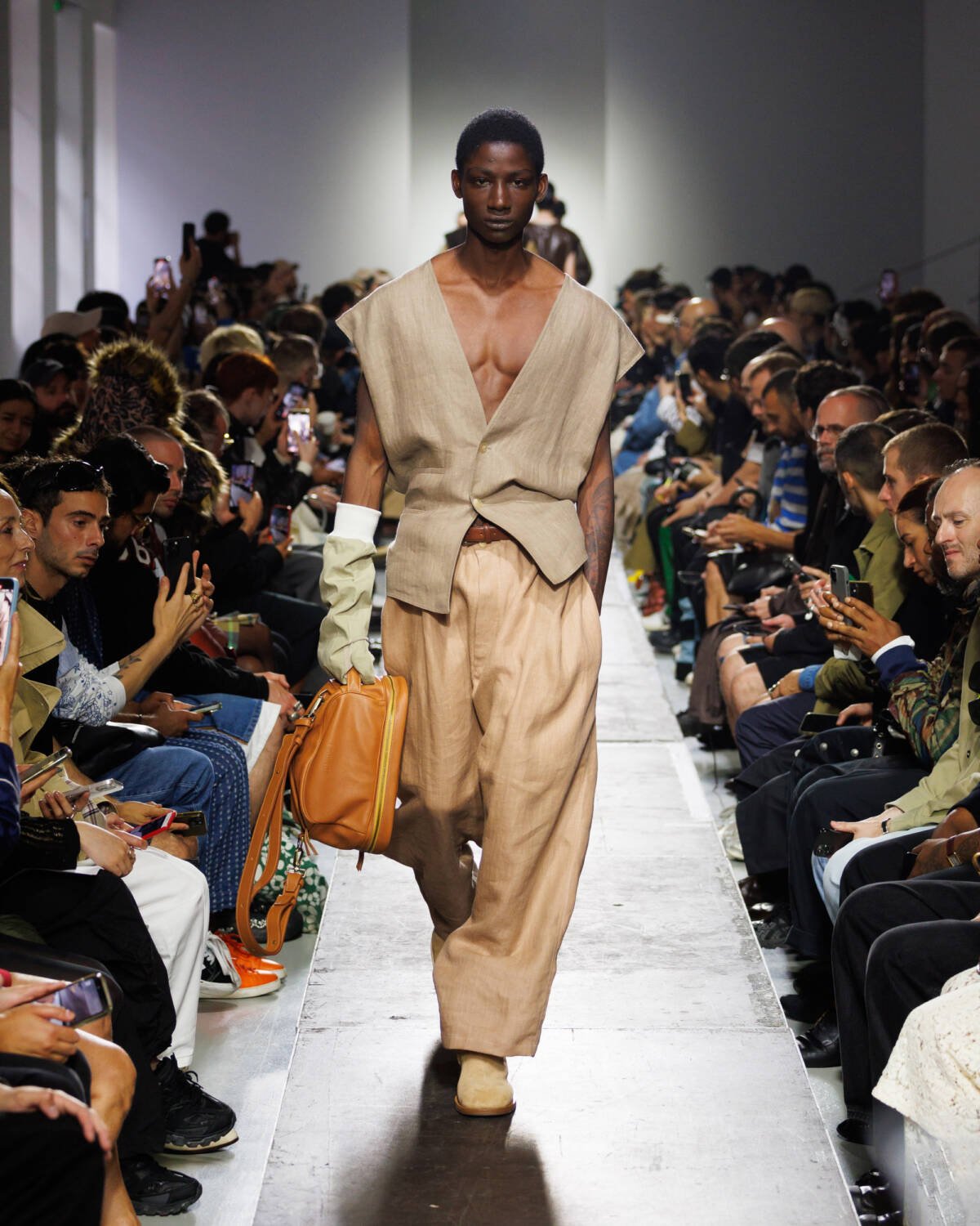 Israeli fashion designer Hed Mayner knows how to please a crowd. Using this SS25 season to reimagine his go-to techniques, he focused on expanding proportions and working with new patterns. Imagining garments as a means of cocooning the body, Mayner sent a series of wide-shouldered jackets and overly baggy trousers down his Parisian runway.