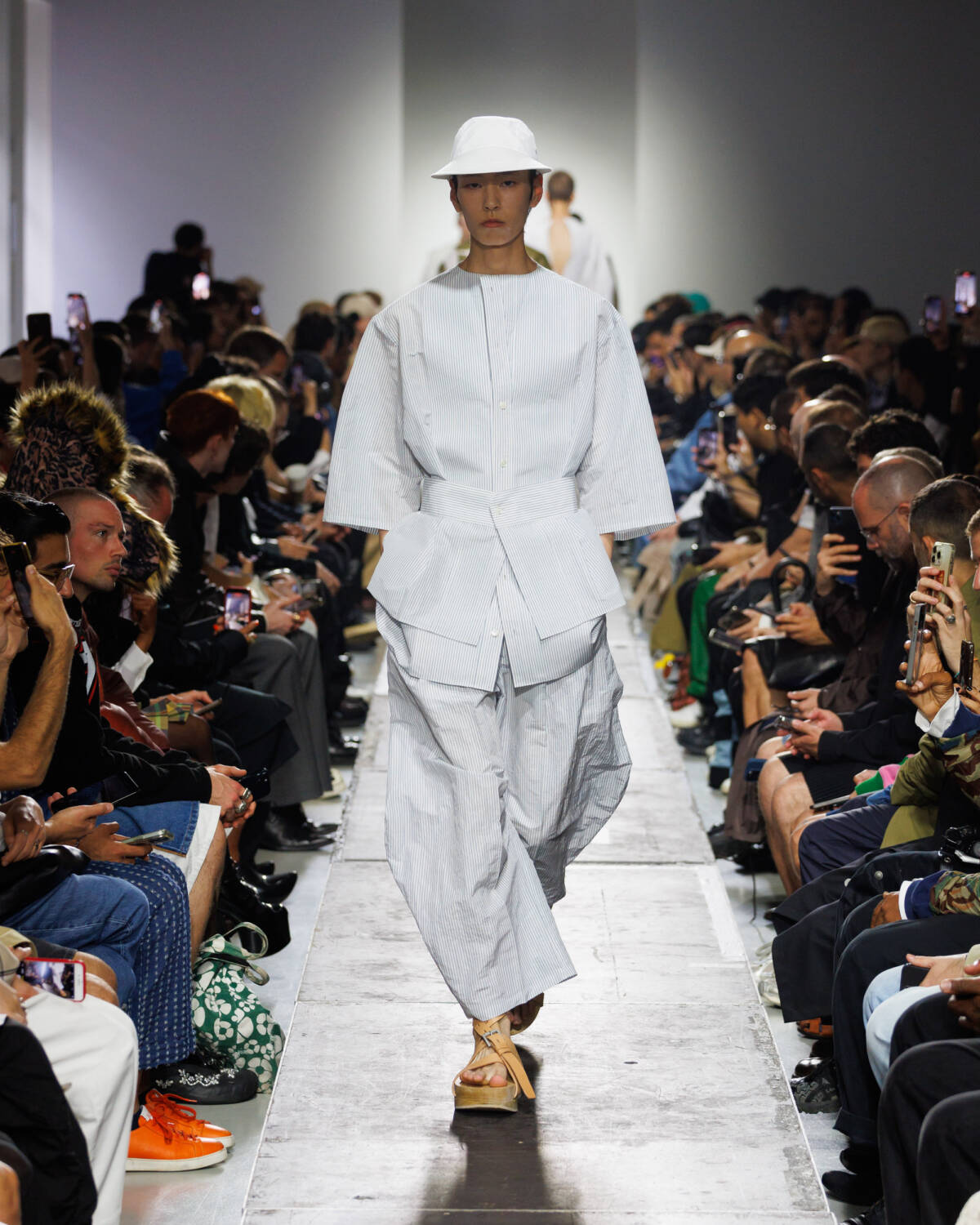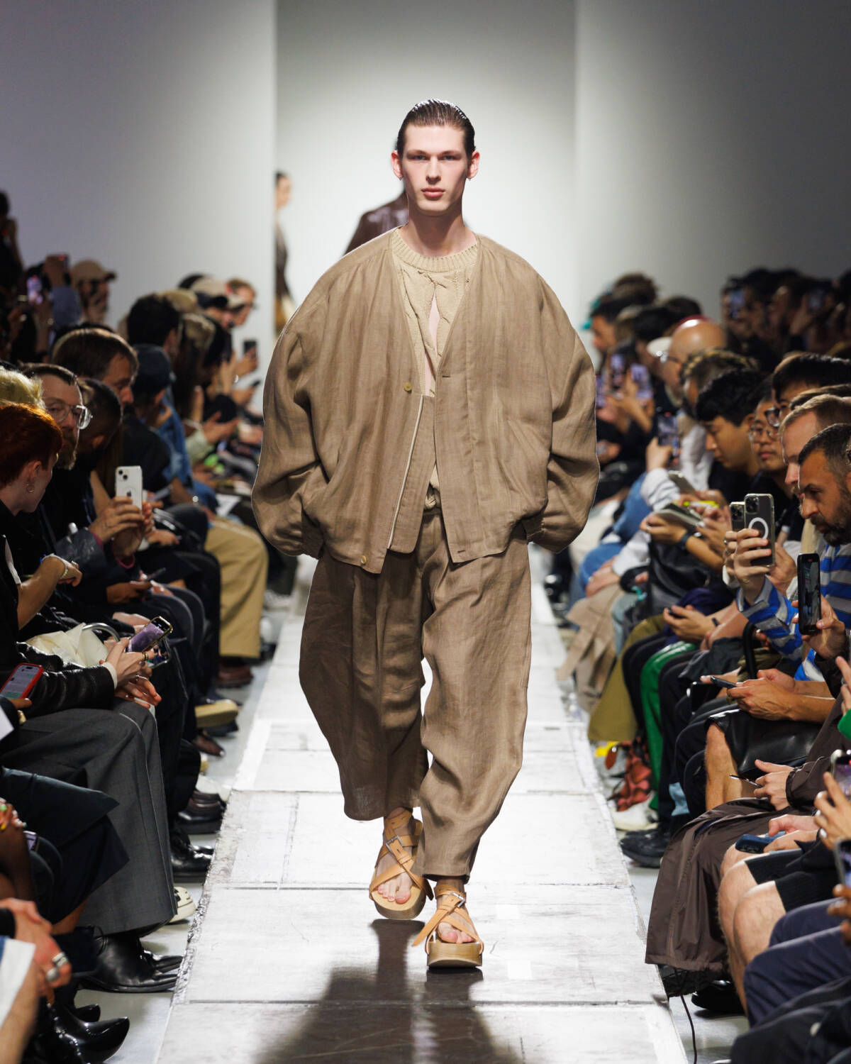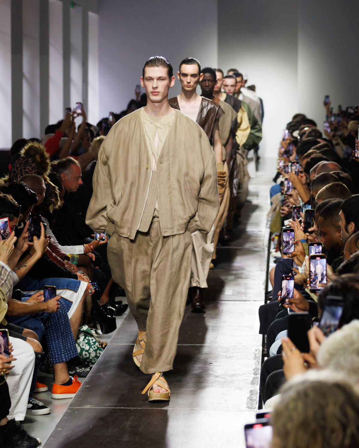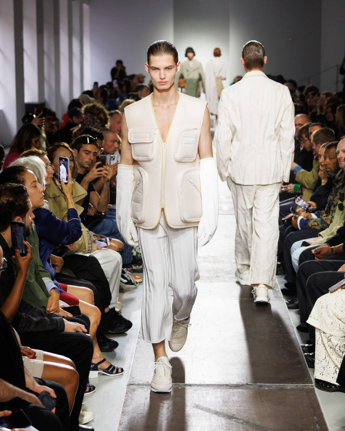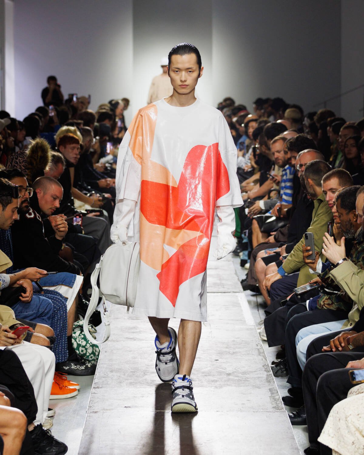 Israeli fashion designer Hed Mayner knows how to please a crowd. Using this SS25 season to reimagine his go-to techniques, he focused on expanding proportions and working with new patterns. Imagining garments as a means of cocooning the body, Mayner sent a series of wide-shouldered jackets and overly baggy trousers down his Parisian runway.