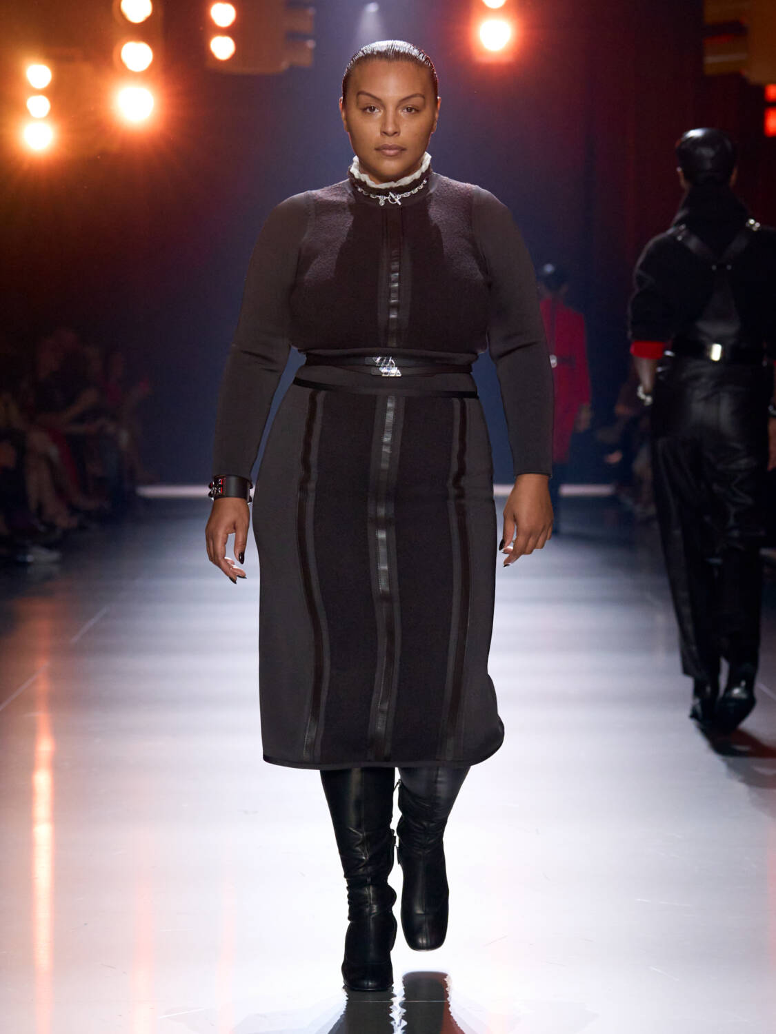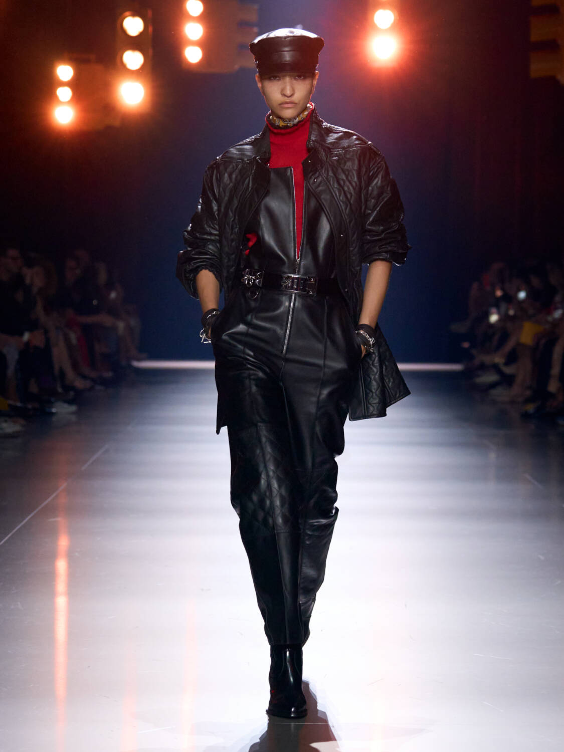 As for the clothes themselves, they were as luxurious as one would expect from Hermès. Leather, always a staple, found its way into body hugging trousers and relaxed jumpsuits — expect these to be popular among their VIP show attendees. Outerwear was the strongest, with shearling options that ranged from car coats to short cropped styles in bright blue and more sedate rust brown. To provide a lightness to the collection, delicate rosette turtlenecks were scattered throughout, peeking out of heavier layers. Vanhée’s woman lives a rich life whether it’s dressed chicly for the office or slickly for her weekend pursuits. And speaking of multi-faceted women, it’s worth noting the appearance of size diverse looks, with the likes of Paloma Elsesser and Jill Kortleve included among the cast.