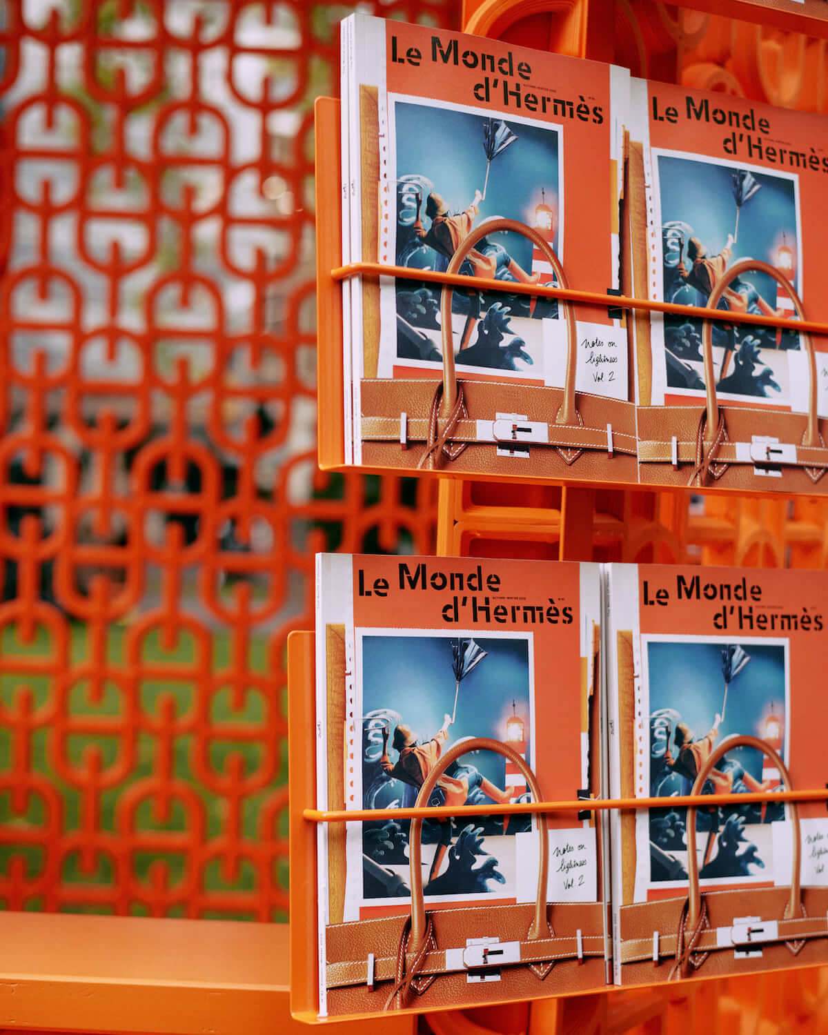 Hermès is celebrating the latest issue of its Le Monde d’Hermès magazine by opening its own kiosk in the middle of Soho Square. Painted fittingly in Hermès orange and 3D-printed using recycled plastic waste, the general public are invited to the kiosk to grab a free copy of the publication and explore “creativity, curiosity and diversity of the world of Hermès,” through its pages.