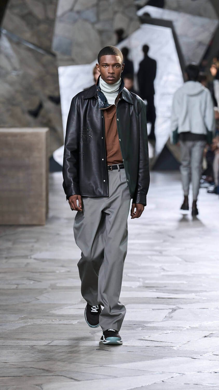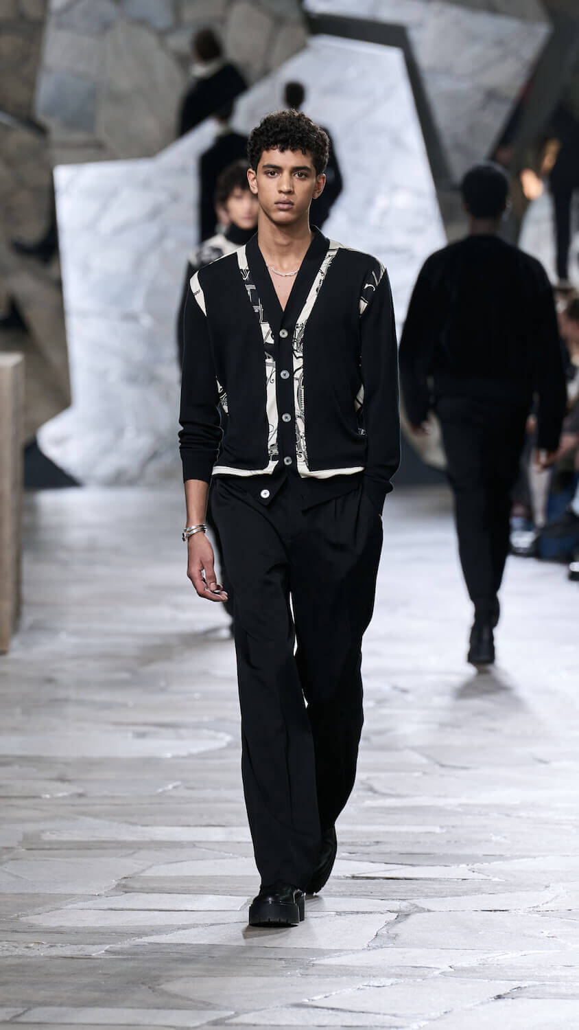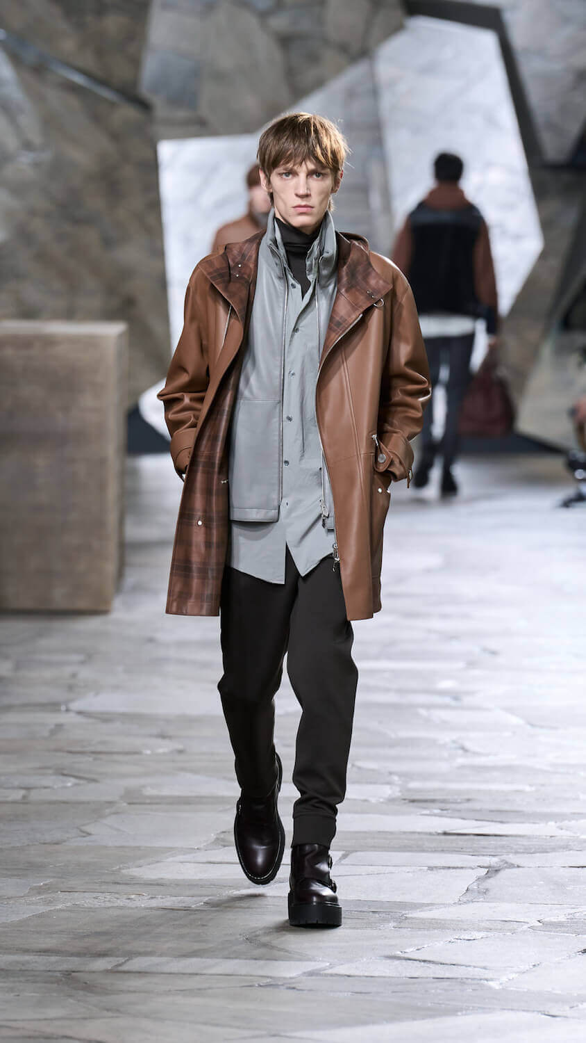 Veronique Nichanian is a designer who thrives on gentle juxtapositions. At Hermès, where she has designed menswear for 33 years, she quietly finds ways to update men’s classics with a self-assured elegance that makes her a master of her craft (at a house renowned for its masterful craft). There’s a steadiness in her approach to creating clothes perfectly fit for purpose yet that feel extraordinary in their luxurious cashmere, satin, shearling and leather constructions.