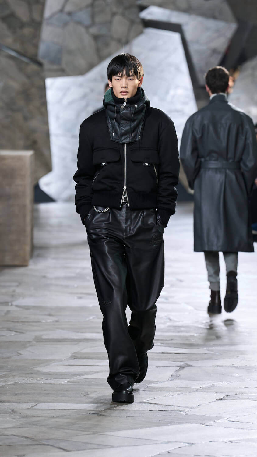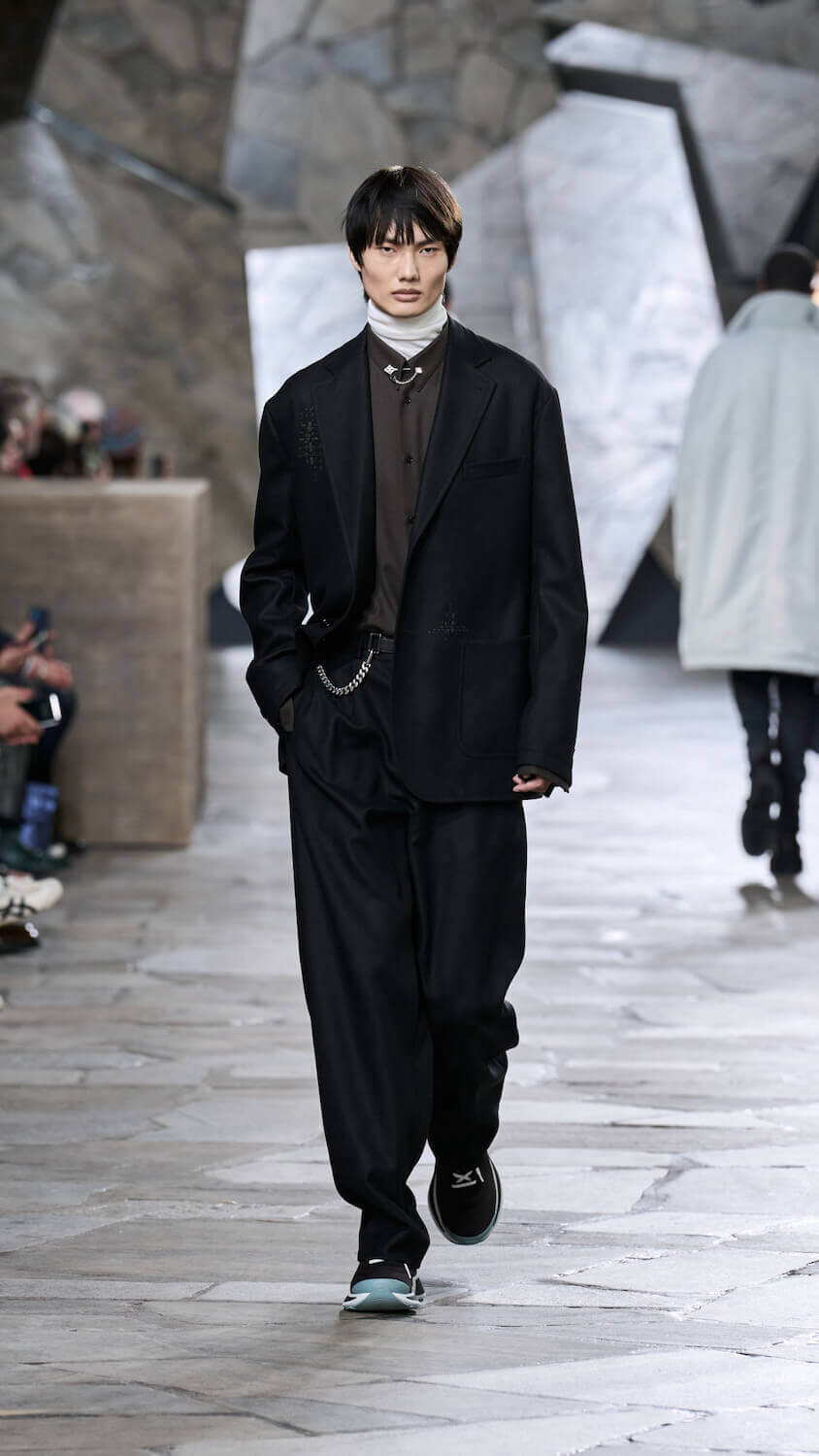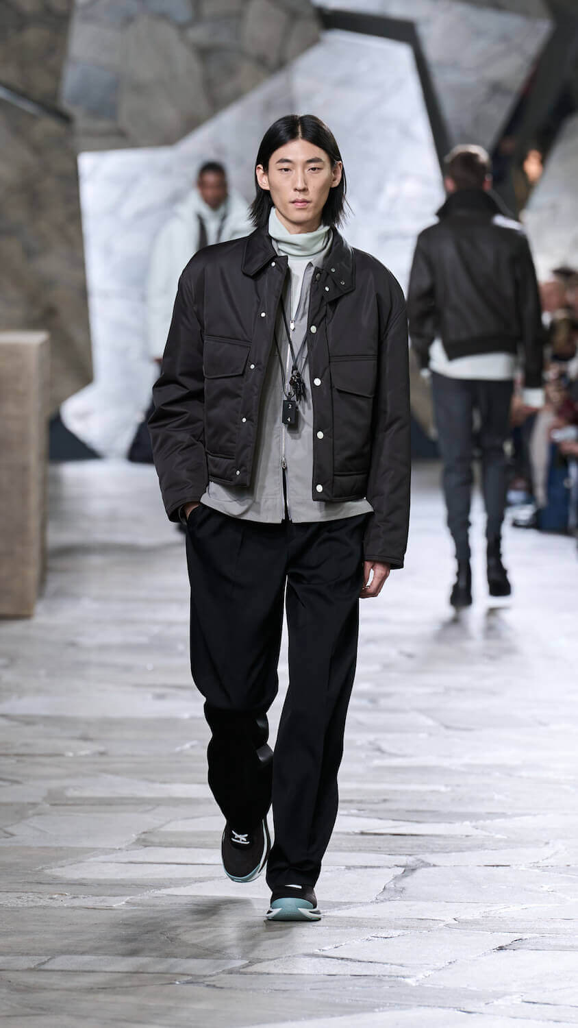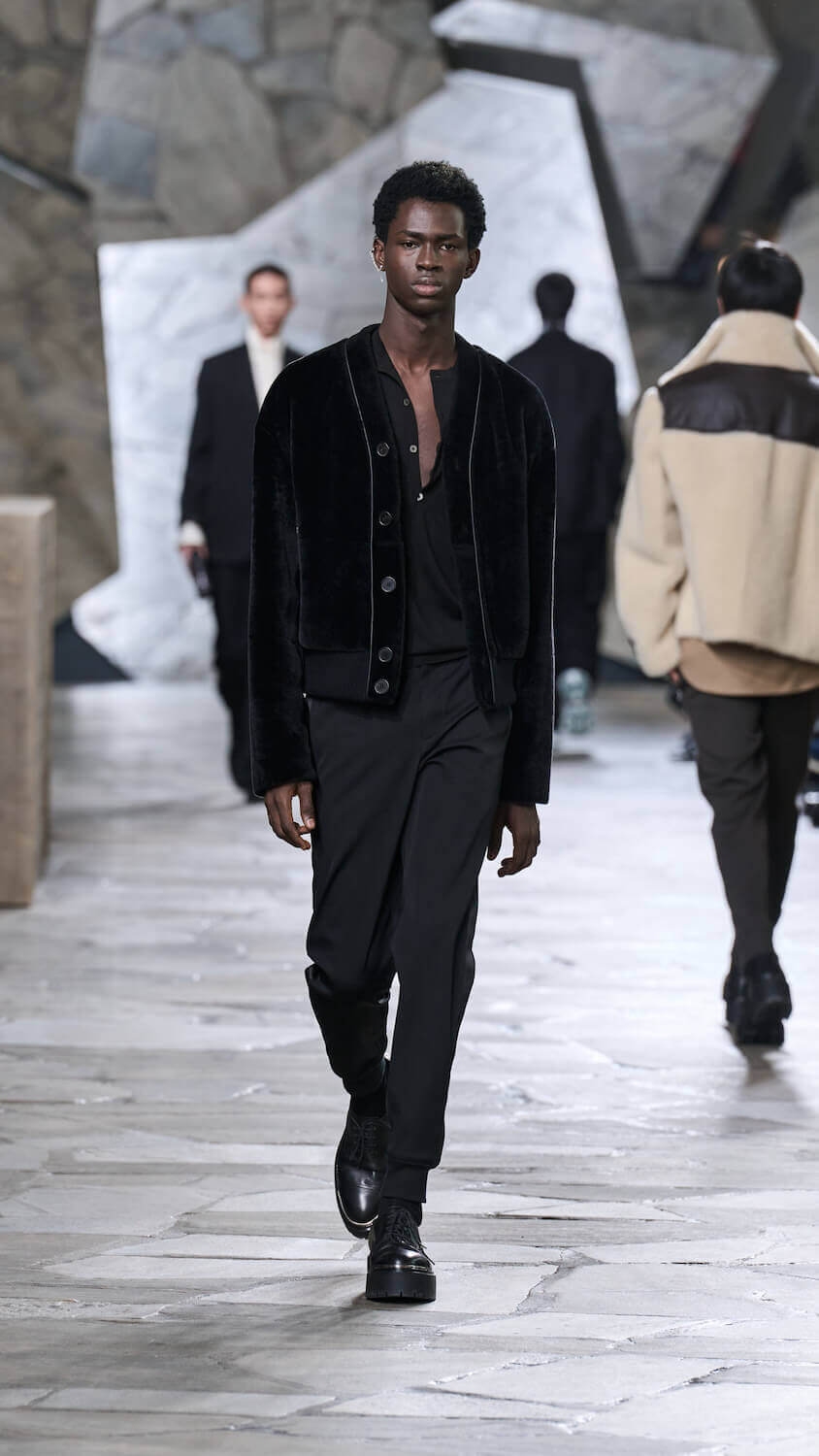 Veronique Nichanian is a designer who thrives on gentle juxtapositions. At Hermès, where she has designed menswear for 33 years, she quietly finds ways to update men’s classics with a self-assured elegance that makes her a master of her craft (at a house renowned for its masterful craft). There’s a steadiness in her approach to creating clothes perfectly fit for purpose yet that feel extraordinary in their luxurious cashmere, satin, shearling and leather constructions.