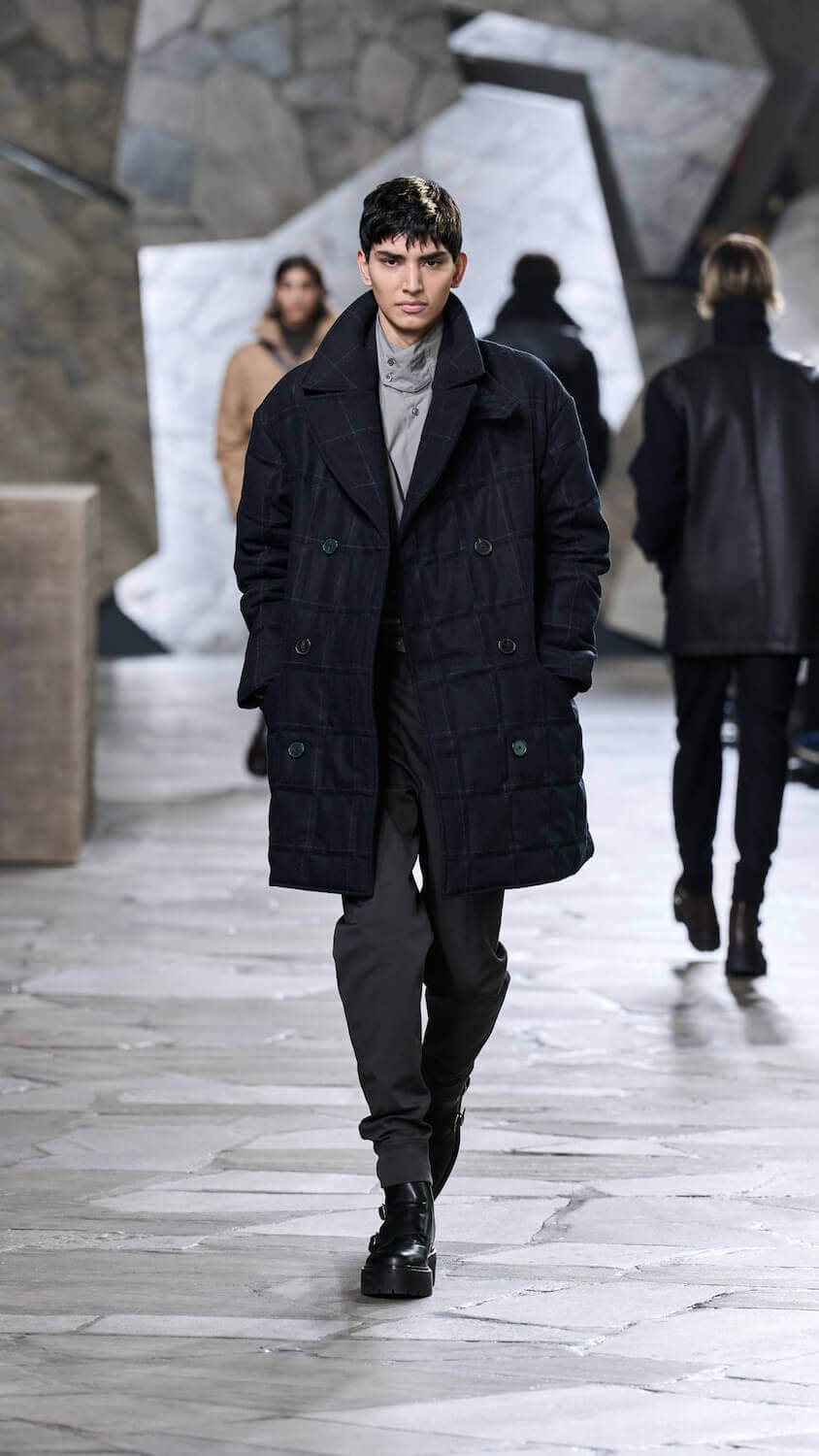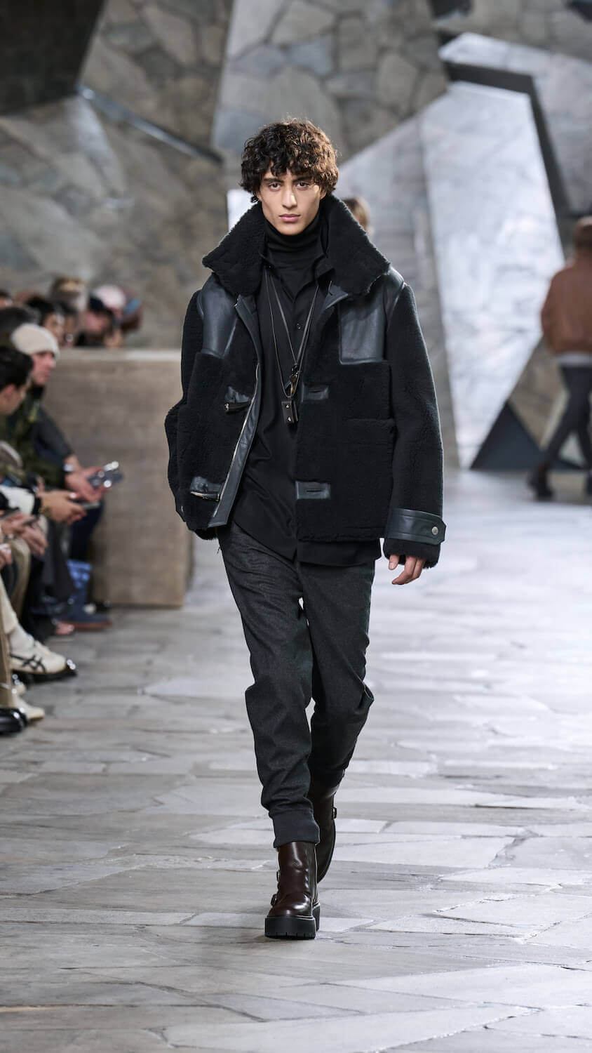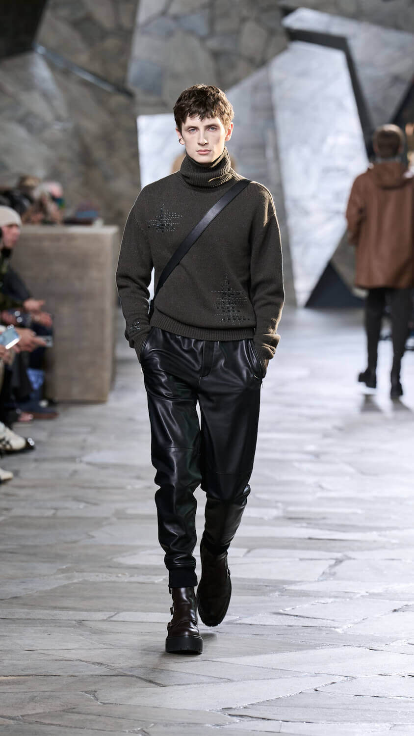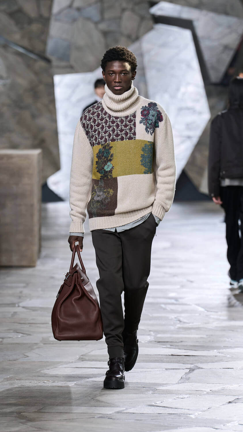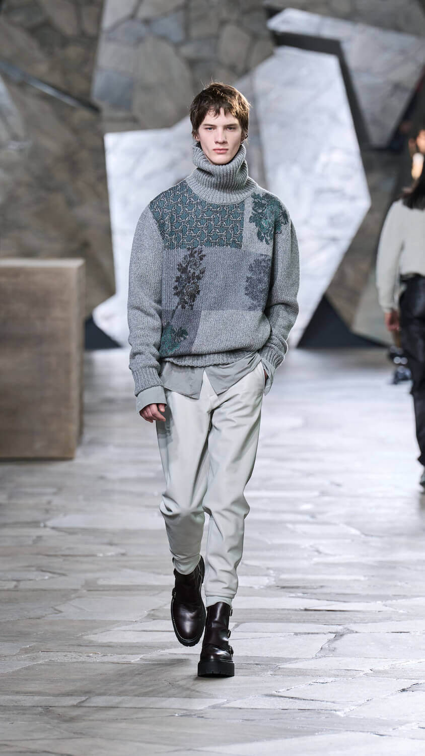 In a palette described as “gravier, aquarium and fog”, Nichanian proposed ways in which the essential components of our wardrobes can be zhuzhed up but done through a whisper, not a shout. Whether that translates to fuzzy duffle coats, buttery blousons, cleverly stitched Irish cable knits, or donkey jackets accented with leather patches, each season she skips the faff and lets her clothing speak for itself. When you’re as talented as someone like Nichanian, gimmicks are redundant.