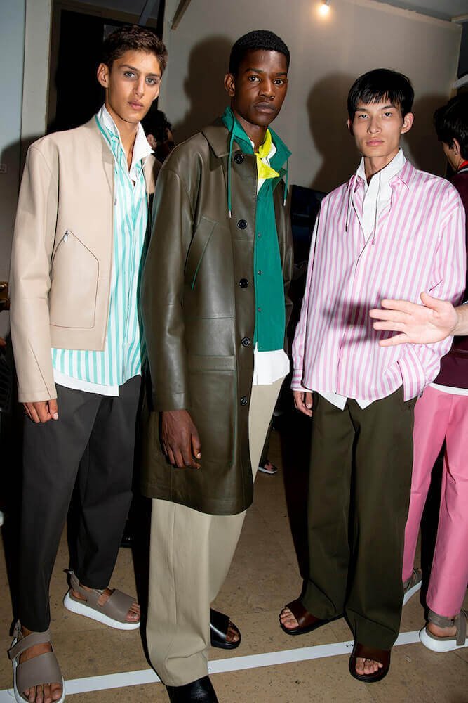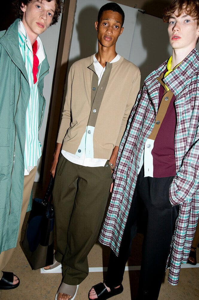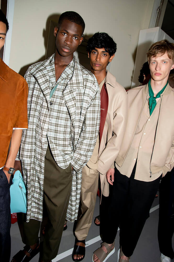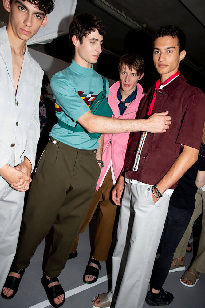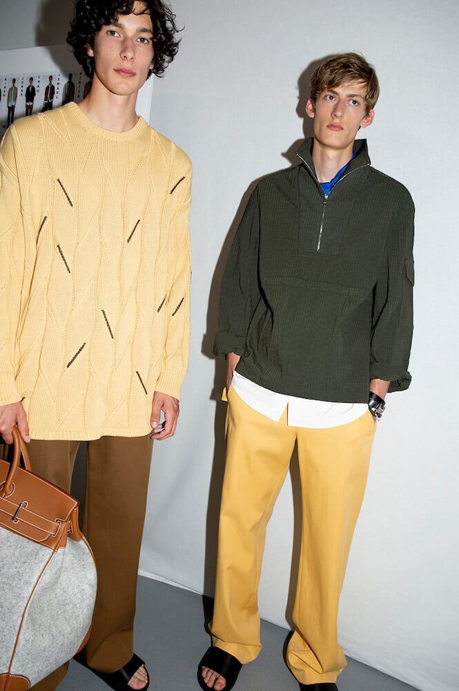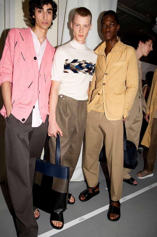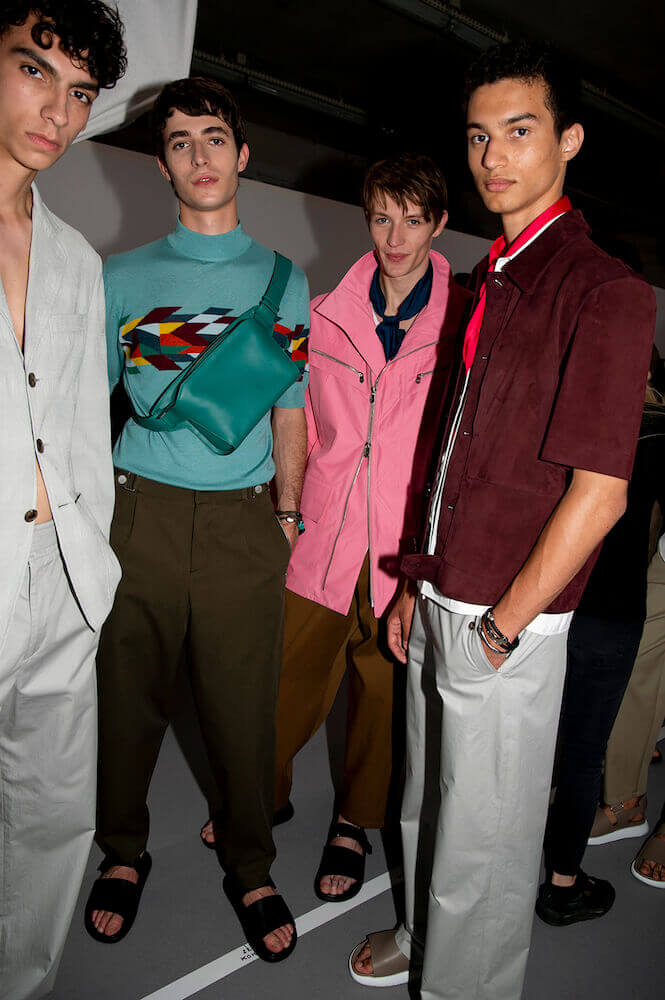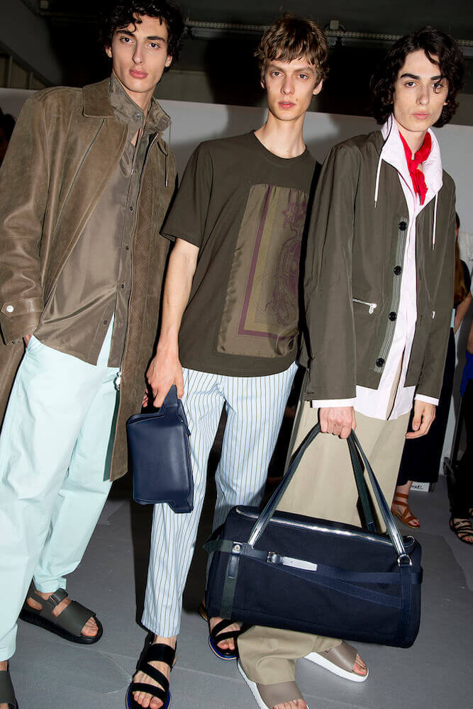 Pink and camel; mint and mink; light pink and mushroom; light pink and yellow: it take a practised hand to mix colours like this. Hermès creative director for men’s Véronique Nichanian has spent over 30 years at the storied French house. Her unmatched skill lies in her ability to reinvent the house codes of luxury, quality and travel. For spring the above and beautiful colour combinations in the finest leather and suedes: but next spring comes with an ease. Nichanian knows her customers, she knows they travel. She knows they require a wardrobe that works as hard as they do. This means lightweight blousons and fine-gauge knits. It means Hermès scarf print shirts in silk. It means wider chinos with any of those last-forever Hermès sandals. And it means bags.