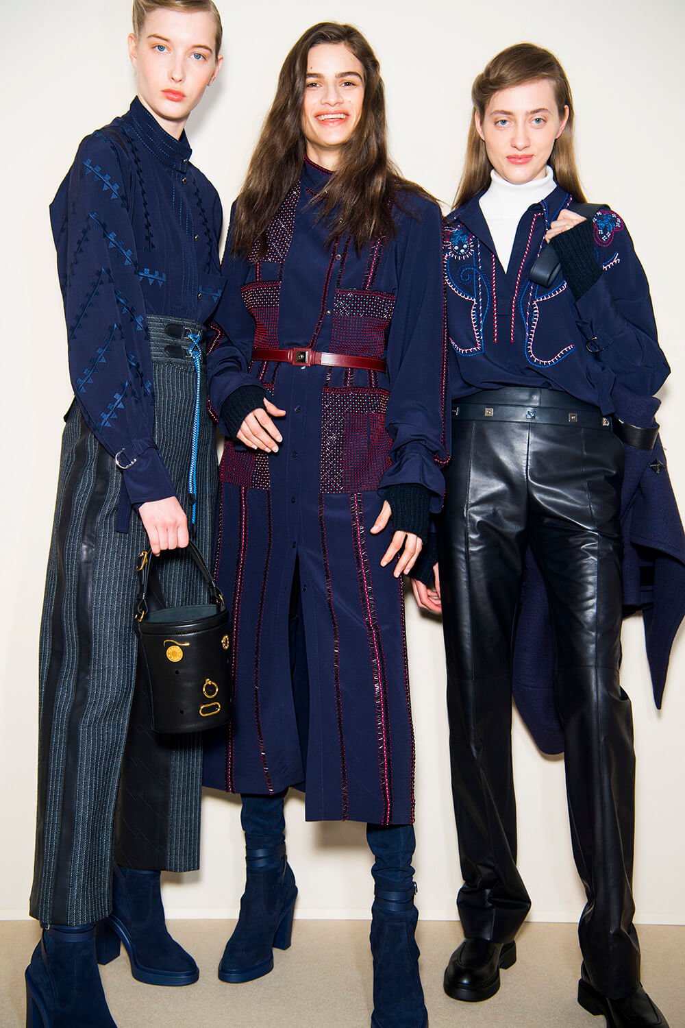 What’s not to love about an enormous cashmere and leather blanket bag slung over the shoulder. We would like to cocoon inside this… and quite rightly we were contemplating cocooning as this Hermès Autumn/ Winter 18 collection was quite womb like (we remember obvs) red light, red trees bathed in red light outside, soft red catwalk, a kind of birthing. And so the new ideas were a quilted leather kagoule in acid yellow, a purring soft jersey all in one; and a major medley of horsey blanket coats, trenches, bomber jackets. This was really all about ‘54 women entering a garden at twilight, a gang of girls’ according to the press notes.