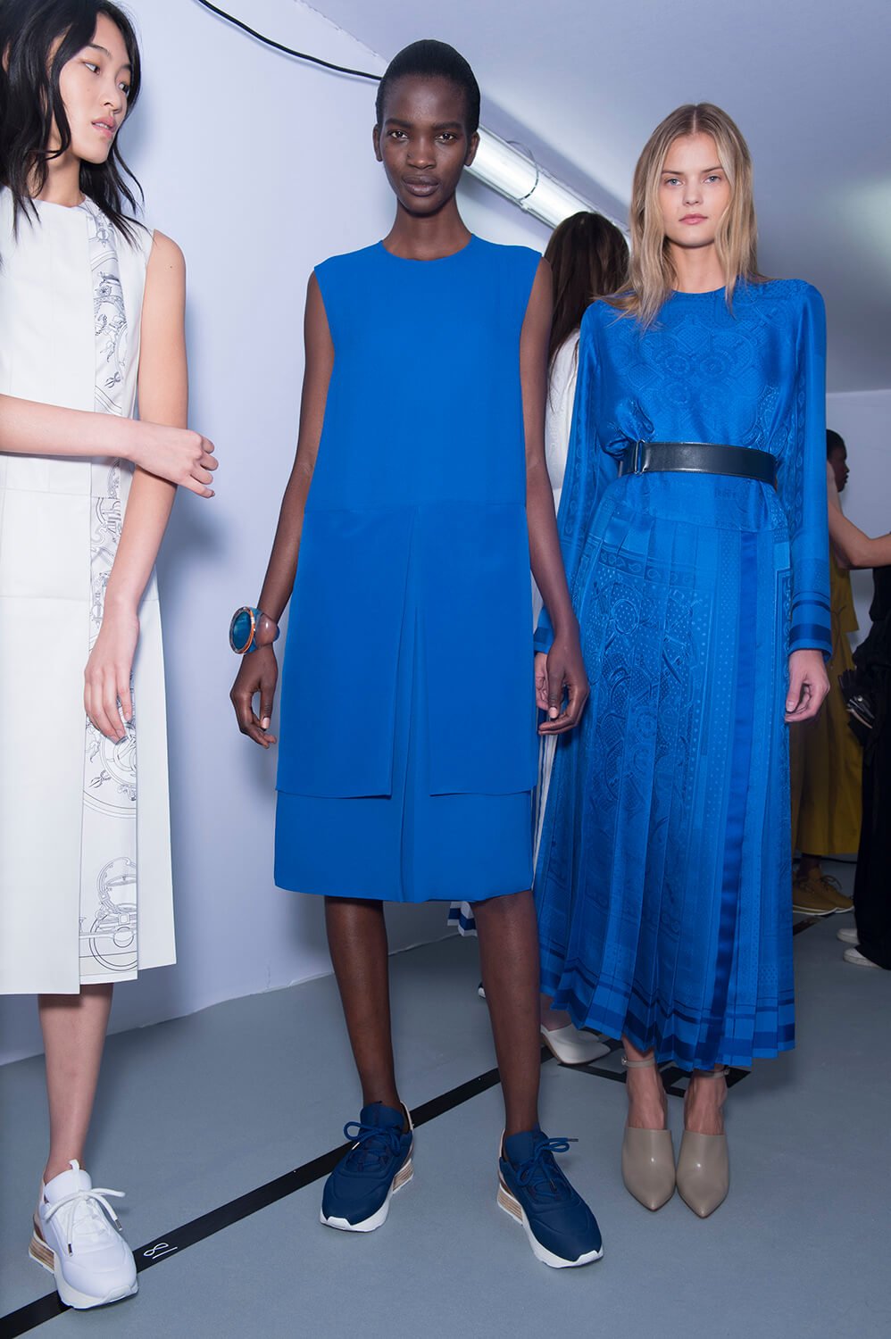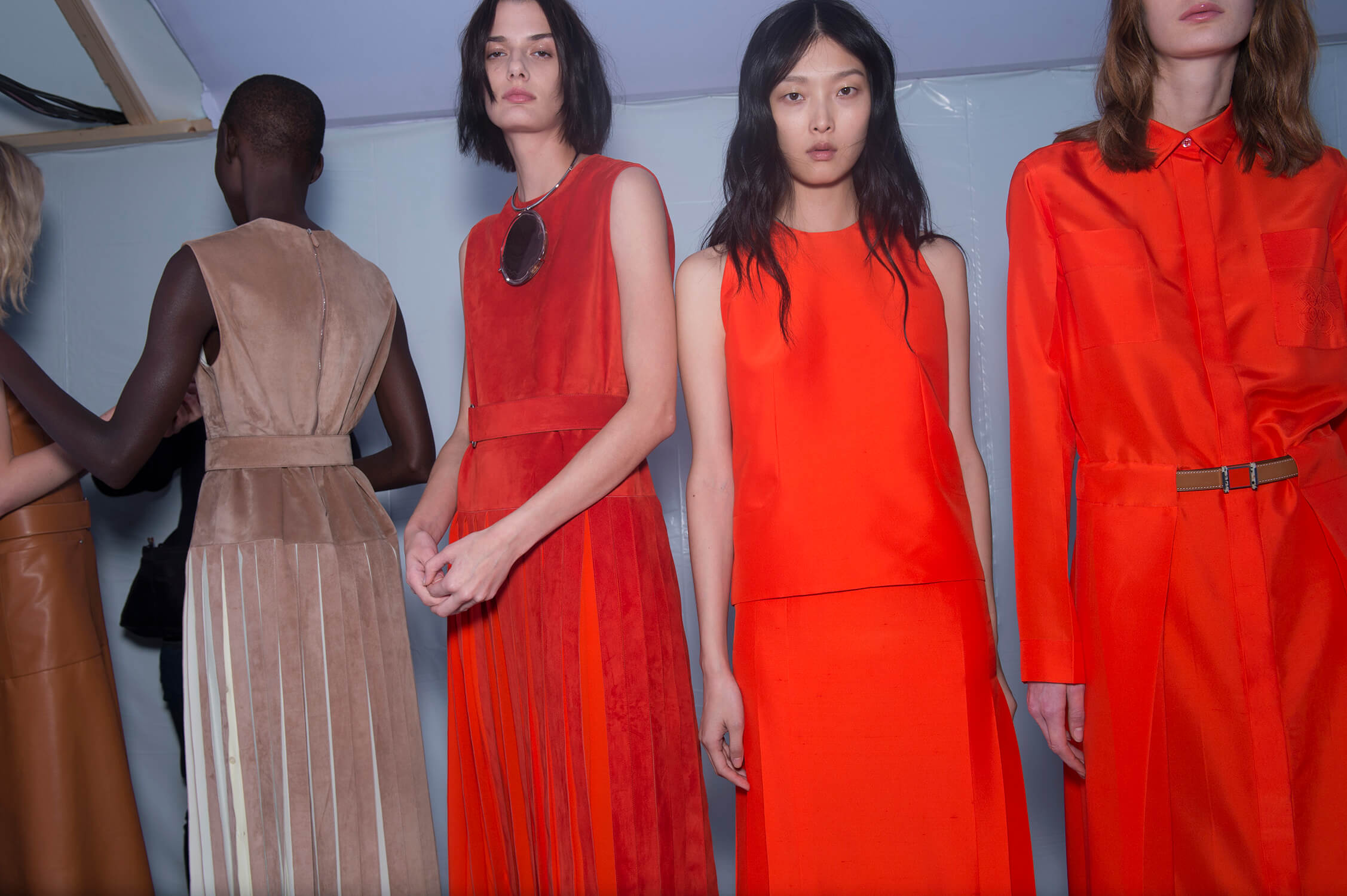 I can’t put my finger on it but looking at the Hermèss show reminded me of a cult. Or Amish women. Or a cult of Amish women. Now I know these Hermès cult of Amish women are not traditional – they wear trainers, patterned clothing and they wear dresses above the knee. But they’re Amish and Parisian so who are we to question them? And there were clothes for all sorts of Amish lady jobs. Clothes for ploughing and sowing seeds. But also skintight leather looks to pop down to to Chez Castel down on Rue Princesse after a hard day working in the fields. Who said Amish girls don’t know how to have fun?
