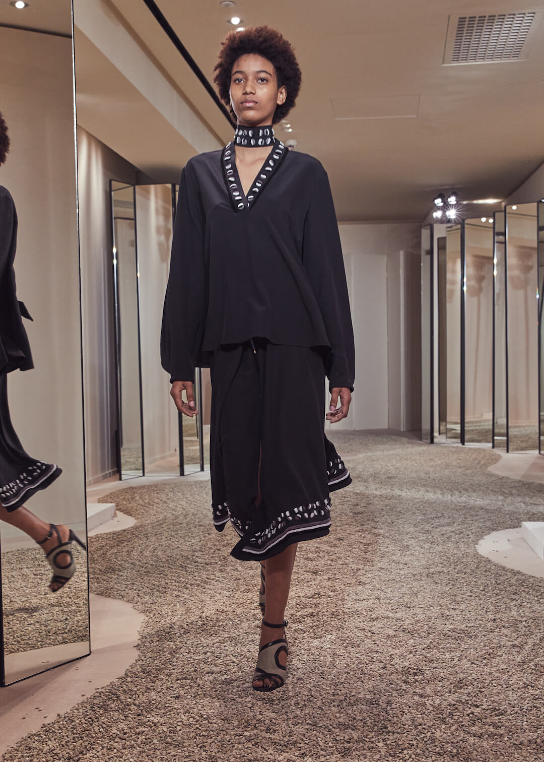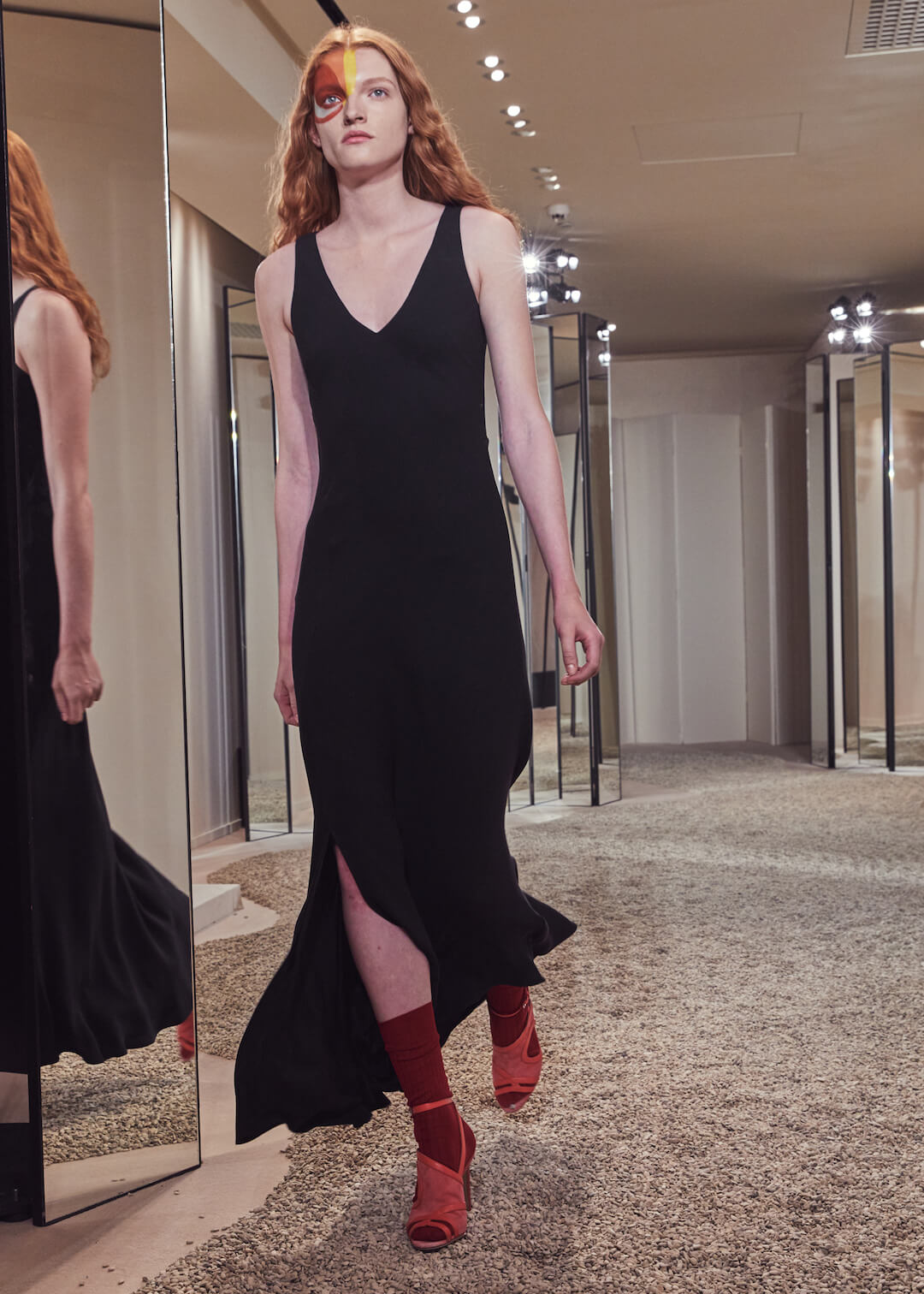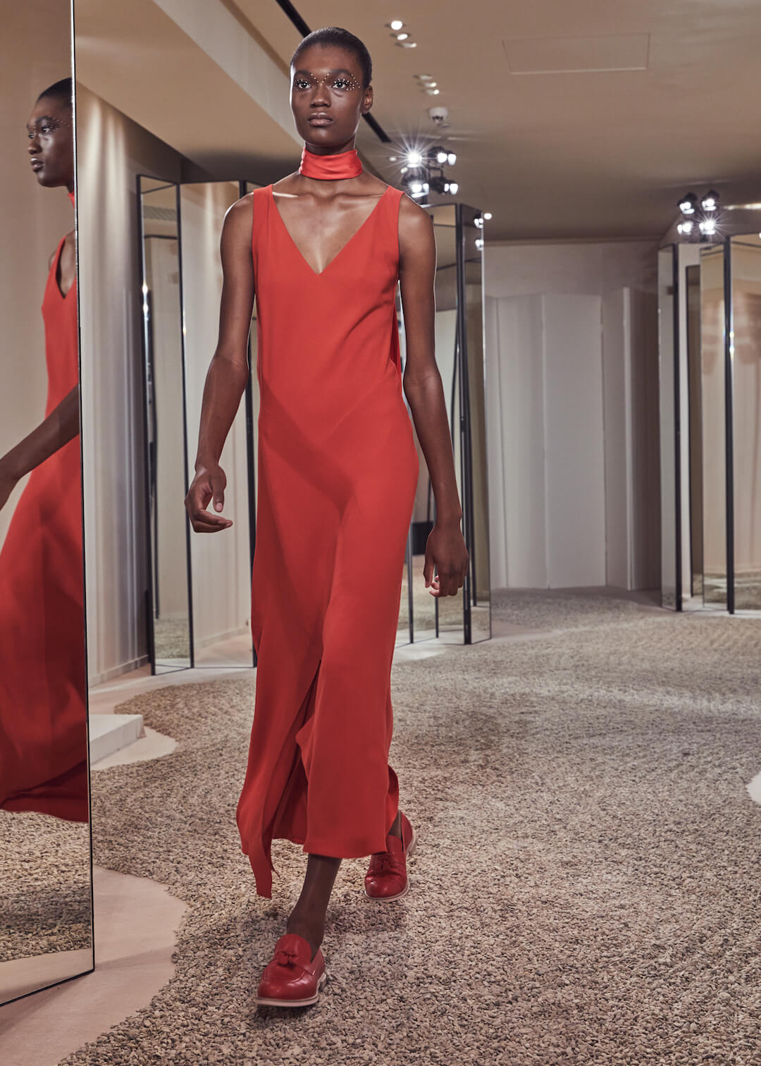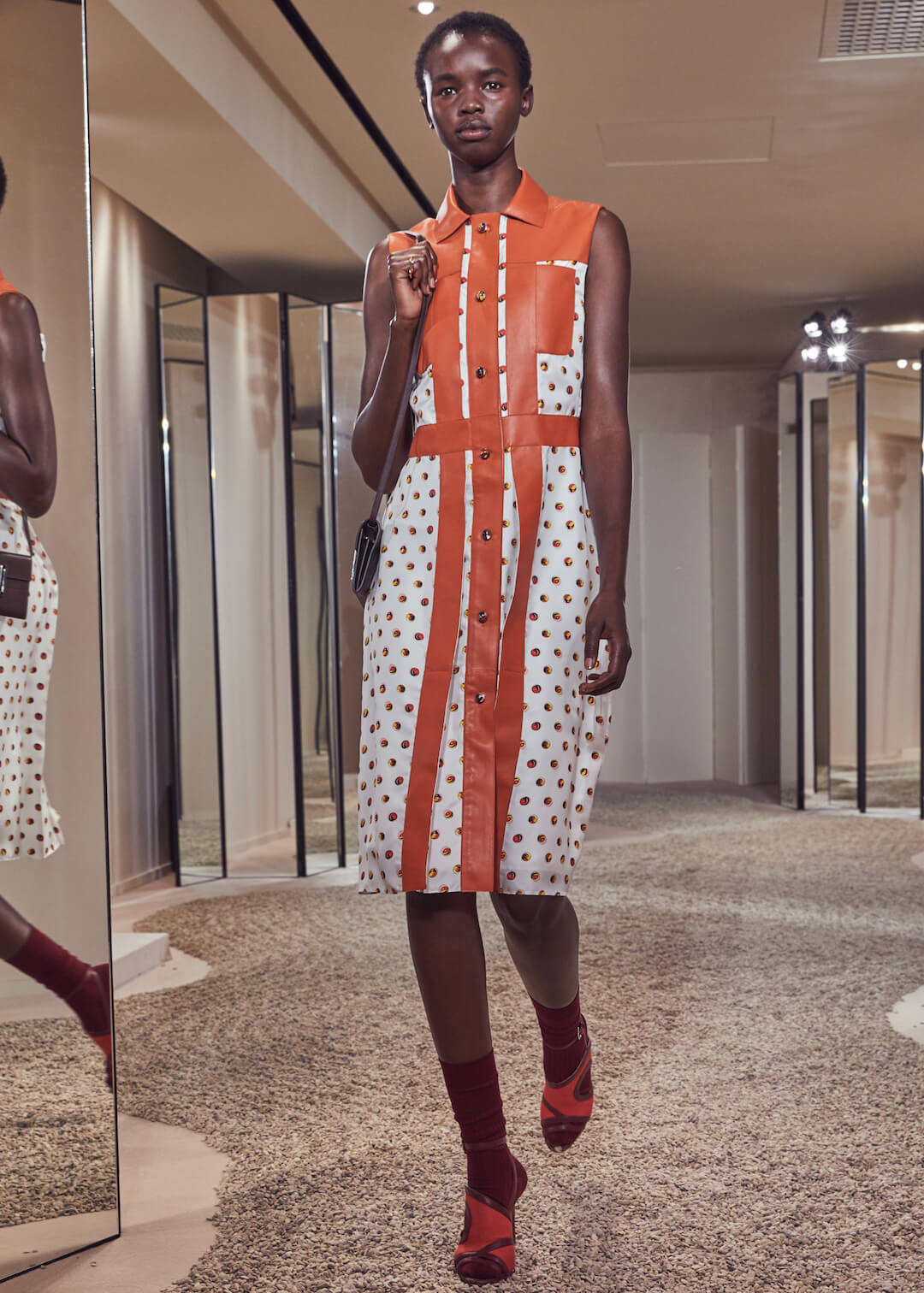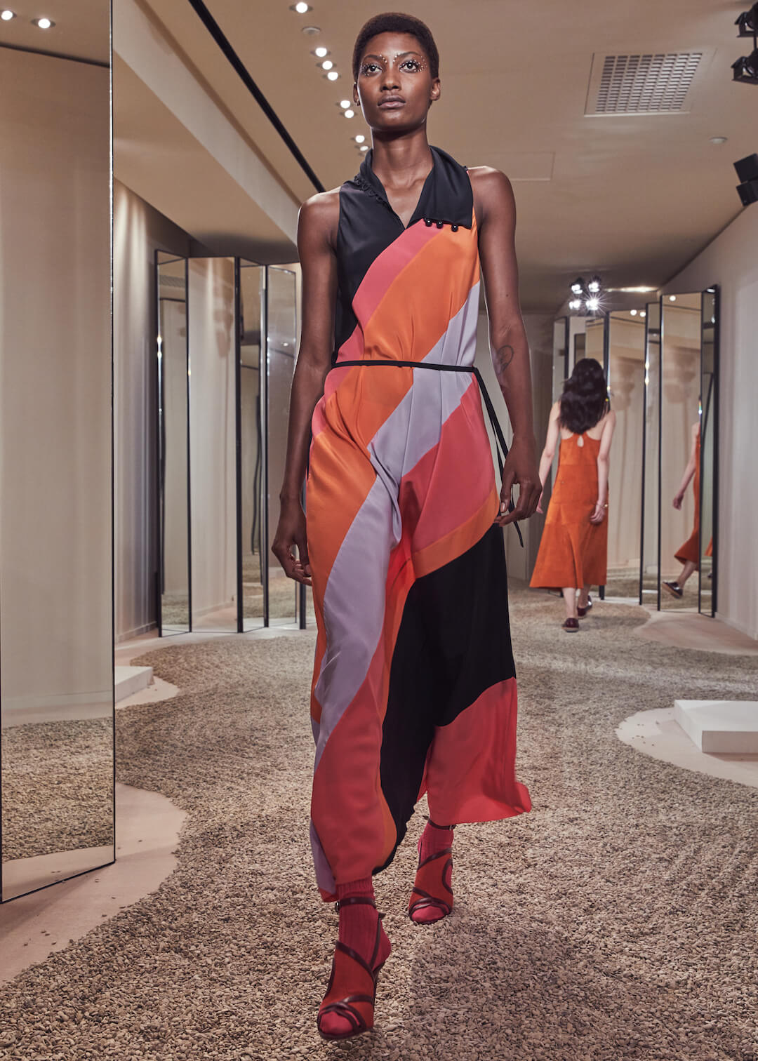 Hermés, can we count the ways that we love you? No, apparently, we have a word limit. And we’ve been told off for rambling. But it’s a lot. Can’t help but feel I am an Hermès woman born into a non-Hermès (poor) woman’s body. Today’s pre-collection took place in their store, which seems right – Hermès is about things to buy. There are ideas here – don’t get us wrong – the slinky, summery take on their silk scarf dress, scarves that also twisted round the girl’s waists, fresh touches of sportswear – top stitching and toggle fastenings – or those luminous Seventies swimsuits that fastened around the neck with rope. Garth was particularly fond of them. Said it was a moment. That all felt new.