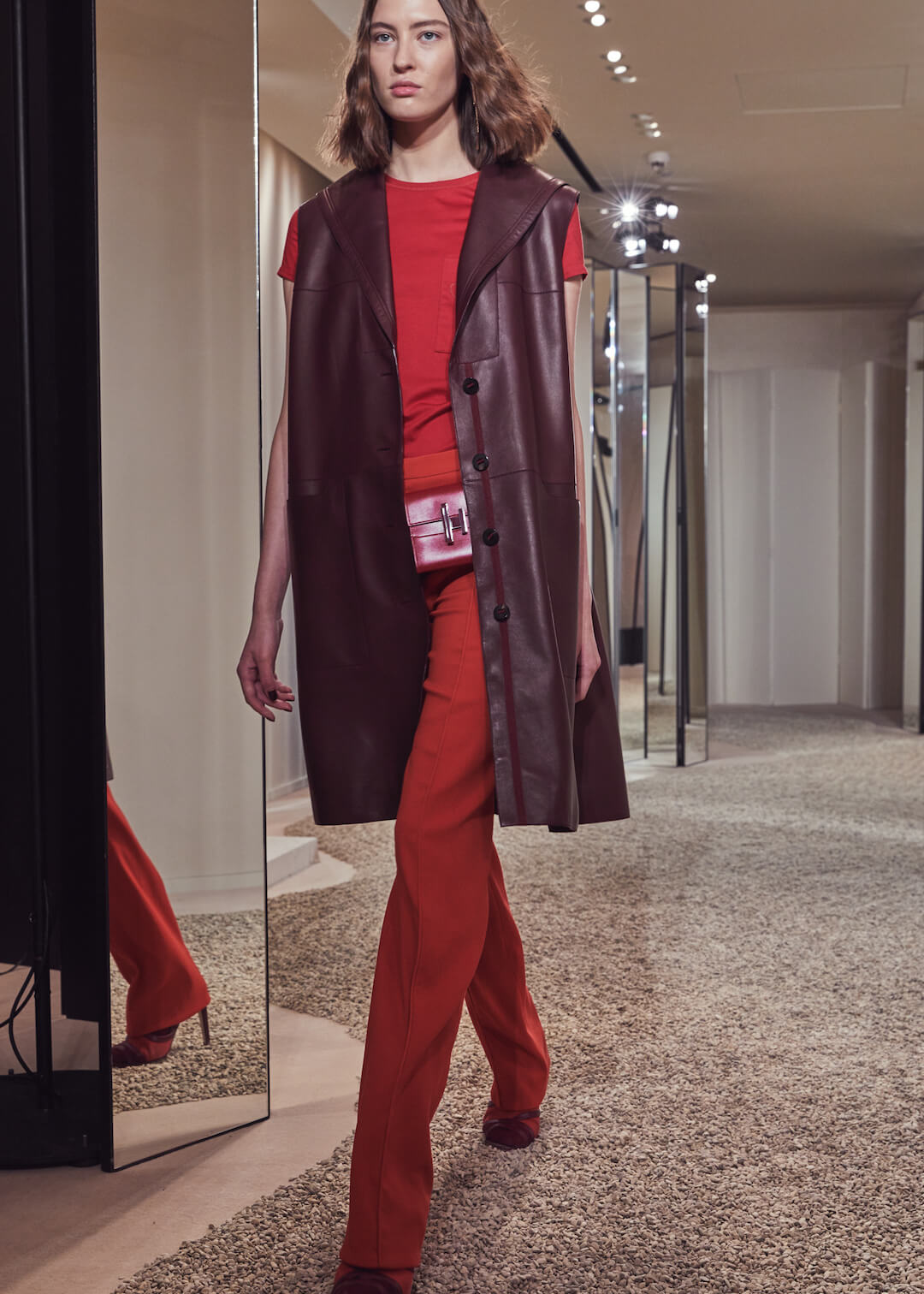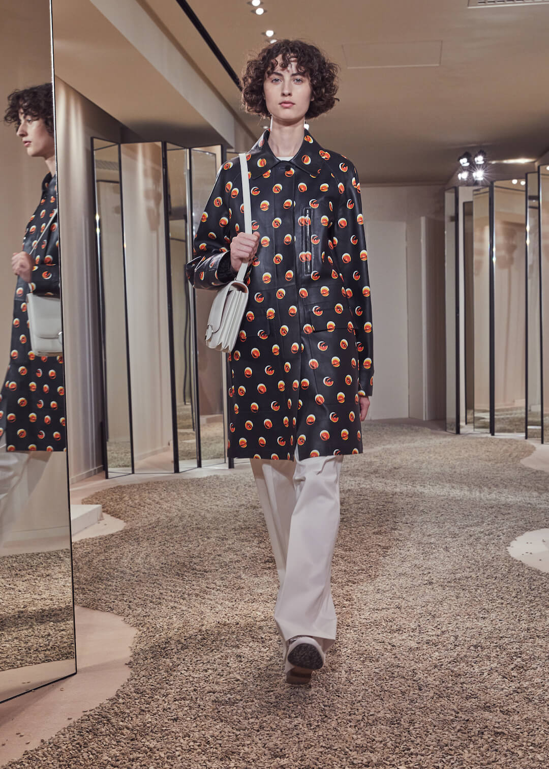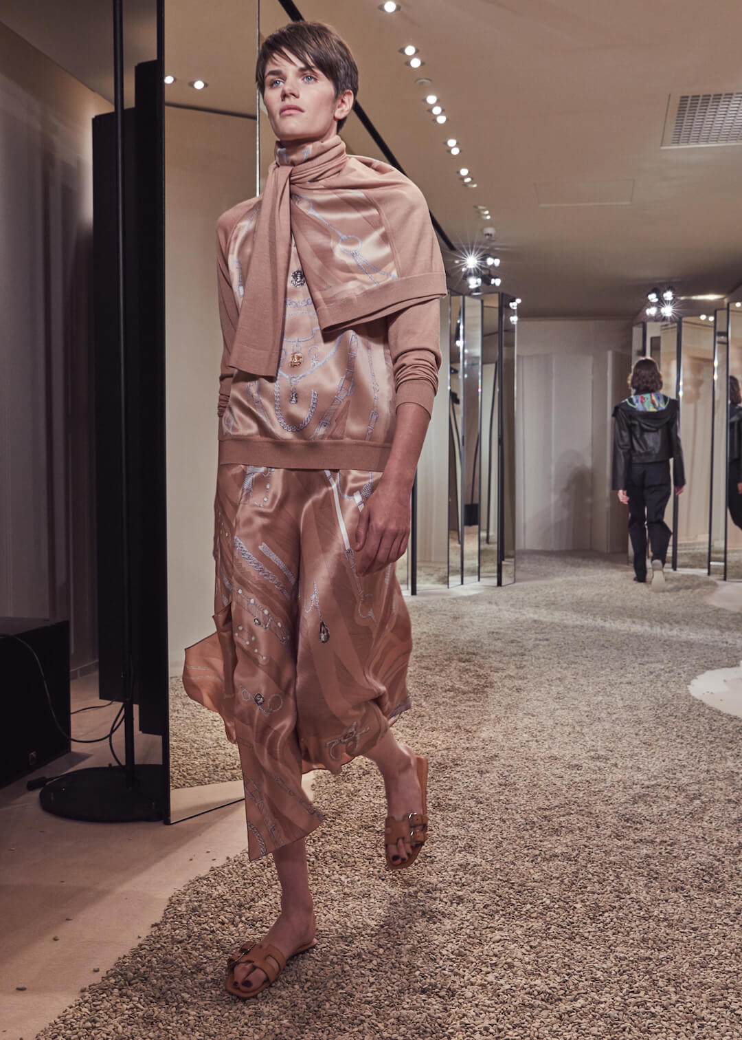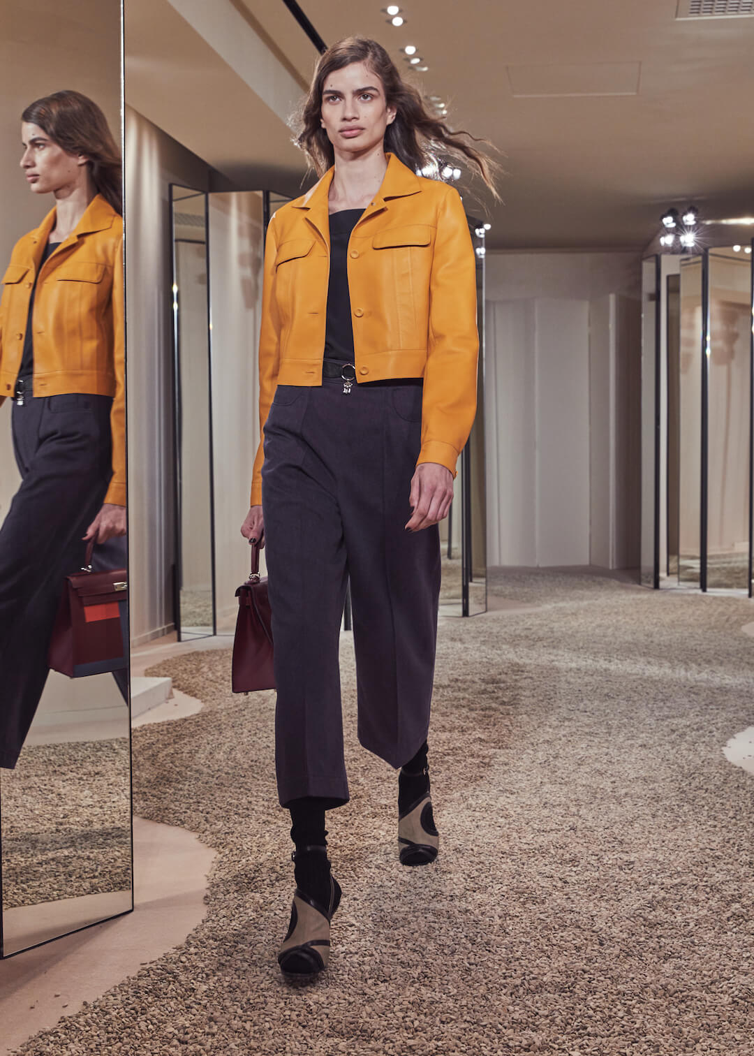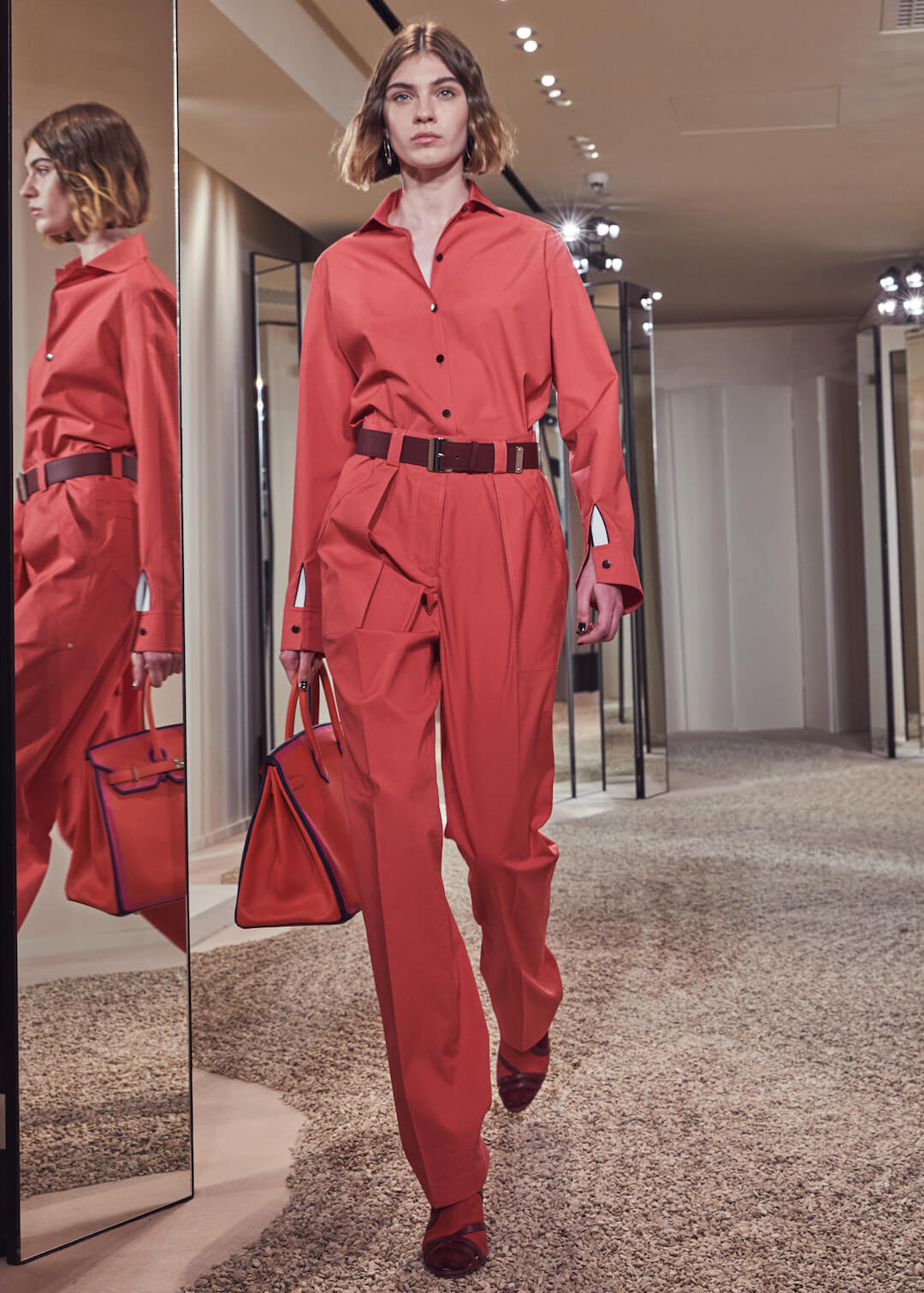 But what Nadège Vanhee-Cybulski is so adept at as Artistic Director (the first woman in the role) is taking the things that Hermès is known for – incredible leather, for one, those silk scarves, accessories – and refiguring the clothing that isn’t far from everyday life into something wholly, eye-wateringly luxurious. And it’s that mix that gives her womenswear an ease that is so appealing – to the casual viewer and the customer alike. The woman next to me was one of those – she’d flown in from Germany especially – circling away furiously at the looks she wanted to buy. And what better measure of a luxury house’s success than that? The will to buy buy buy? Nadège may not present clothes with fanfare – but she’s on to a very good thing.