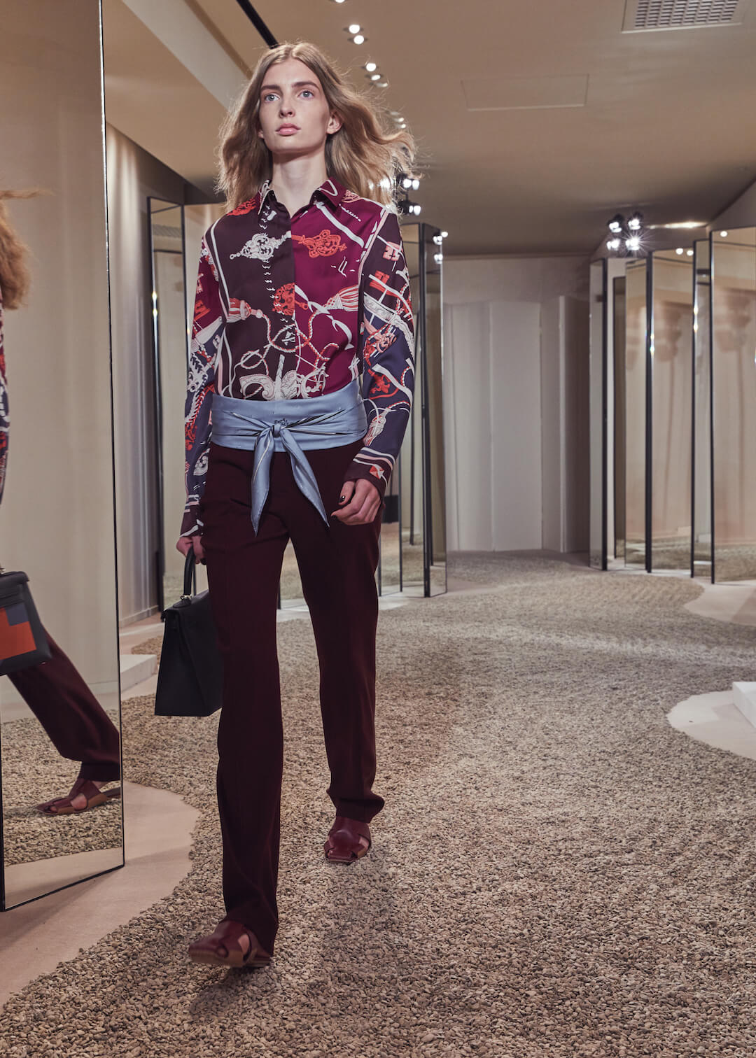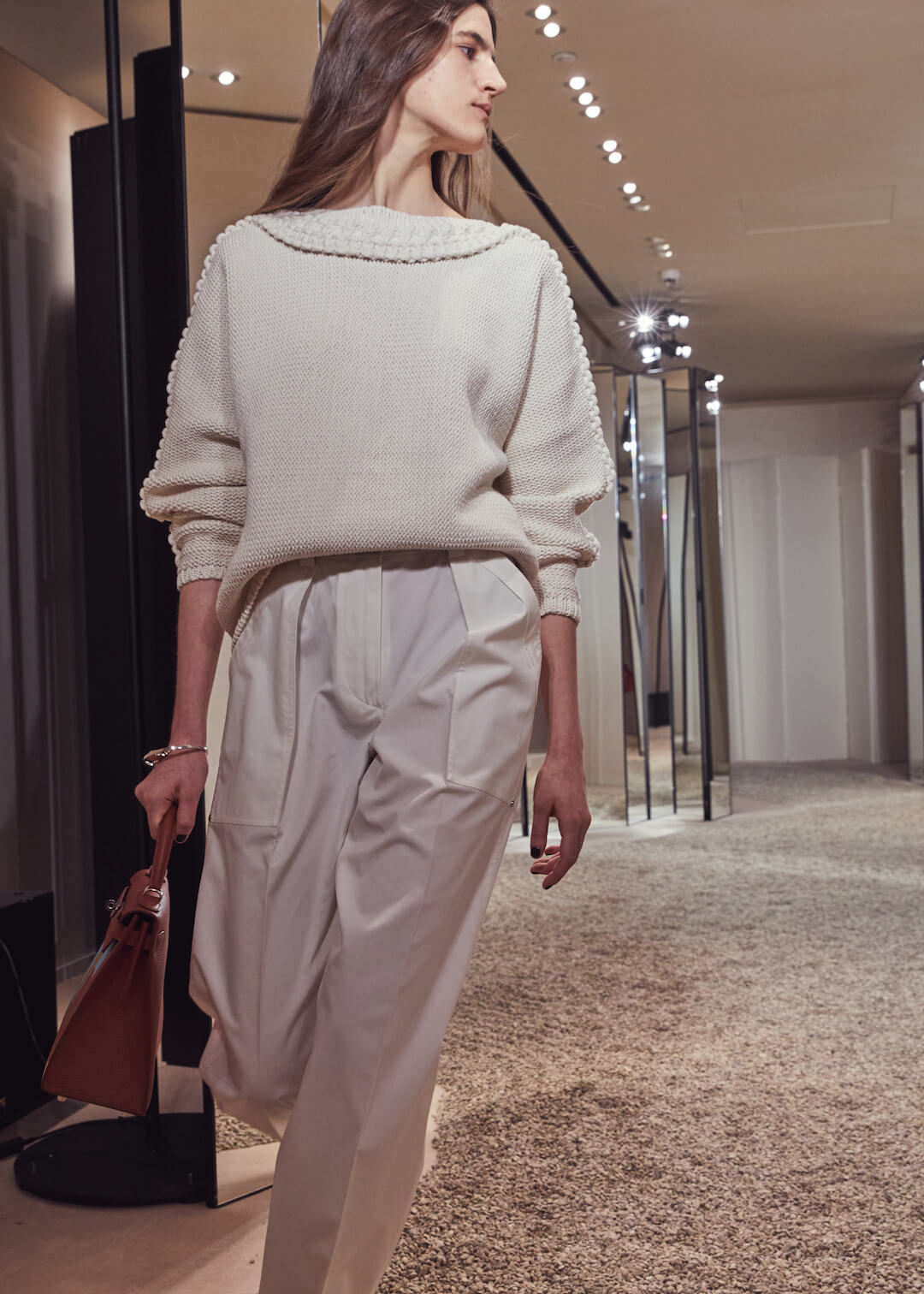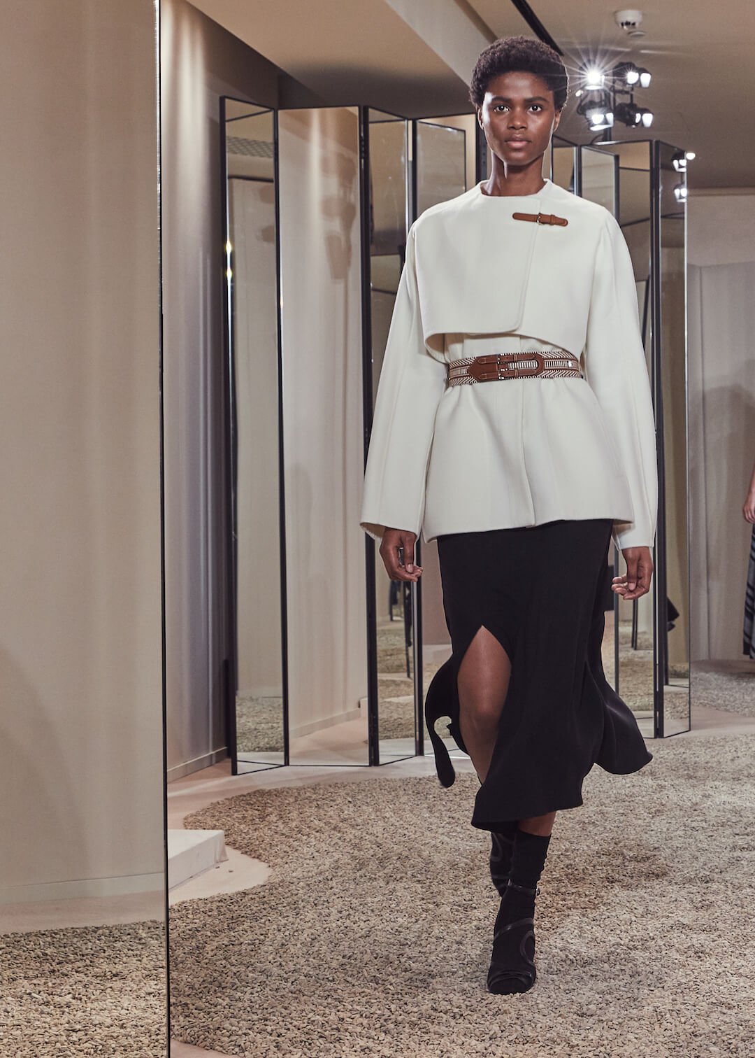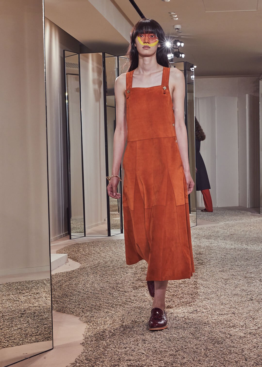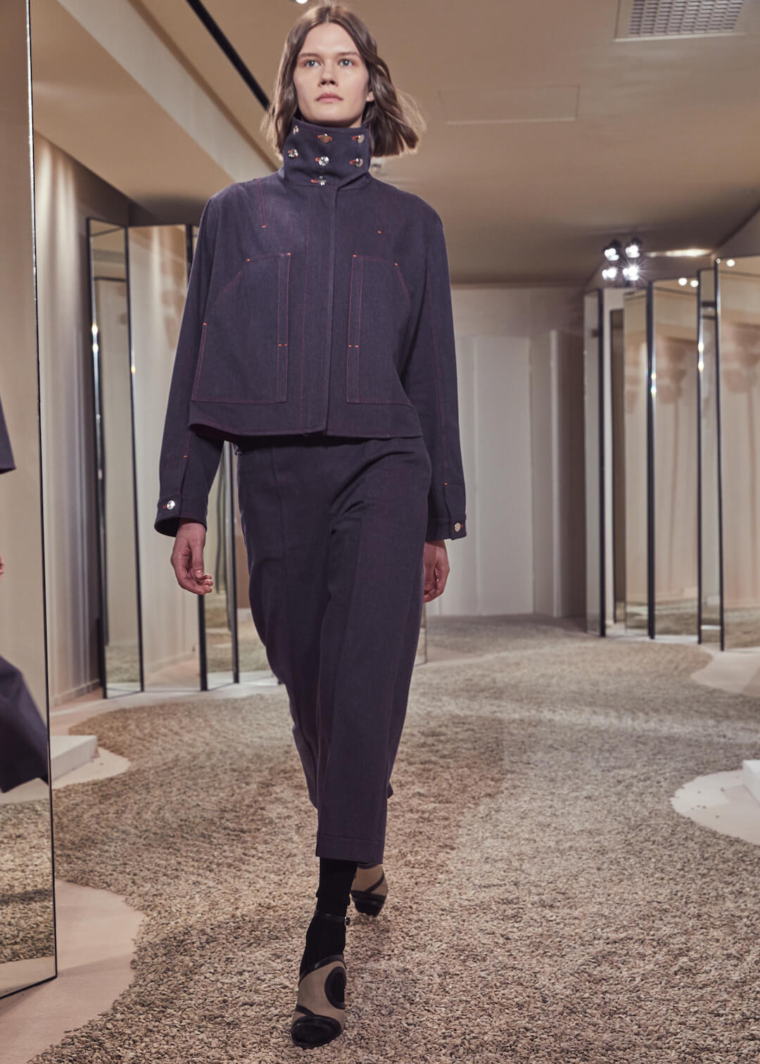 But what Nadège Vanhee-Cybulski is so adept at as Artistic Director (the first woman in the role) is taking the things that Hermès is known for – incredible leather, for one, those silk scarves, accessories – and refiguring the clothing that isn’t far from everyday life into something wholly, eye-wateringly luxurious. And it’s that mix that gives her womenswear an ease that is so appealing – to the casual viewer and the customer alike. The woman next to me was one of those – she’d flown in from Germany especially – circling away furiously at the looks she wanted to buy. And what better measure of a luxury house’s success than that? The will to buy buy buy? Nadège may not present clothes with fanfare – but she’s on to a very good thing.